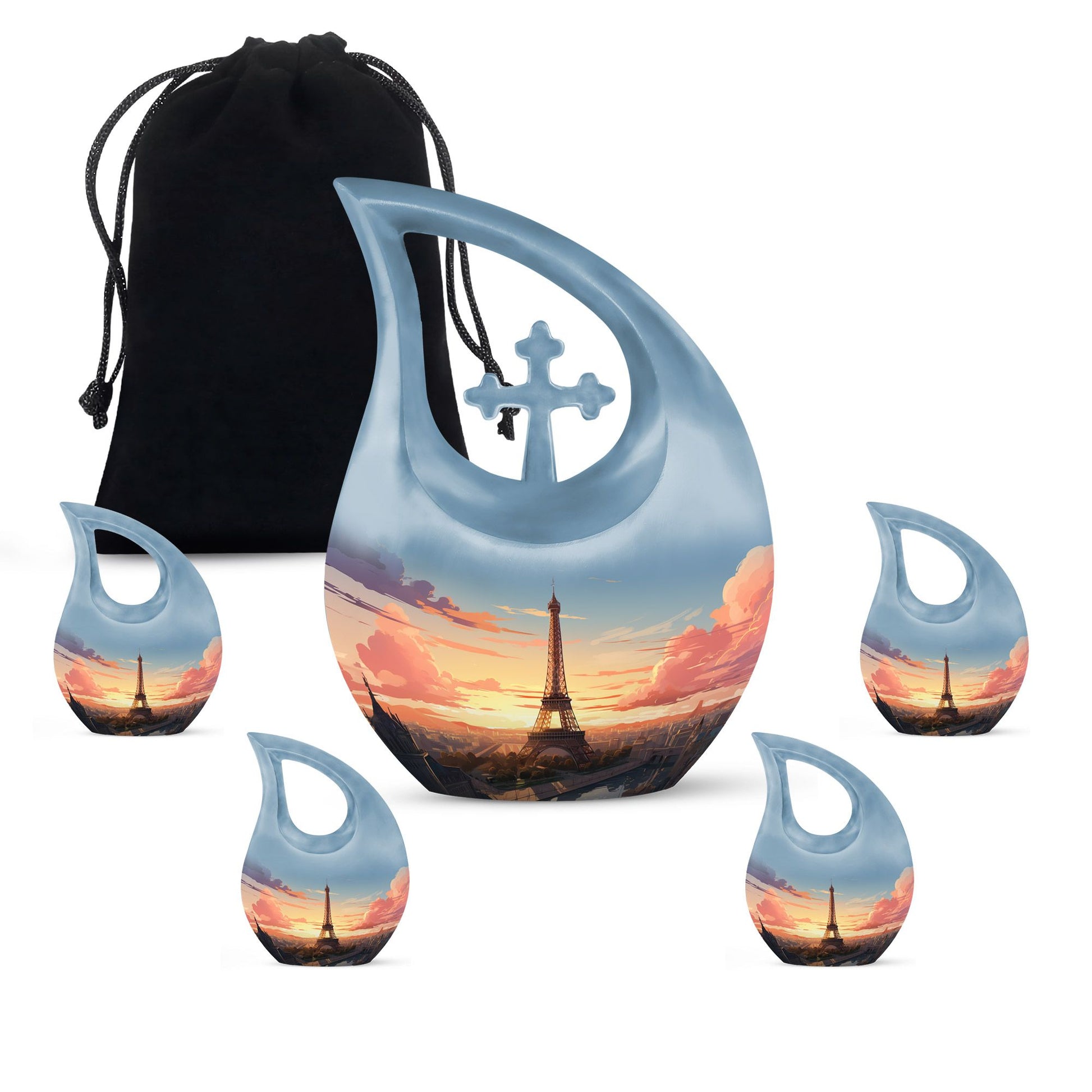 Celebrate the beauty of life and the memories that live on with the Paris Eiffel Tower Sunset Memorial Urn. This elegant piece symbolizes eternal love and remembrance, making it a touching tribute for families seeking Urns For Ashes Adult Female Mother or Cremation Urn Adult Male. Its Parisian charm captures the warmth of sunsets and the promise of cherished moments forever remembered.