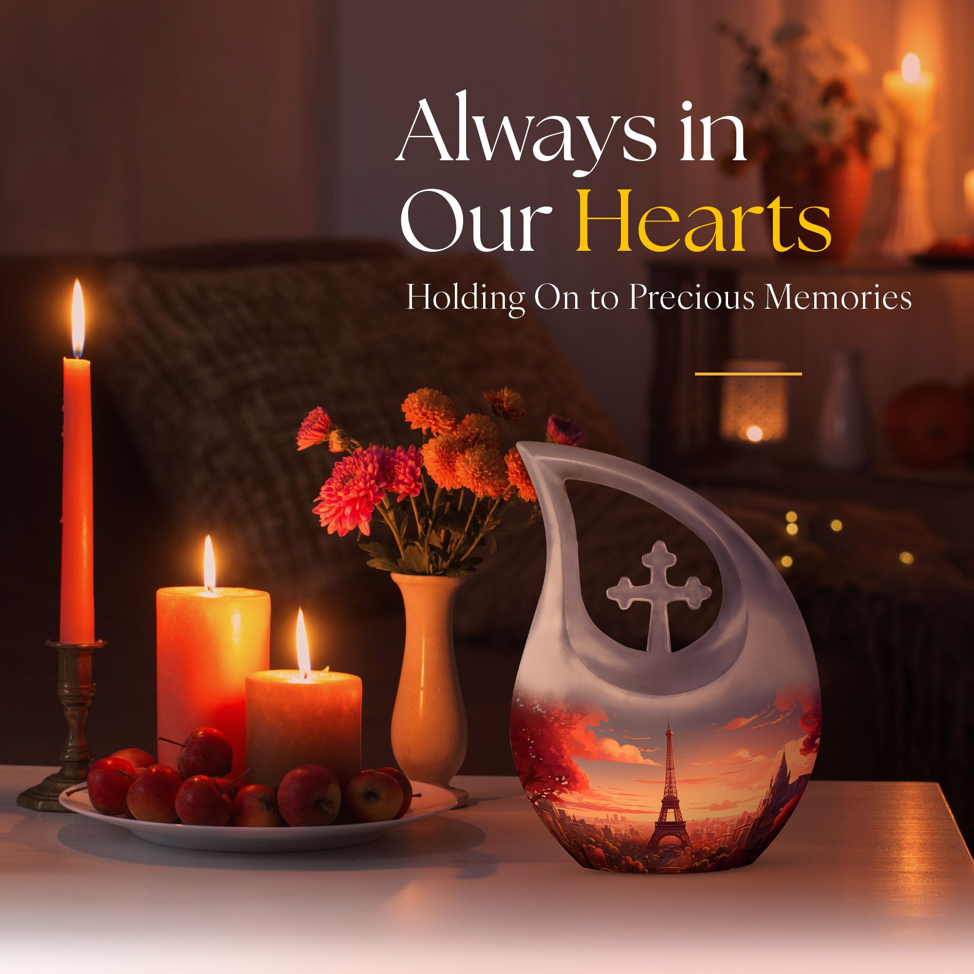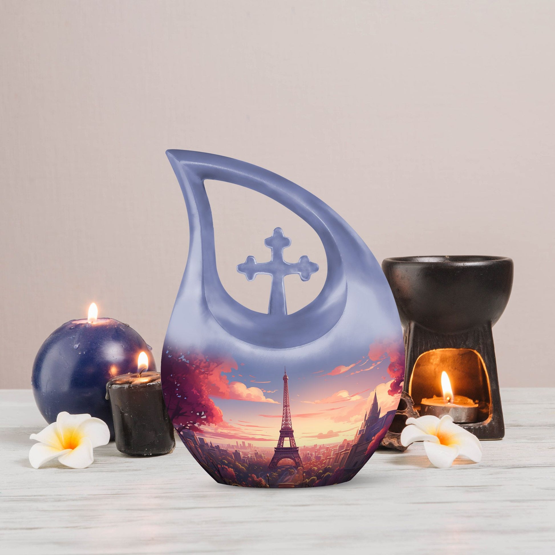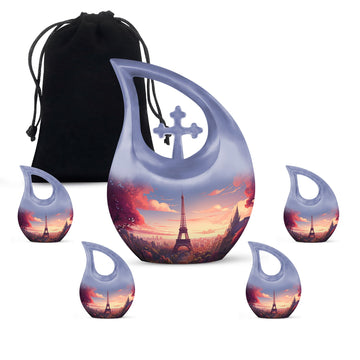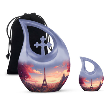 Preserve your loved one’s story with the Beautiful Eiffel Tower With Blossom Tree Scenic Urn—a piece that beautifully blends art, love, and memory, keeping their presence close forever.