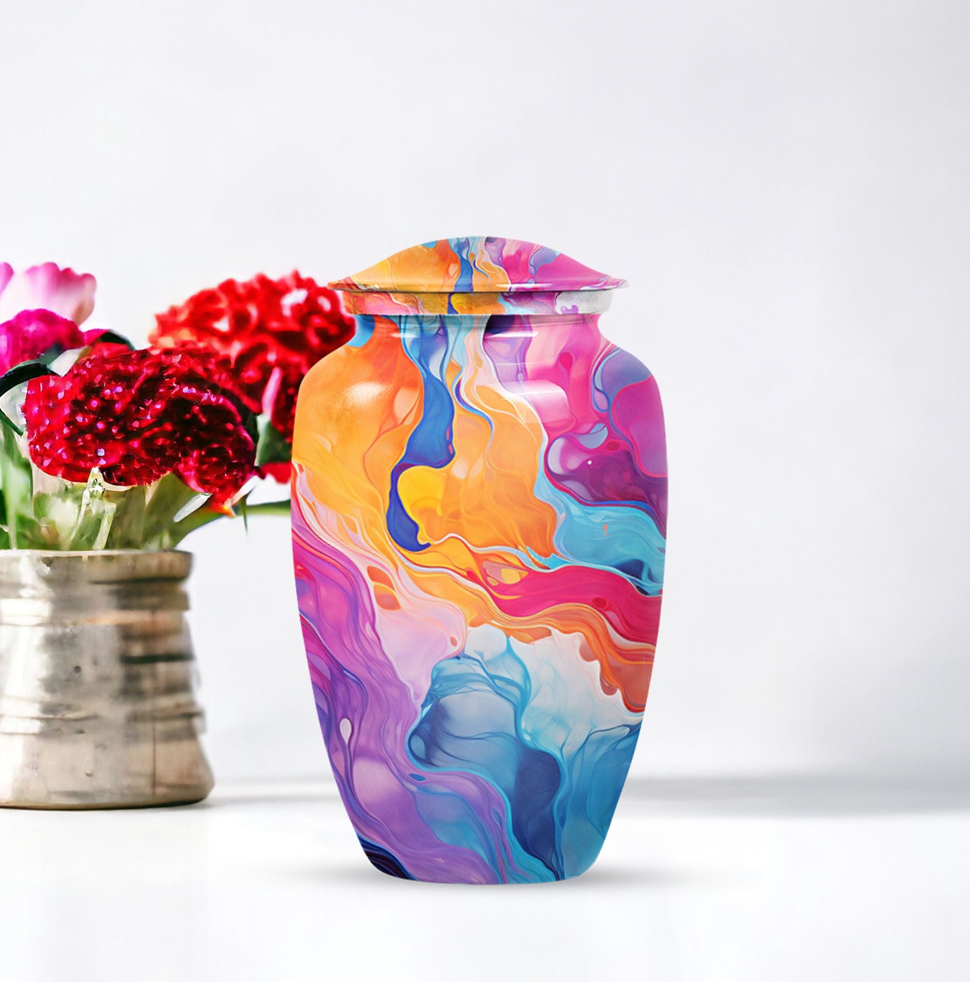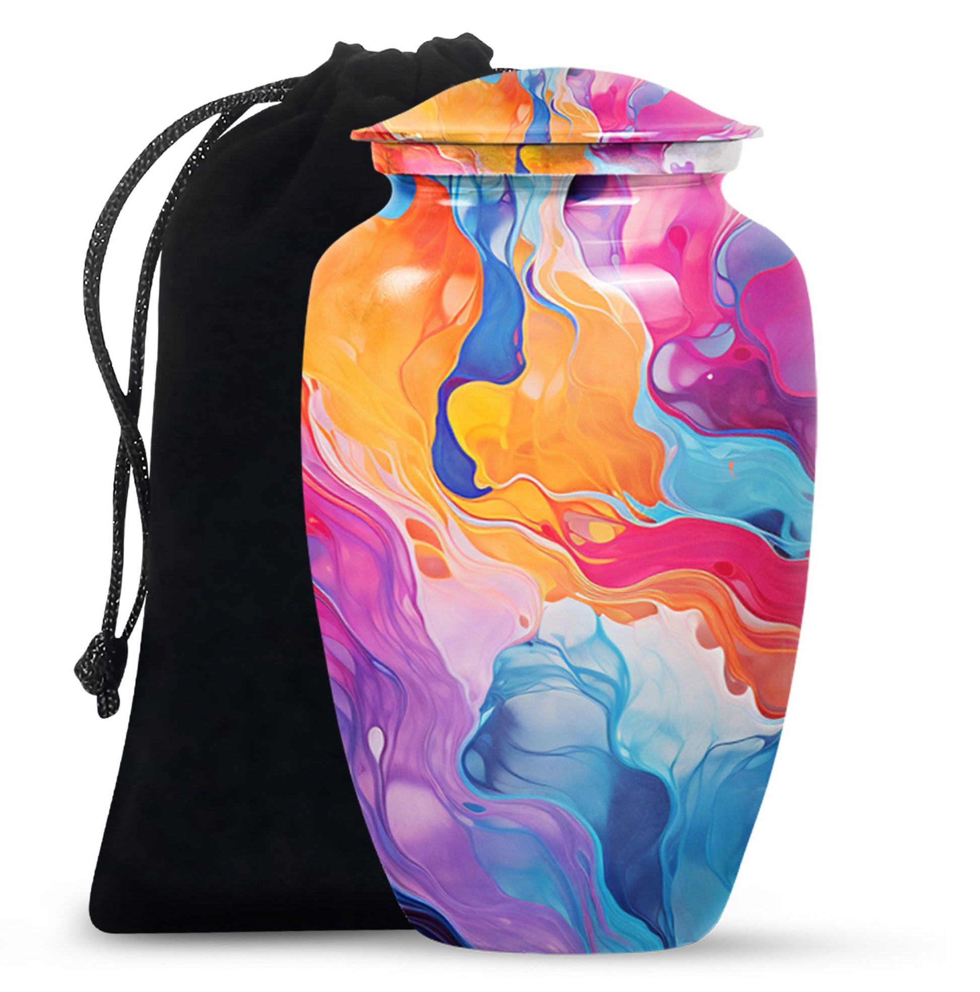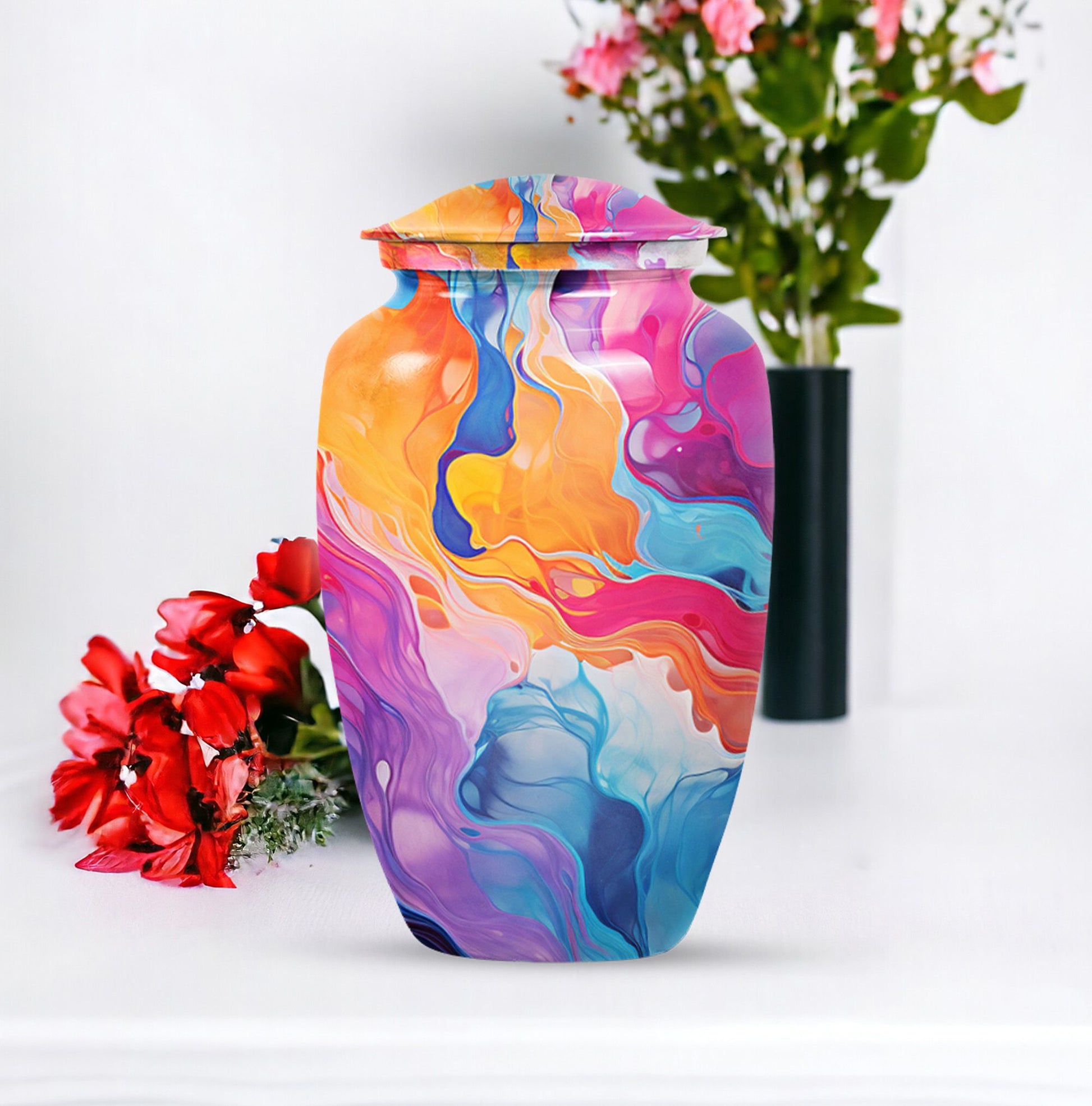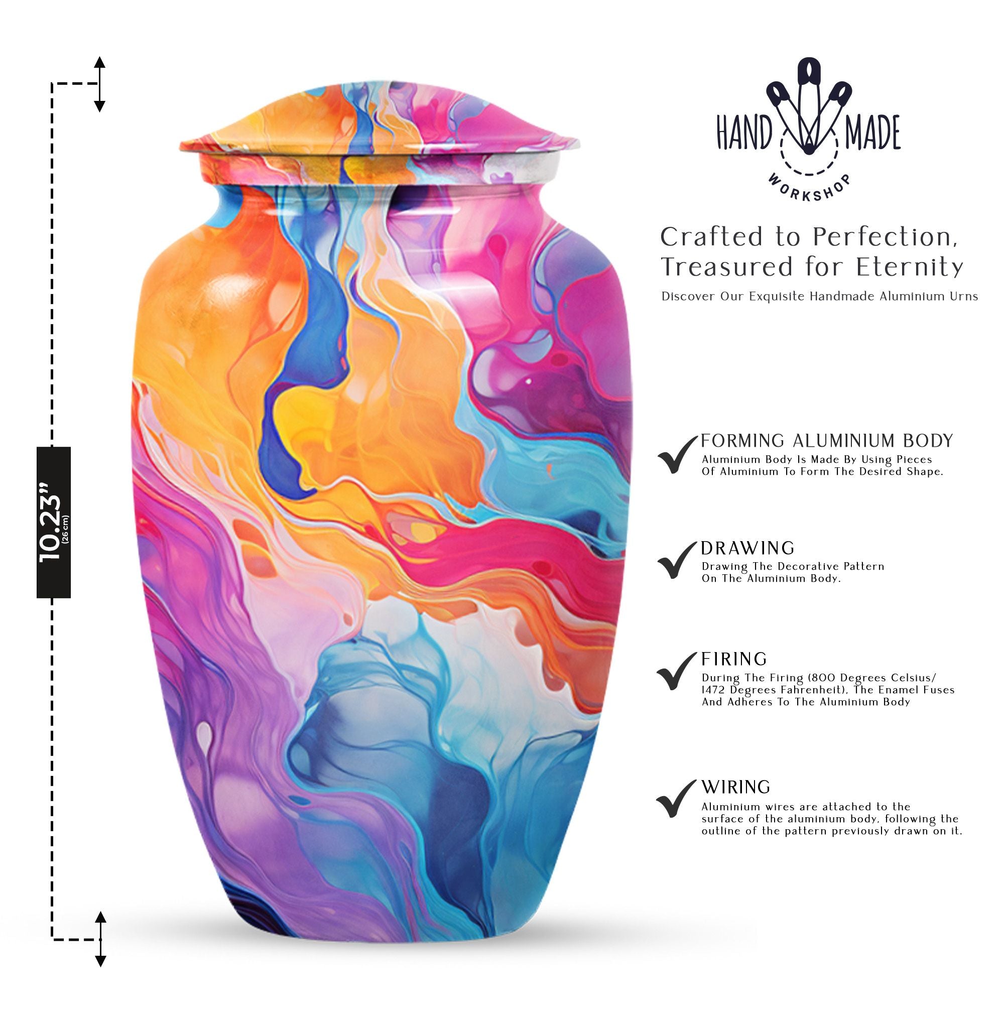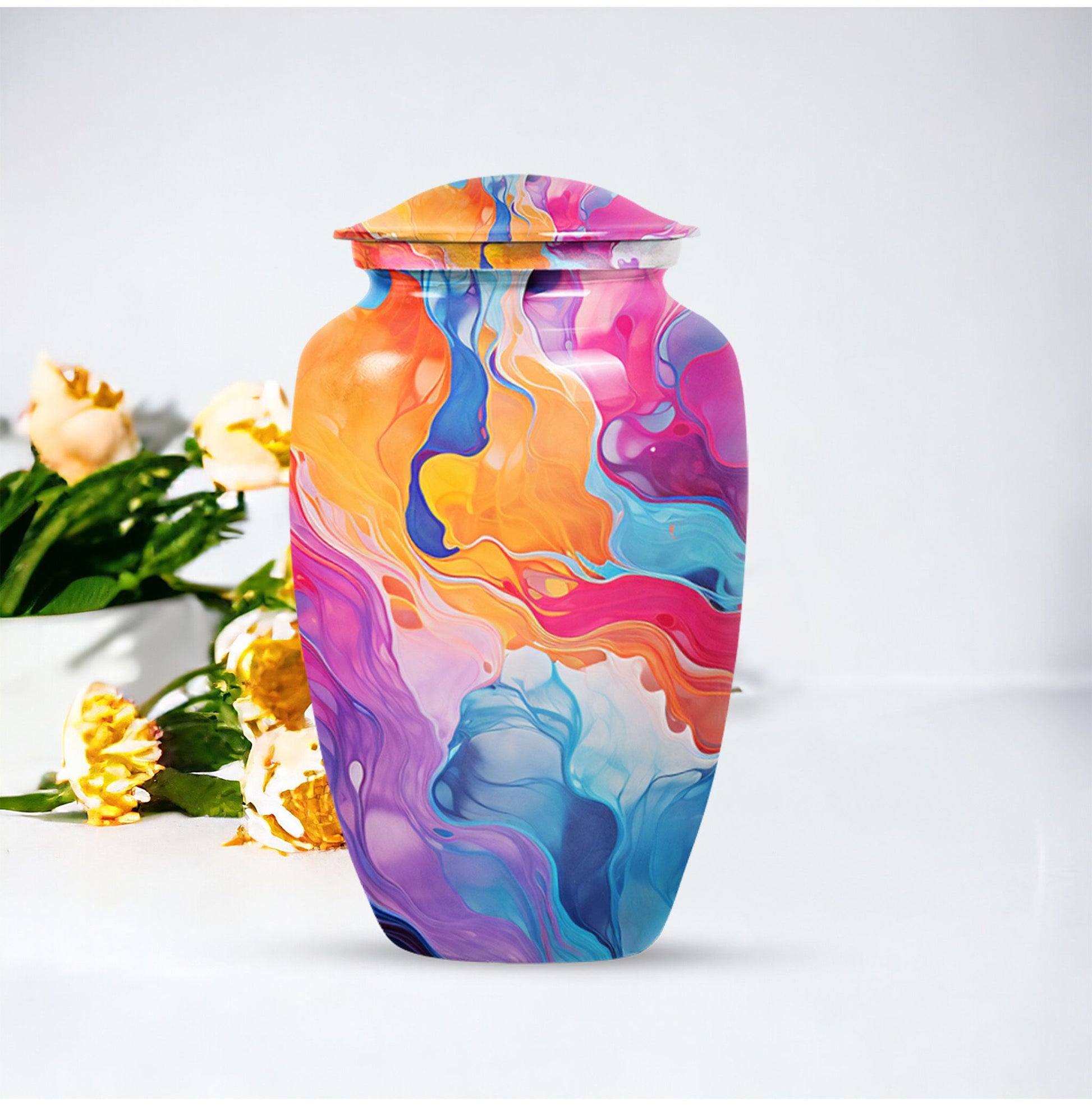 Treat your cherished ones to an eternal resting spot as unique as they were in life. Our 10-inch Abstract Urn, woven masterfully from premium-grade Aluminium, is much more than a simplified cremation vessel. Its fascinating silhouette captures the essence of innovative abstraction, setting it distinctively apart from mainstream funeral decorative urns. Besides the artistry, this urn is as functional as they come. Supplied with a velvet pouch, it thoughtfully and respectfully holds up to 200 cubic inches of your loved one's remains. Despite its large capacity and robust construction, it keeps a manageable weight of merely 3.3 pounds. Capture the iconic legacy of your loved ones with the provision to engrave their names on the urn, furthering its sentimental value. This is more than just a large urn; it's a timeless tribute to the affection you hold. Ideal for memorial urns for human ashes, adult female or urn human adult male, ensuring their memories linger eternally.