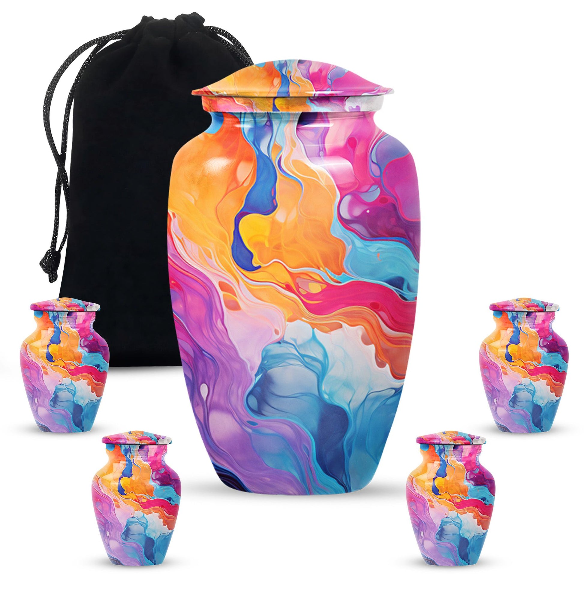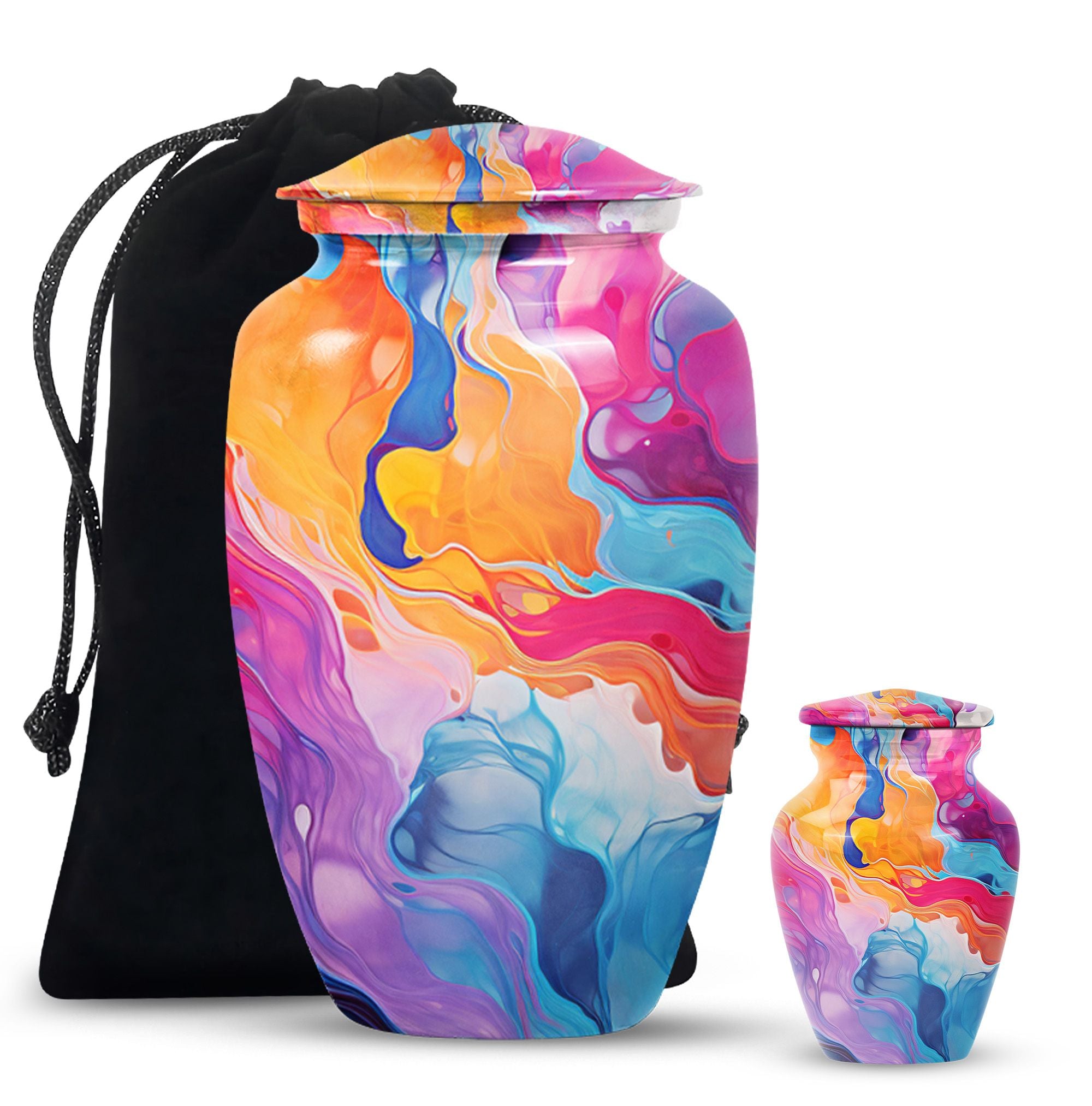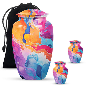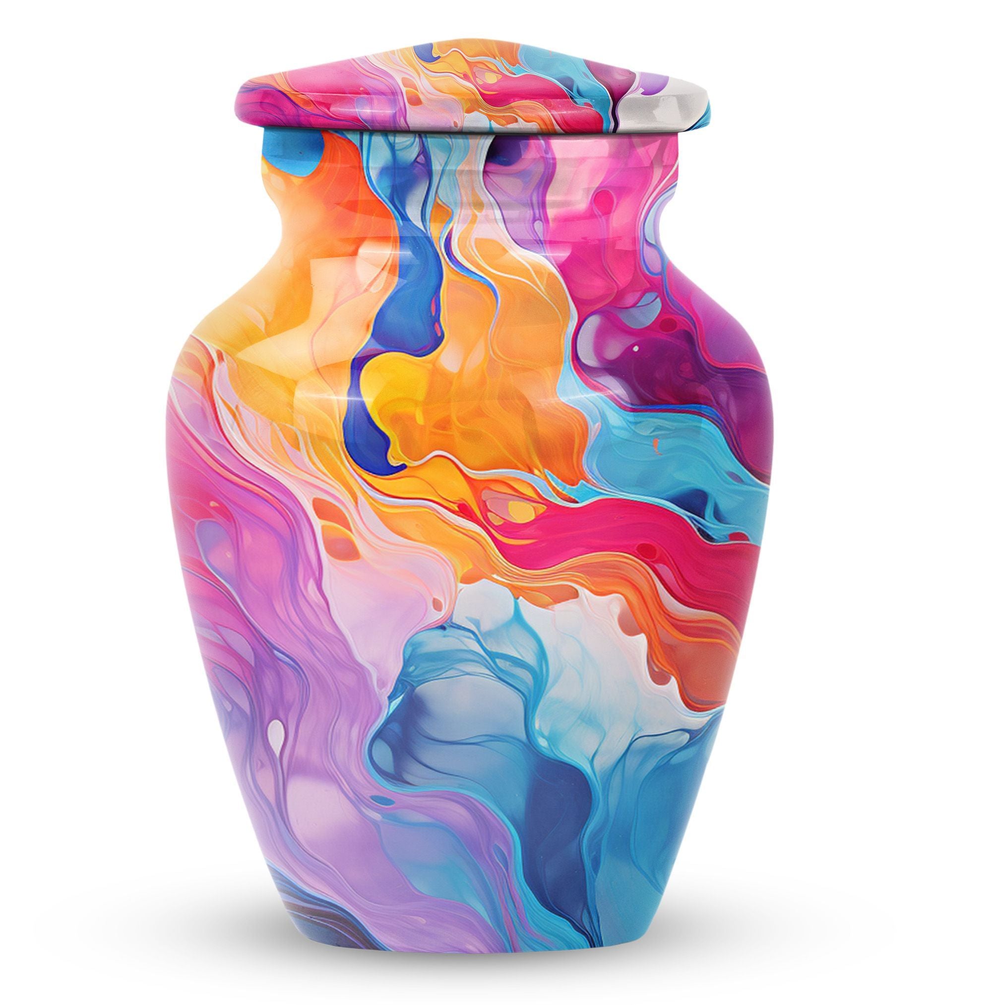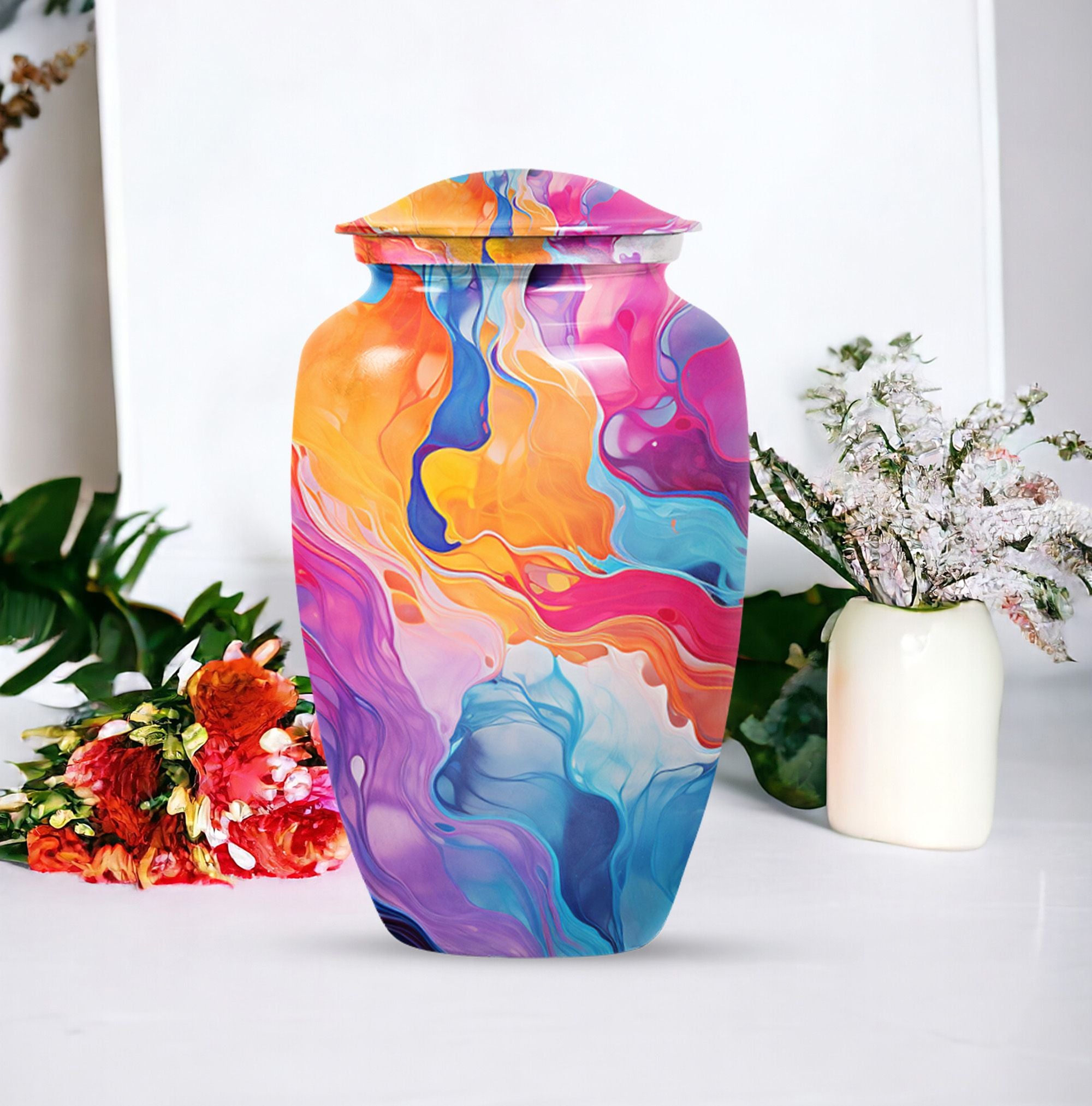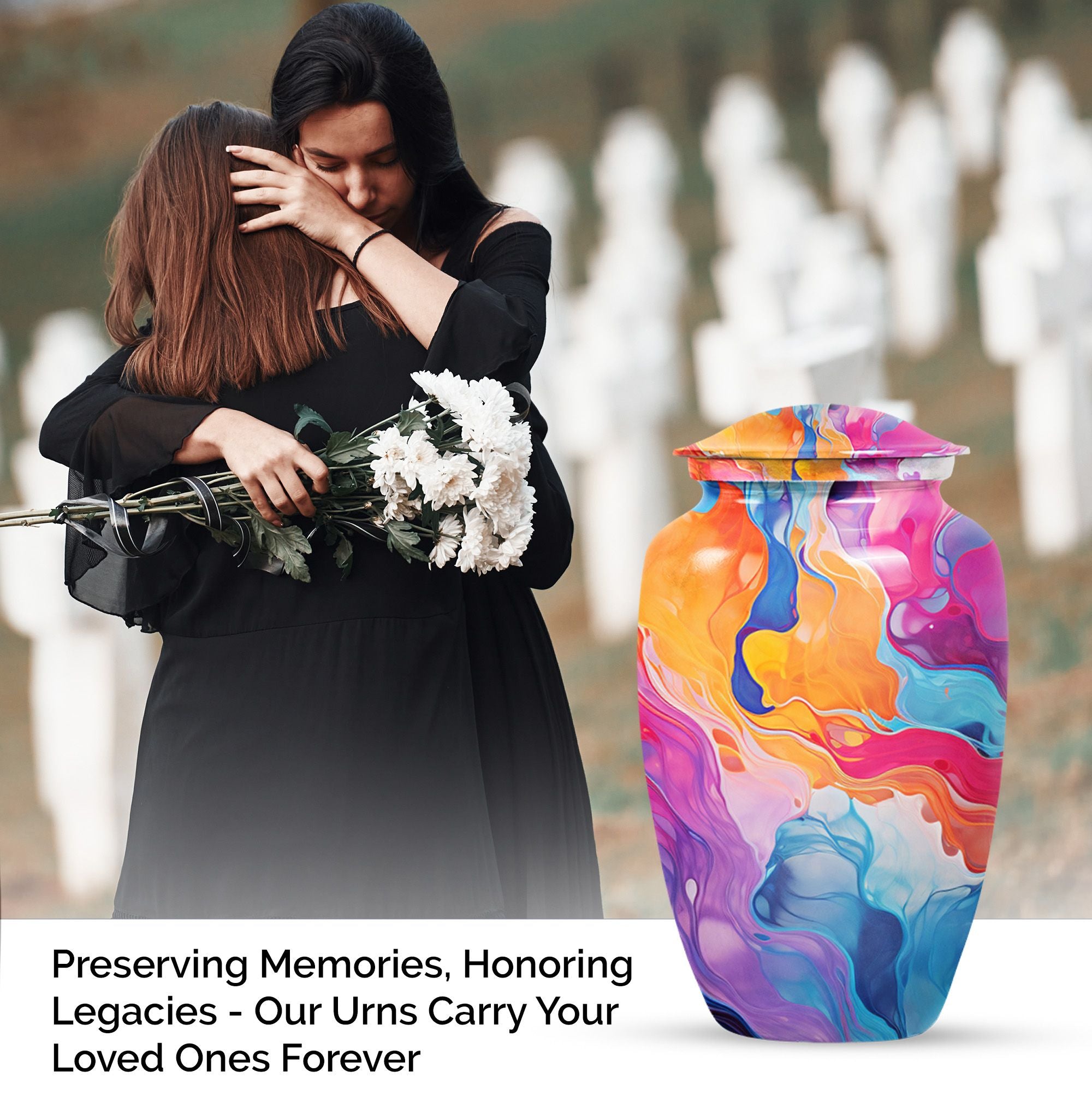Treat your cherished ones to an eternal resting spot as unique as they were in life. Our 10-inch Abstract Urn, woven masterfully from premium-grade Aluminium, is much more than a simplified cremation vessel. Its fascinating silhouette captures the essence of innovative abstraction, setting it distinctively apart from mainstream funeral decorative urns. Besides the artistry, this urn is as functional as they come. Supplied with a velvet pouch, it thoughtfully and respectfully holds up to 200 cubic inches of your loved one's remains. Despite its large capacity and robust construction, it keeps a manageable weight of merely 3.3 pounds. Capture the iconic legacy of your loved ones with the provision to engrave their names on the urn, furthering its sentimental value. This is more than just a large urn; it's a timeless tribute to the affection you hold. Ideal for memorial urns for human ashes, adult female or urn human adult male, ensuring their memories linger eternally.