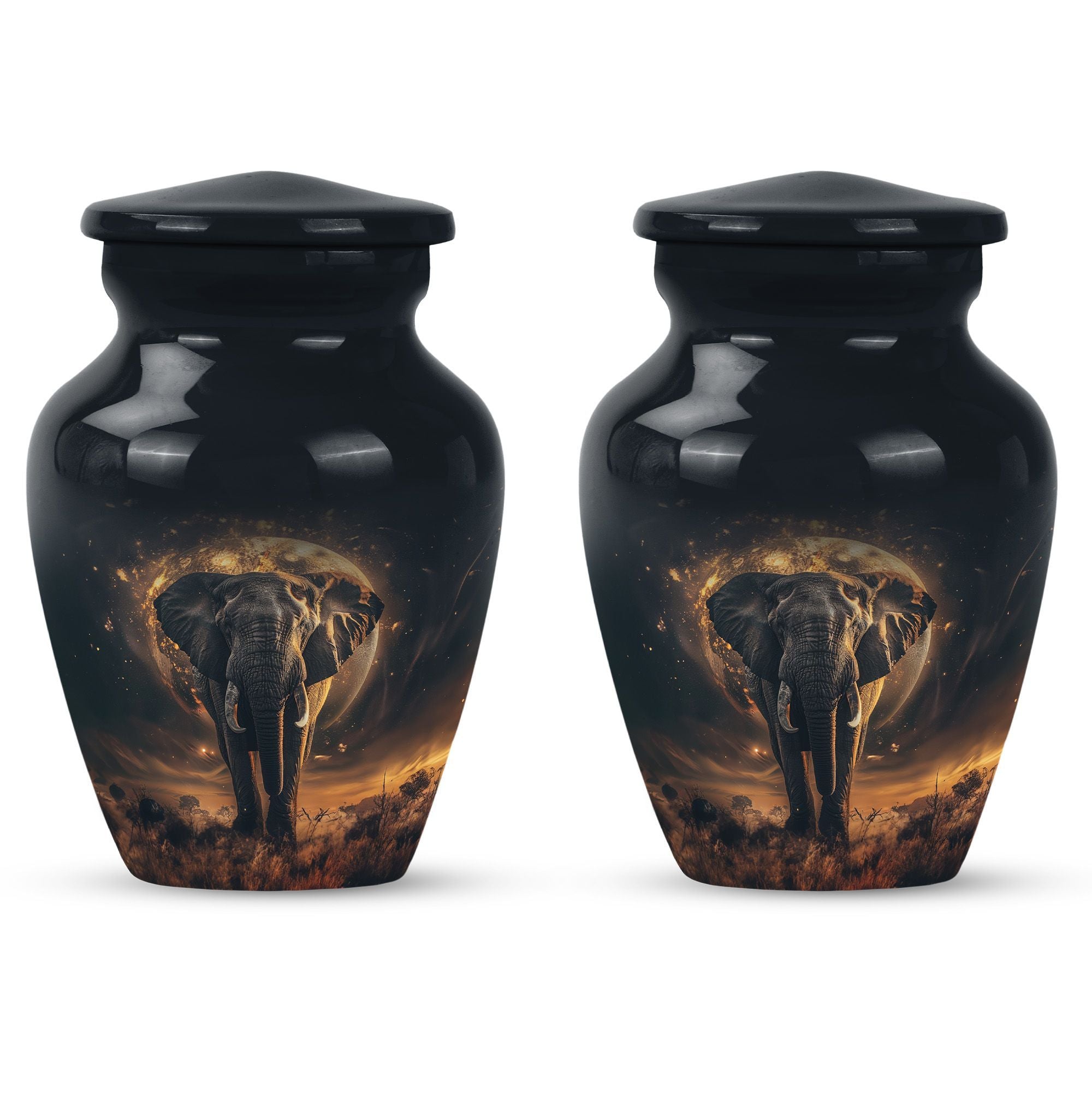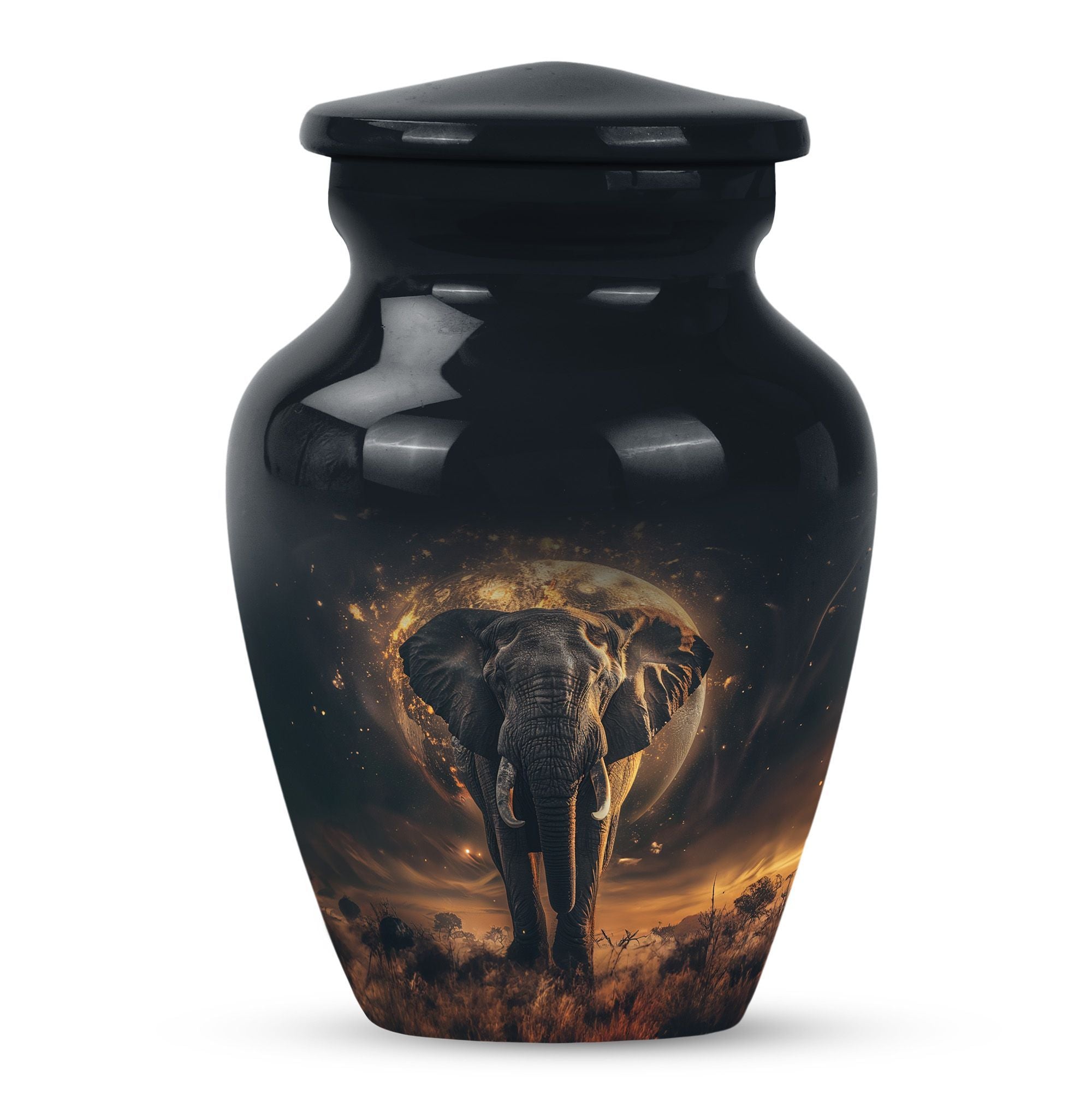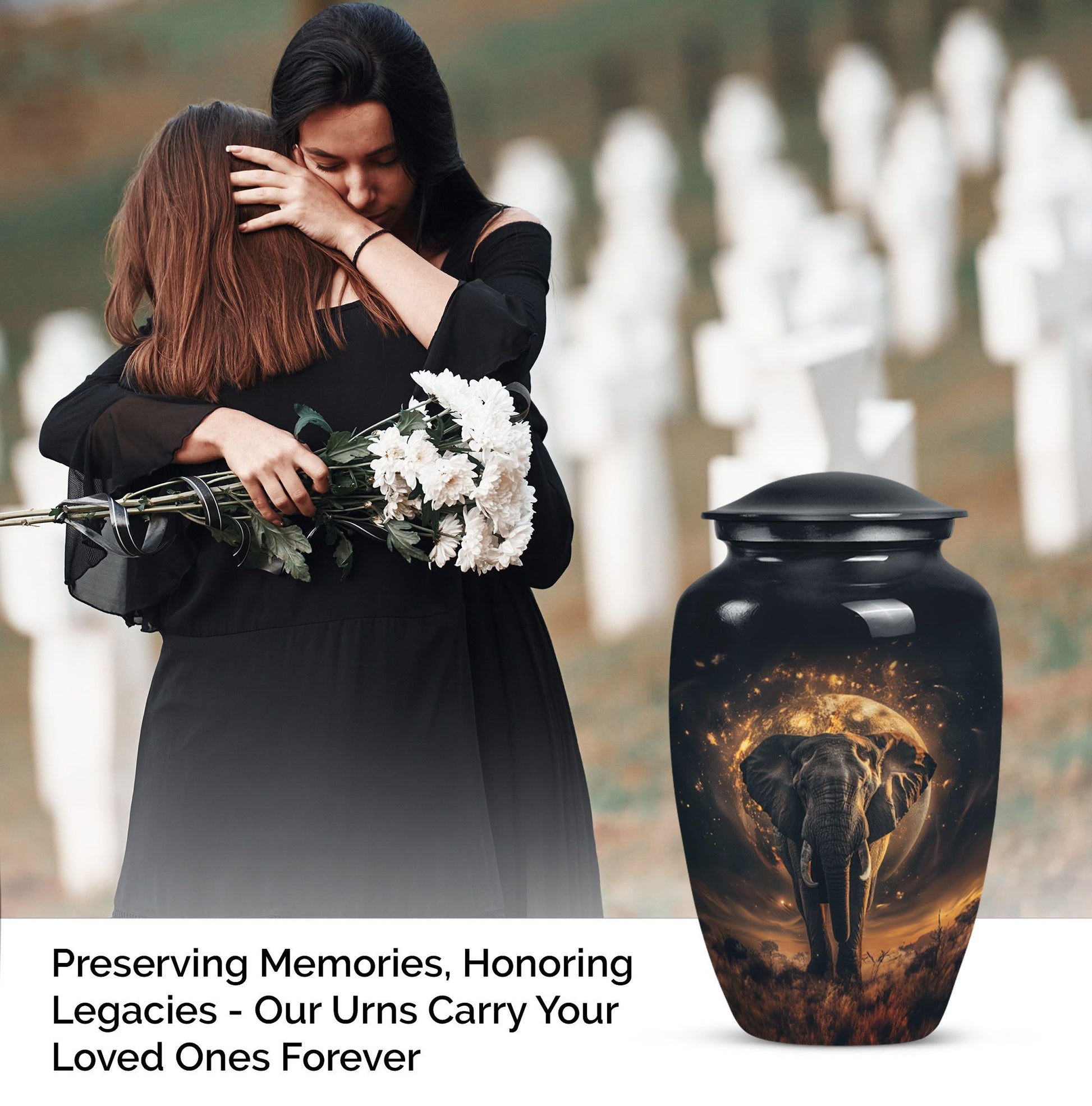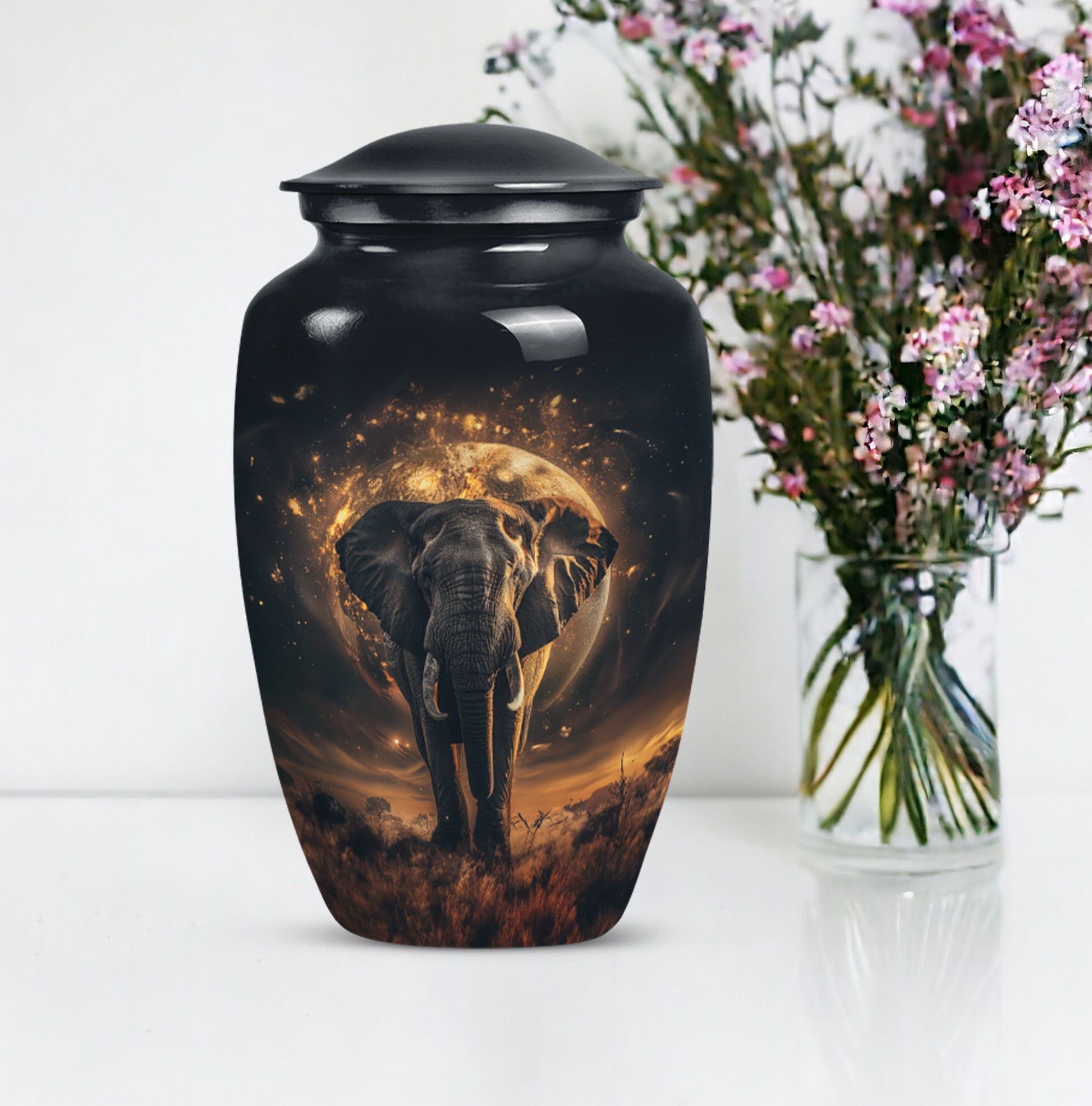 Honour your loved one with our high quality Butterfly-themed, 10-inch Tall Elephant Urn. This unique cremation urn is meticulously crafted from robust aluminium, ensuring it stands the test of time. Its substantial size allows for a capacity of 200 cubic inches, comfortably holding the ashes of adults; a unisex choice adept for both males and females. Weighing in at a steady 3.3 pounds, with a stand shaped to perfection, it sits stably wherever you wish to place it. Every urn comes with a complementary velvet pouch providing a tasteful containment for the preserved ashes. The urn's exterior is gracefully adorned with an elegant butterfly theme - a symbol of transformation and the cycle of life. To make it further special, a customization option is available; personalize it by engraving names of your choice to capture the essence of your loved one's life. This stately, classic urn is more than a memorial product; it's a gentle, daily reminder of a cherished life. Remember, an Elephant Urn is more than just a funeral urn for females; it symbolizes an eternal rest, a celebration of life lived full. Enhance your memorial ceremonies with the blend of elegance, beauty, and remembrance it offers.