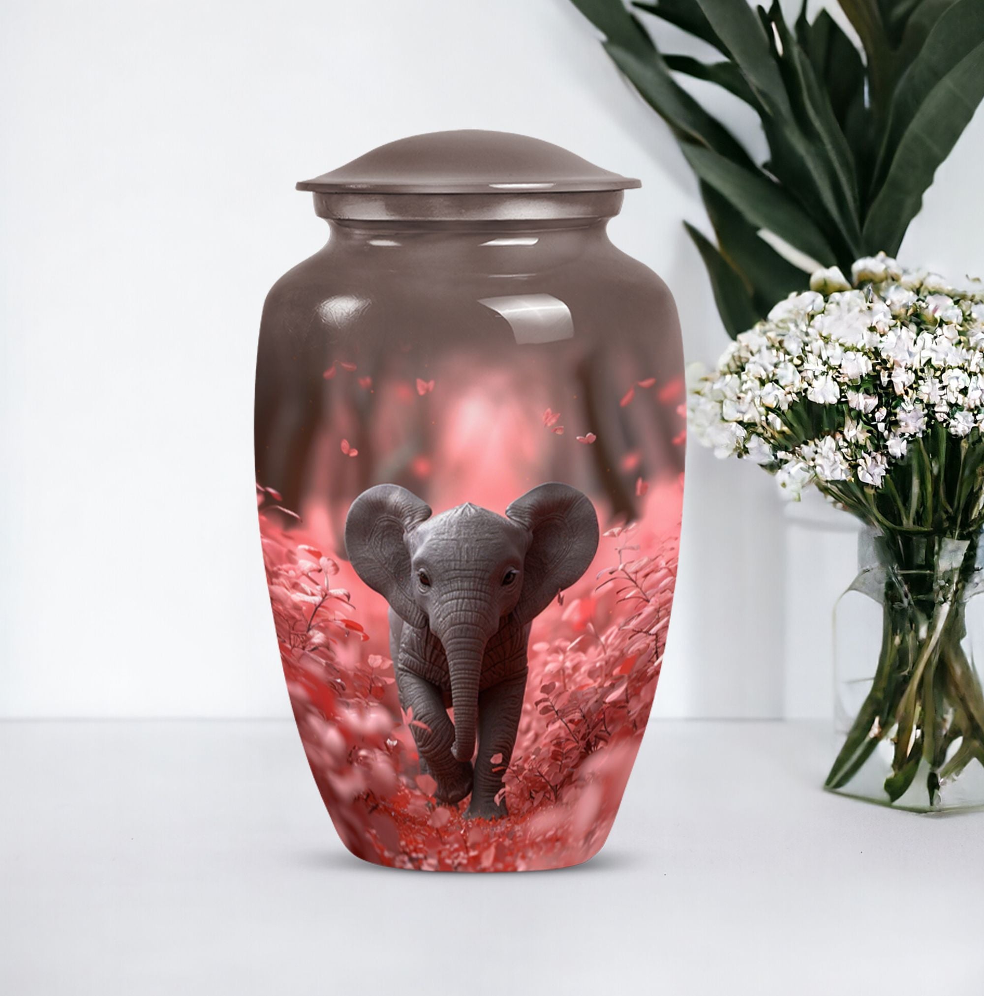Discover the profound elegance of our 10-inch Elephant Urn, an essential component in remembering your loved ones and honoring burial customs. Crafted meticulously from light yet durable aluminium, this beautiful large urn weighs just 3.3 pounds. With a capacity of 200 cubic inches, it earnestly serves its purpose for human ash containment. Adorned with a heart-touching butterfly theme, this classic urn brings a serene sense of calm that beautifully commemorates your passed loved one. Personalize it with engraved names which serve to heighten the emotional depth of this cremation dad urn, epitomizing a unique touch of love. Precisely designed for adults, this urn stands as a respectful resting place for human ashes. For added convenience, it comes with a velvet pouch for the containment of ashes, safeguarding them with respect. This unique product skillfully embraces keywords such as 'elephant urn', 'burial custom urn', and 'funeral urns for human ashes adult' to tailor its relevance for your search. Cherish the memory of your dear ones with our exquisite cremation urn that encapsulates sentiments and respects the ceremonial traditions.