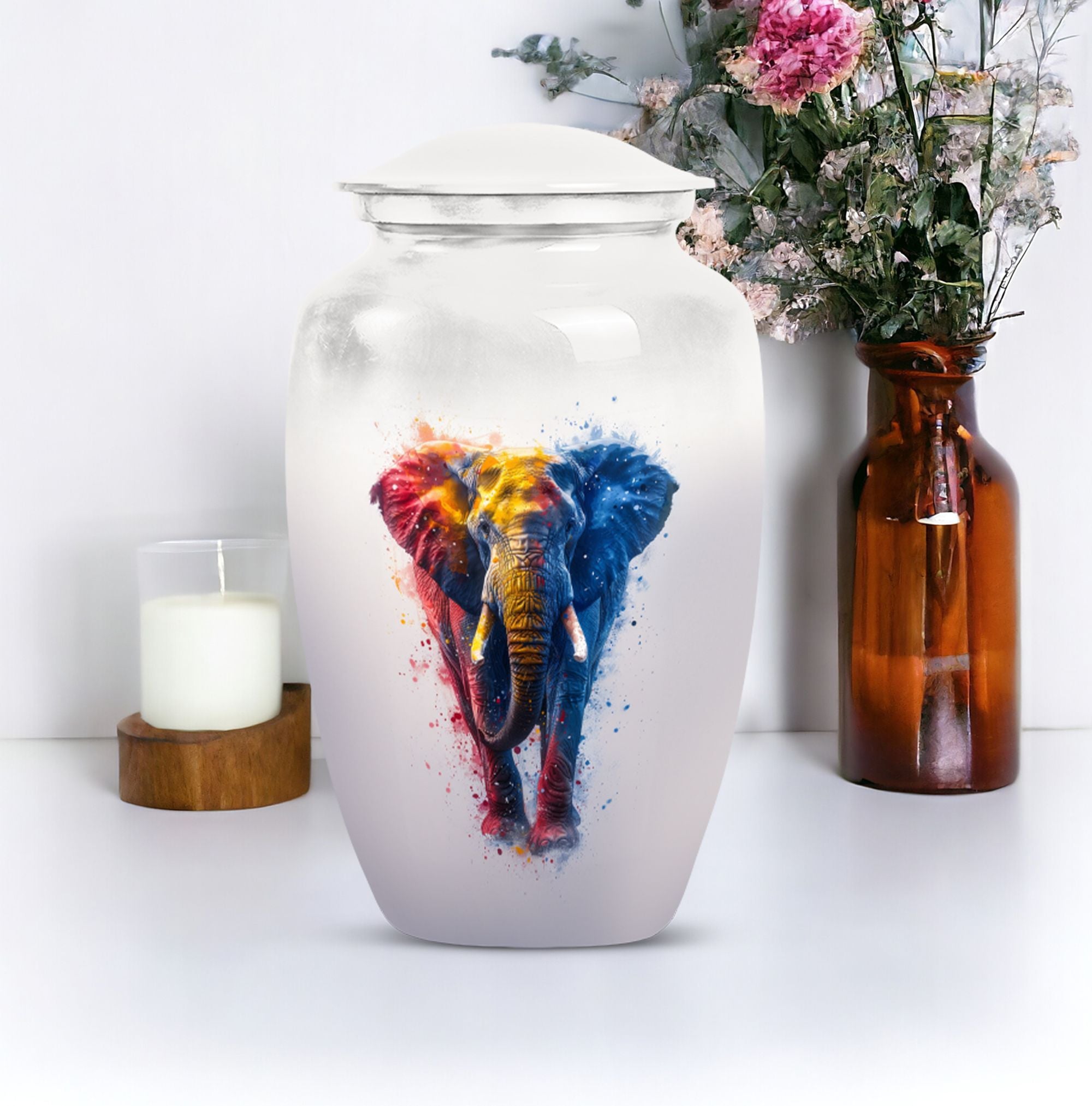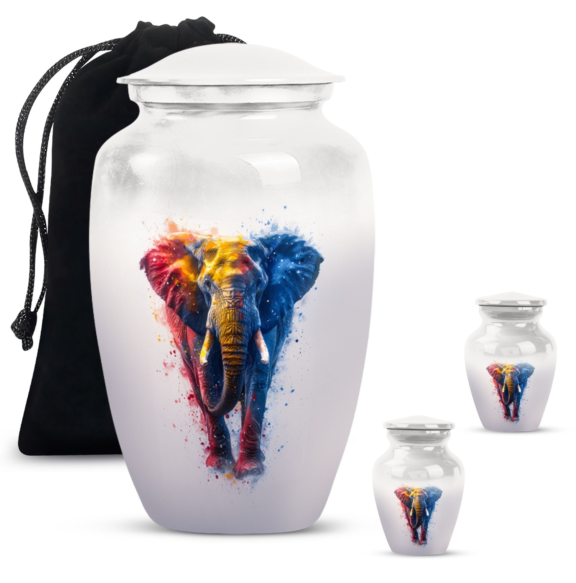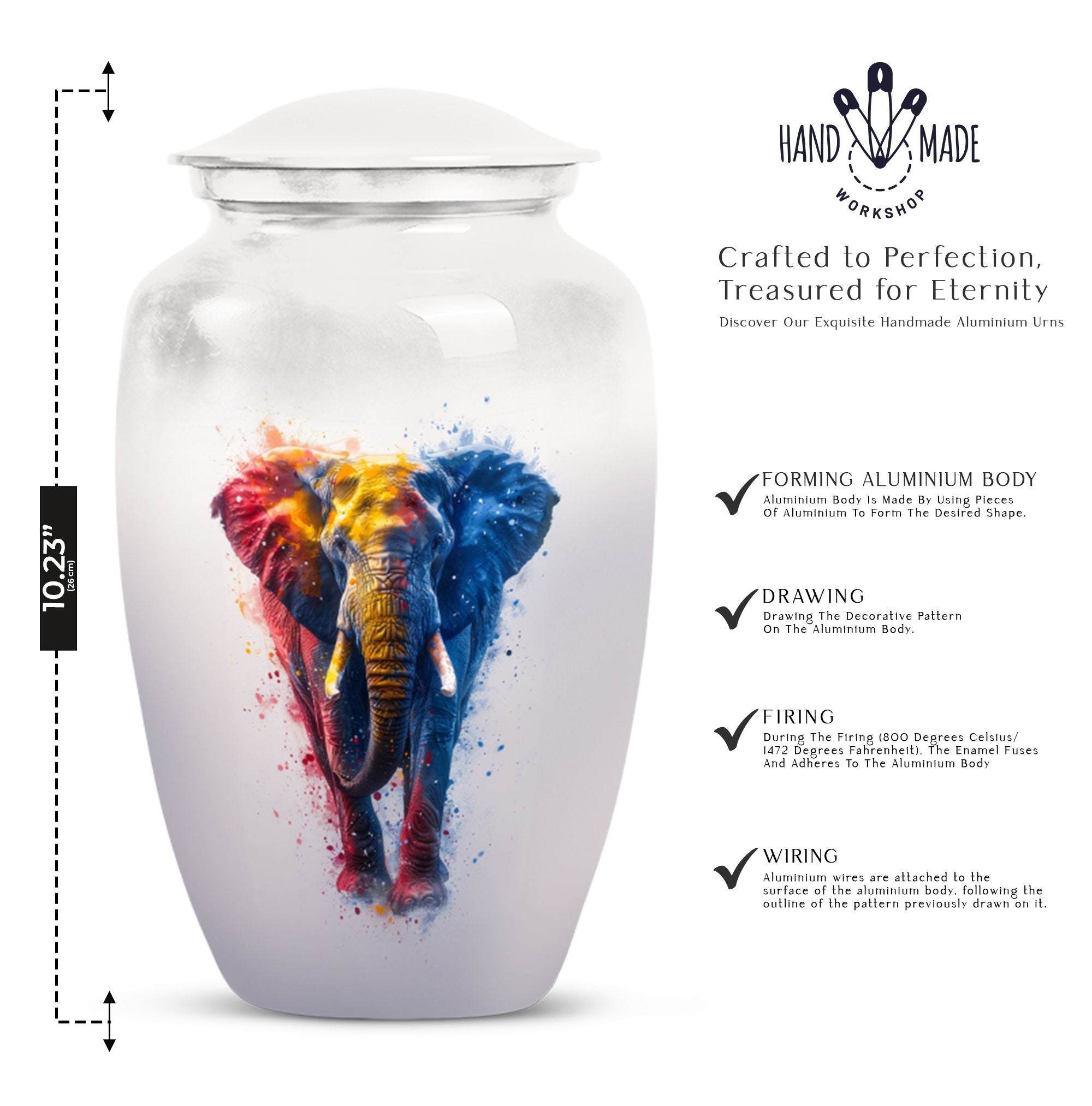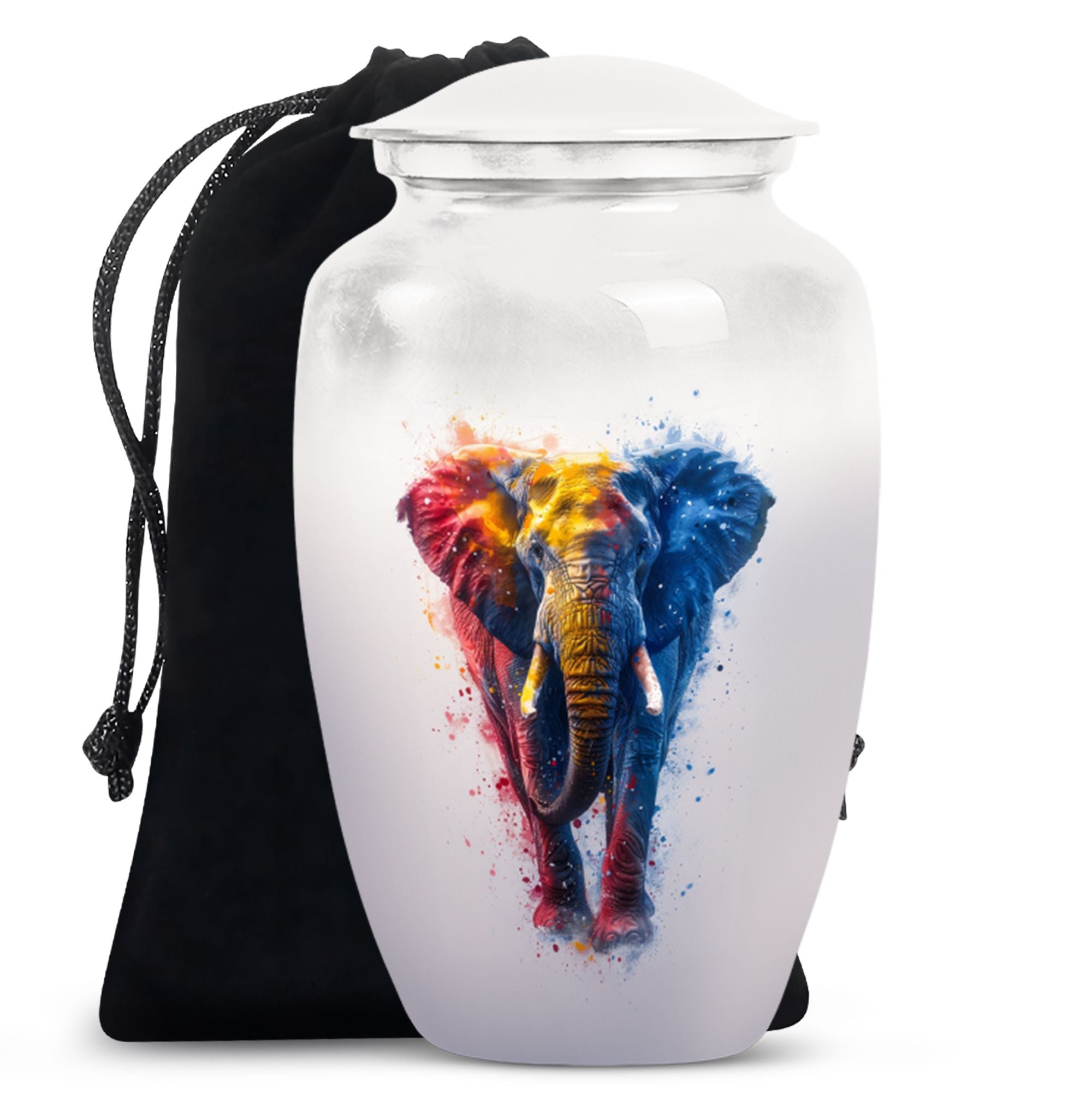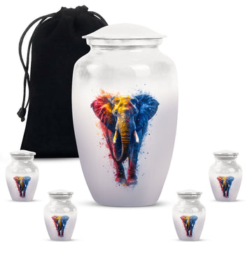 Experience the perfect blend of elegance and symbolism with our Butterfly theme Elephant Urn. Sized at 10 Inch and crafted from premium aluminium, this unique piece blends beauty with durability, making it an ideal memorial burial urn. It weighs a steady 3.3 pounds and stands 10 inches tall, embodying a capacity of 200 cubic inches. Within its classic urn design, you'll find ample space to honor your loved ones, and keep their ashes securely stored. Striking the balance between sentiment and functionality, this cremation urn includes a complementary velvet pouch for containment of ashes, adding an extra layer of sophistication and respect. With the ability to personalize with engraved names, our funeral ash urn allows you to add a distinctive touch. This Funeral burial urn, perfectly suited for adult men, offers a unique approach to the typical cremation urns for humans. By choosing our inspired urn, you are not only sharing a final act of love but also incorporating a valuable piece to your ceremonial supplies.