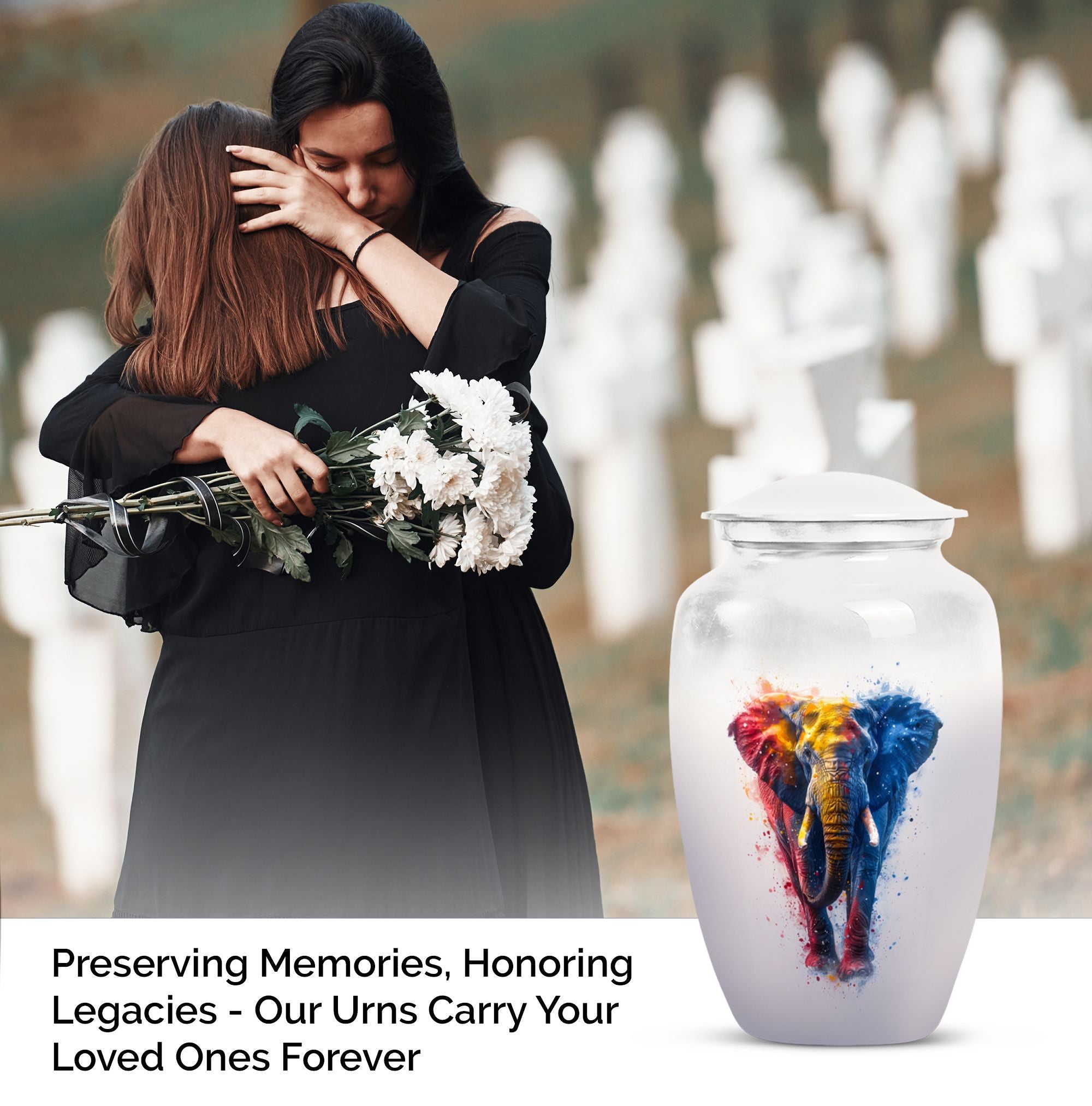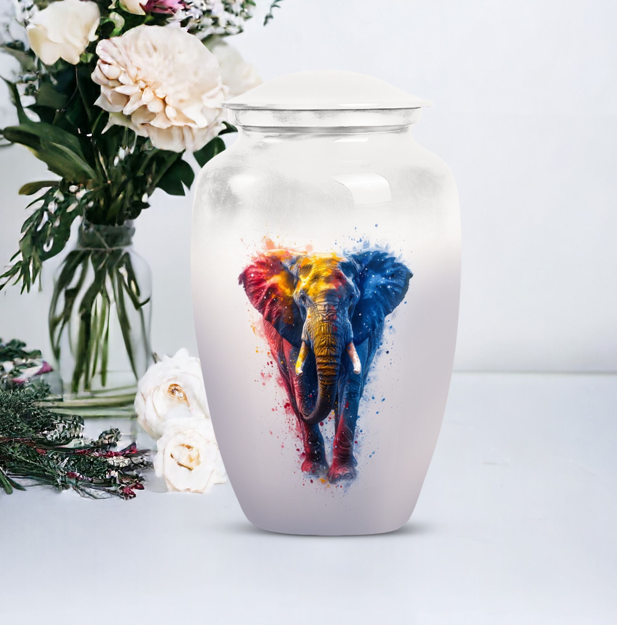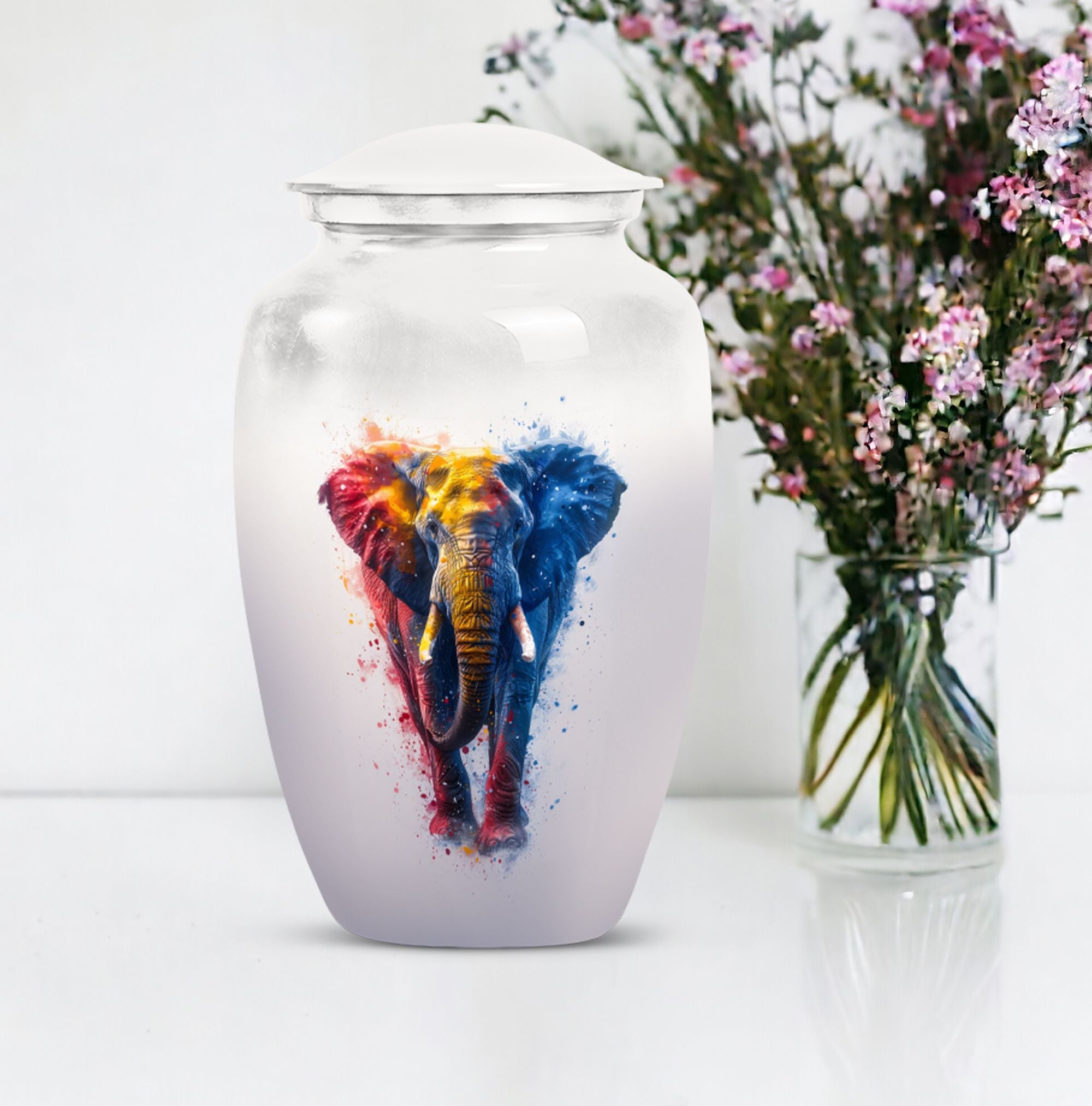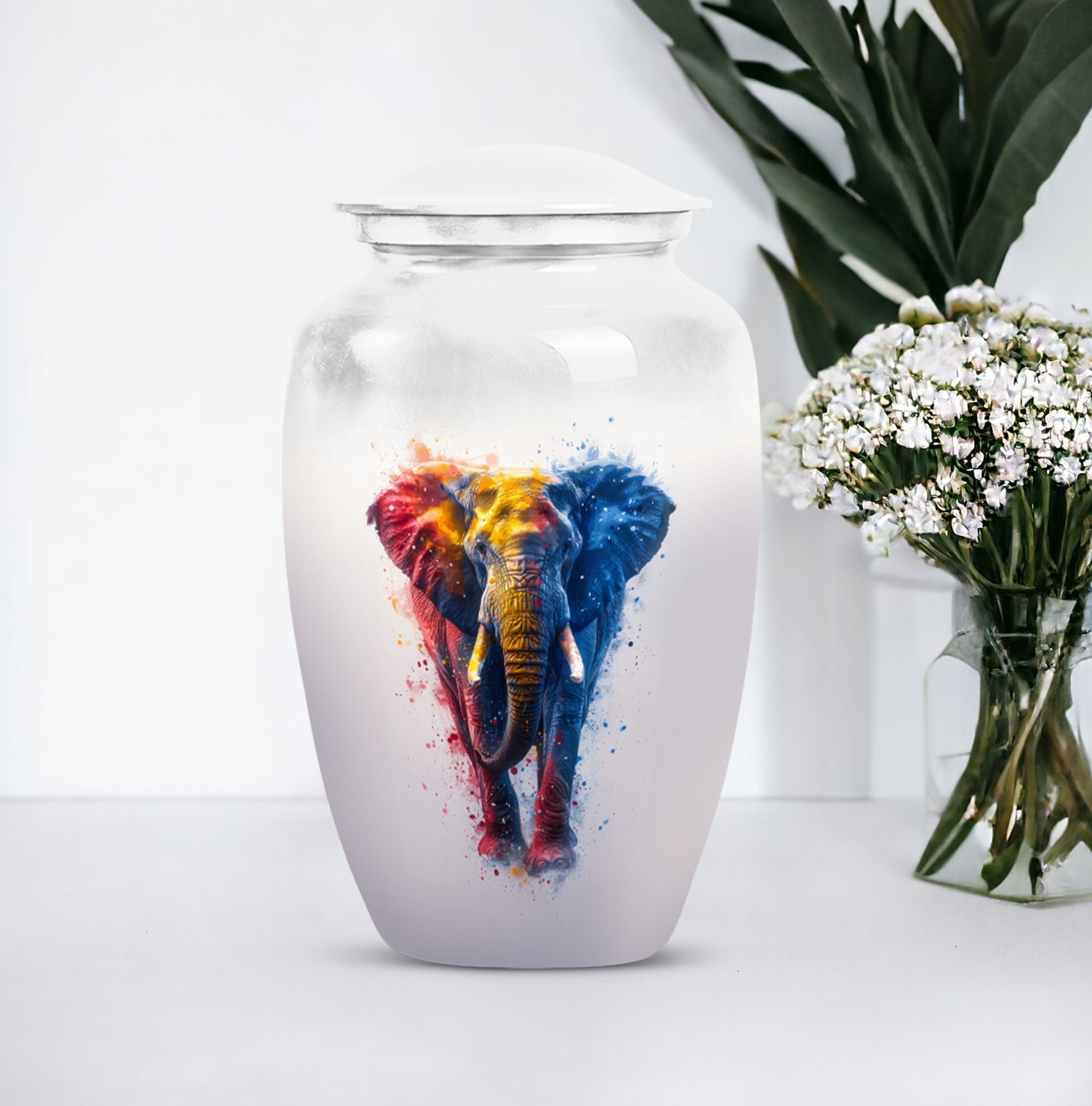 Experience the perfect blend of elegance and symbolism with our Butterfly theme Elephant Urn. Sized at 10 Inch and crafted from premium aluminium, this unique piece blends beauty with durability, making it an ideal memorial burial urn. It weighs a steady 3.3 pounds and stands 10 inches tall, embodying a capacity of 200 cubic inches. Within its classic urn design, you'll find ample space to honor your loved ones, and keep their ashes securely stored. Striking the balance between sentiment and functionality, this cremation urn includes a complementary velvet pouch for containment of ashes, adding an extra layer of sophistication and respect. With the ability to personalize with engraved names, our funeral ash urn allows you to add a distinctive touch. This Funeral burial urn, perfectly suited for adult men, offers a unique approach to the typical cremation urns for humans. By choosing our inspired urn, you are not only sharing a final act of love but also incorporating a valuable piece to your ceremonial supplies.