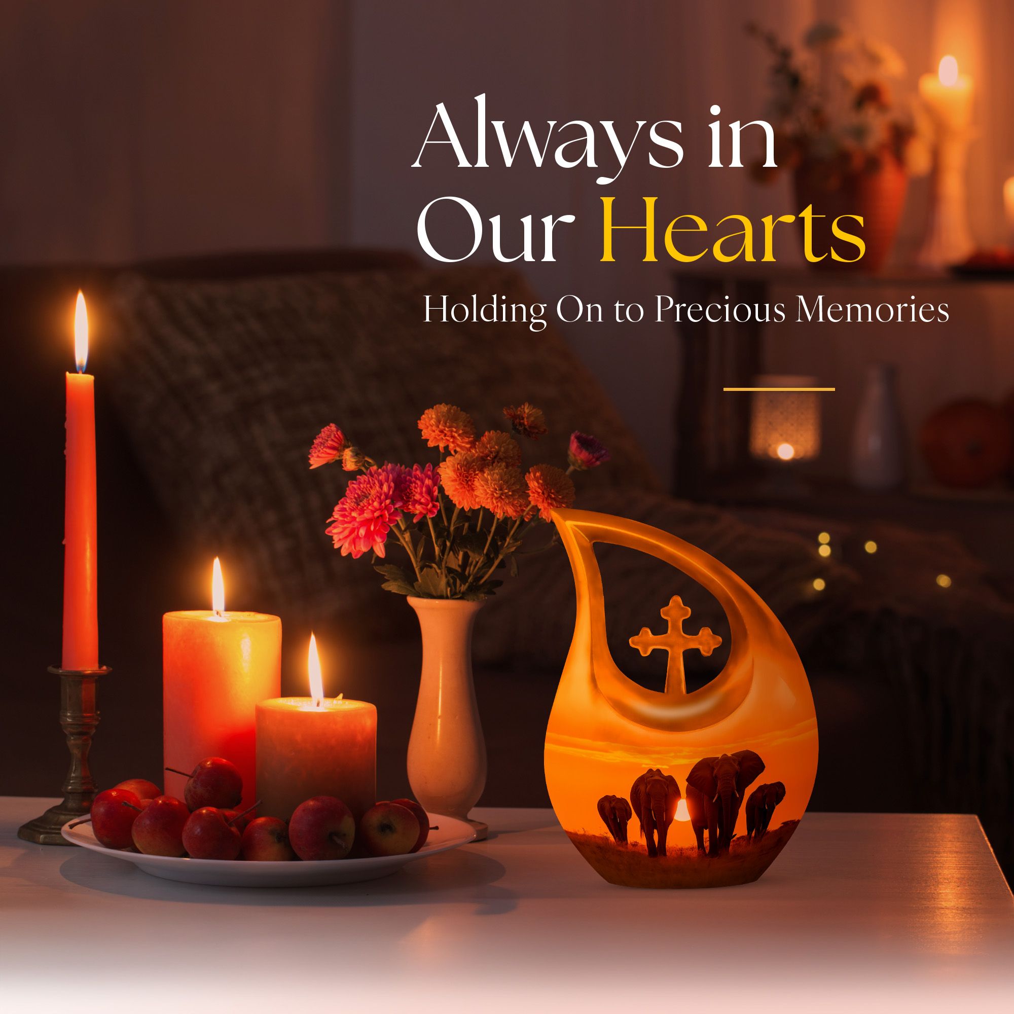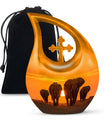 The Elephant Family Sunset design captures the essence of family and togetherness — a touching reminder that love transcends life. Whether you are looking for funeral urns for human ashes adult or elegant cremation urns large, this piece stands as a symbol of everlasting connection and peace.
