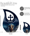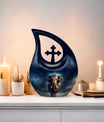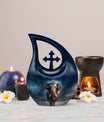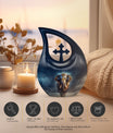 Expertly crafted from premium materials, this large decorative urn is designed with attention to detail and enduring beauty. The aluminum body ensures strength and longevity, while the soft cross-drop design enhances its spiritual significance. Ideal as a cremation urn adult large, it provides ample space for ashes while doubling as a meaningful piece of art in any setting. Whether chosen for home display or a respectful memorial, this urn balances elegance with purpose.