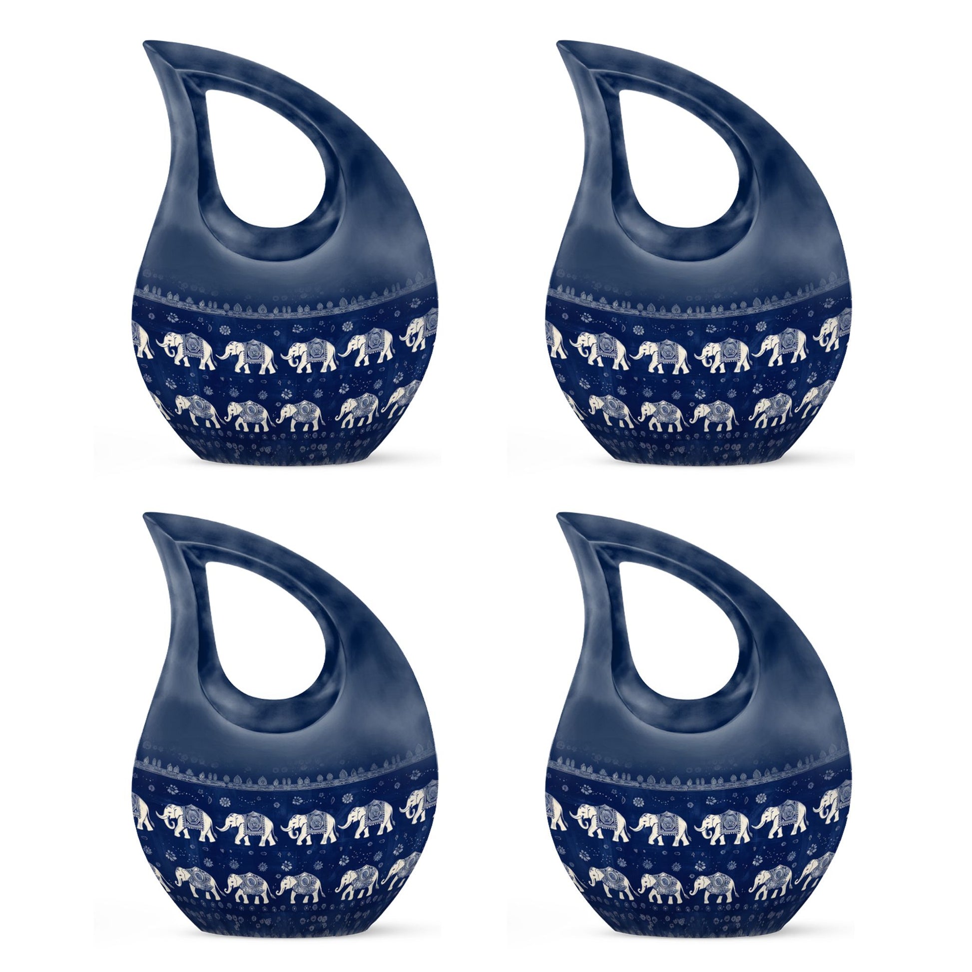 Discover the unique Elephant Family Urn, a remarkable piece amongst memorial urns that is both affordable and of superior quality. Crafted from durable aluminium, this large urn can securely hold up to 200 cubic inches of ashes. Sized at 10 inches in height and with a weight of 3.3 pounds, it boasts a comforting heft and presence. The package includes a velvet pouch, providing an additional layer of respect and protection for your loved ones' remains. The sensitive Elephant Family theme, incorporating a 'Cross Drop' representation, holds a special symbolism, adding a touch of serenity to its purpose. This urn allows for personalization; engrave the names of your cherished ones, making it truly unique. Whether you are searching for urns for human ashes, or require a low-cost cremation urn, this versatile offering caters to a variety of needs. Note that this urn for ashes avoids the commonplace, providing an elegant tribute that resonates with both adults and seniors.