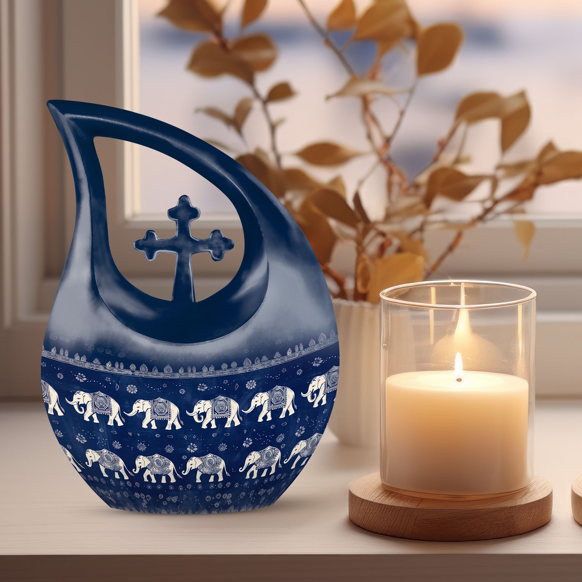 Elephant Family Cross Drop Large Urn - An Affordable Urn