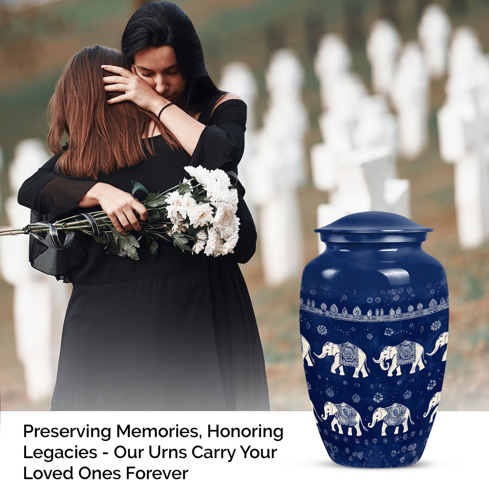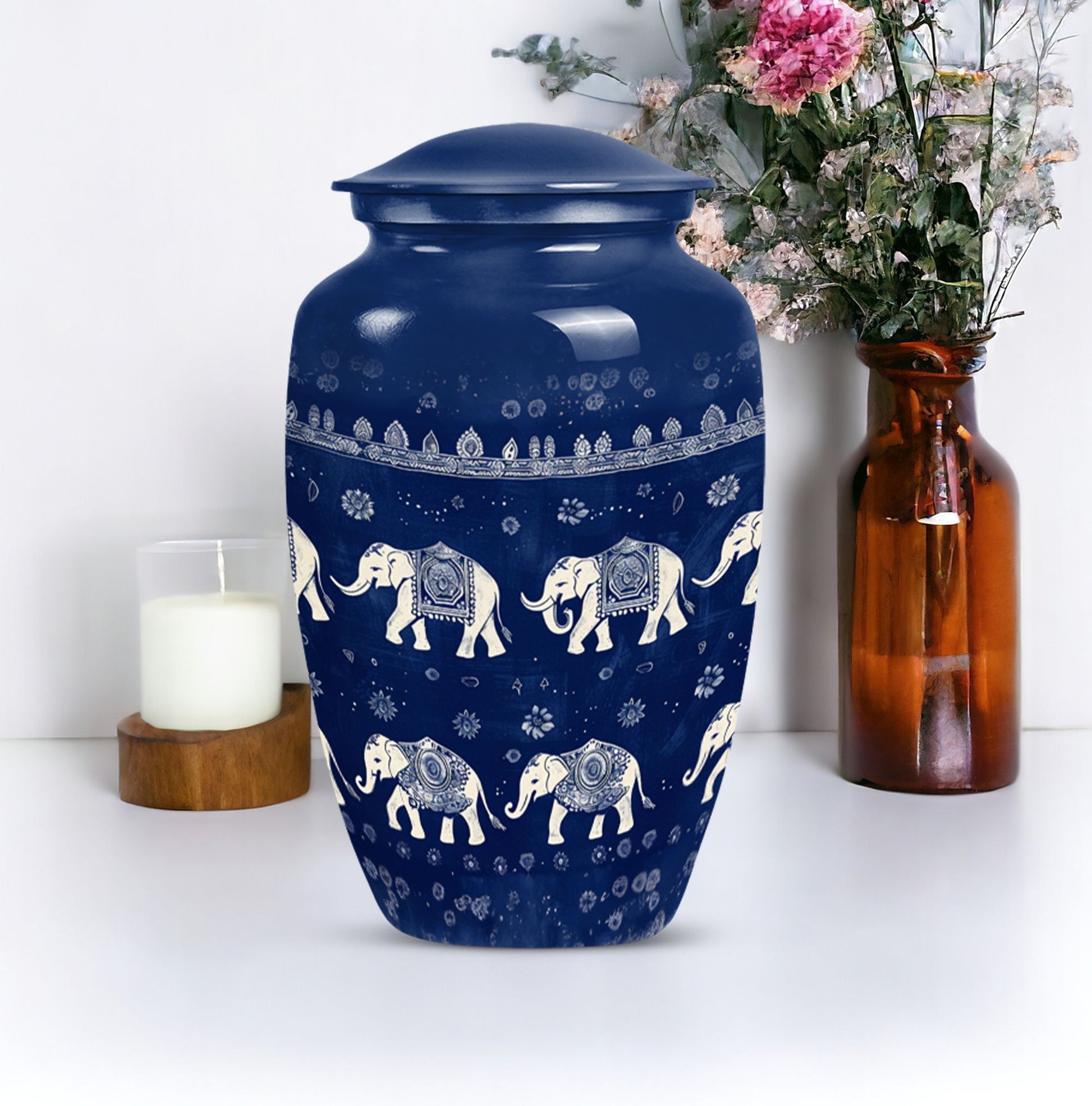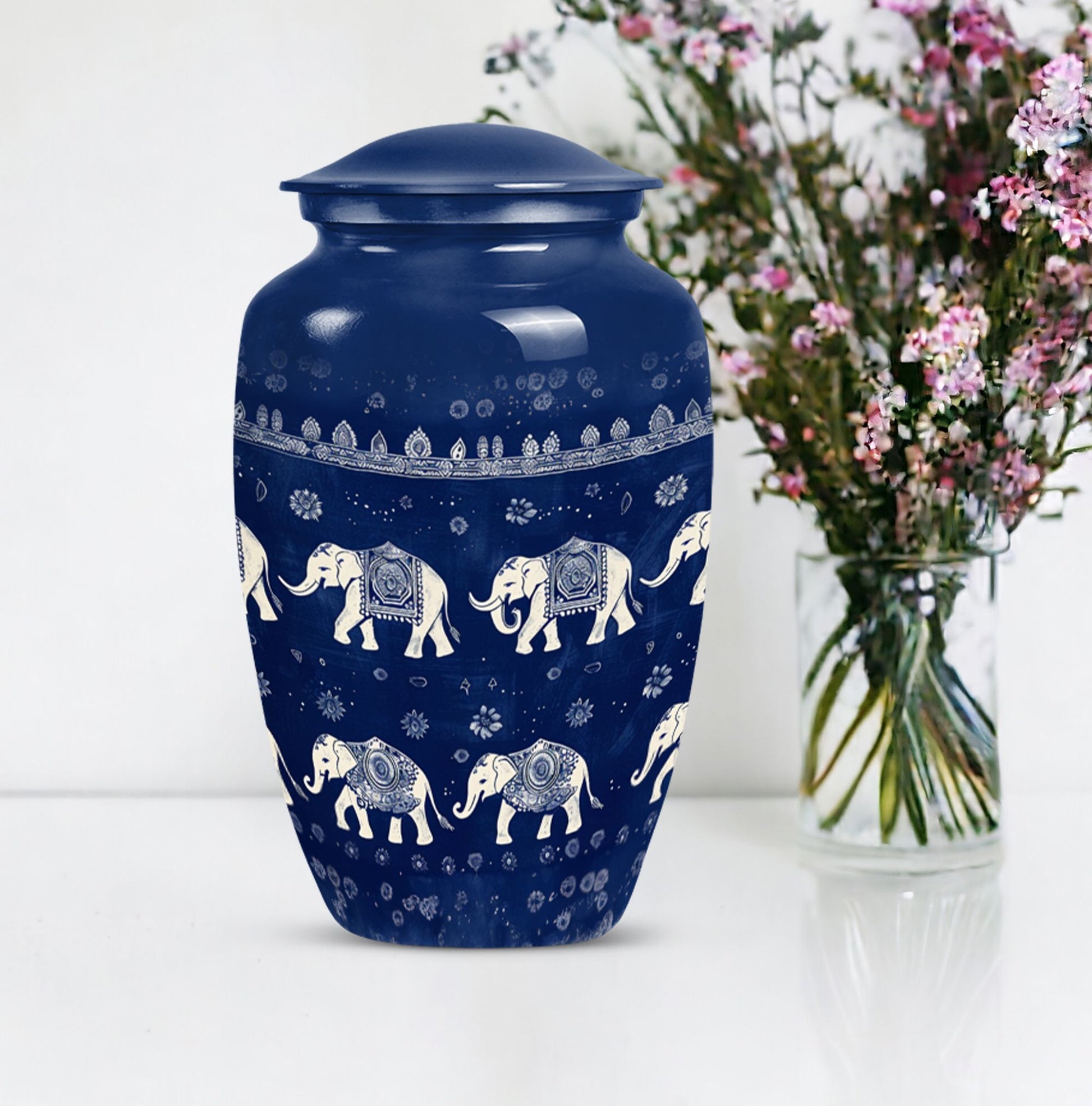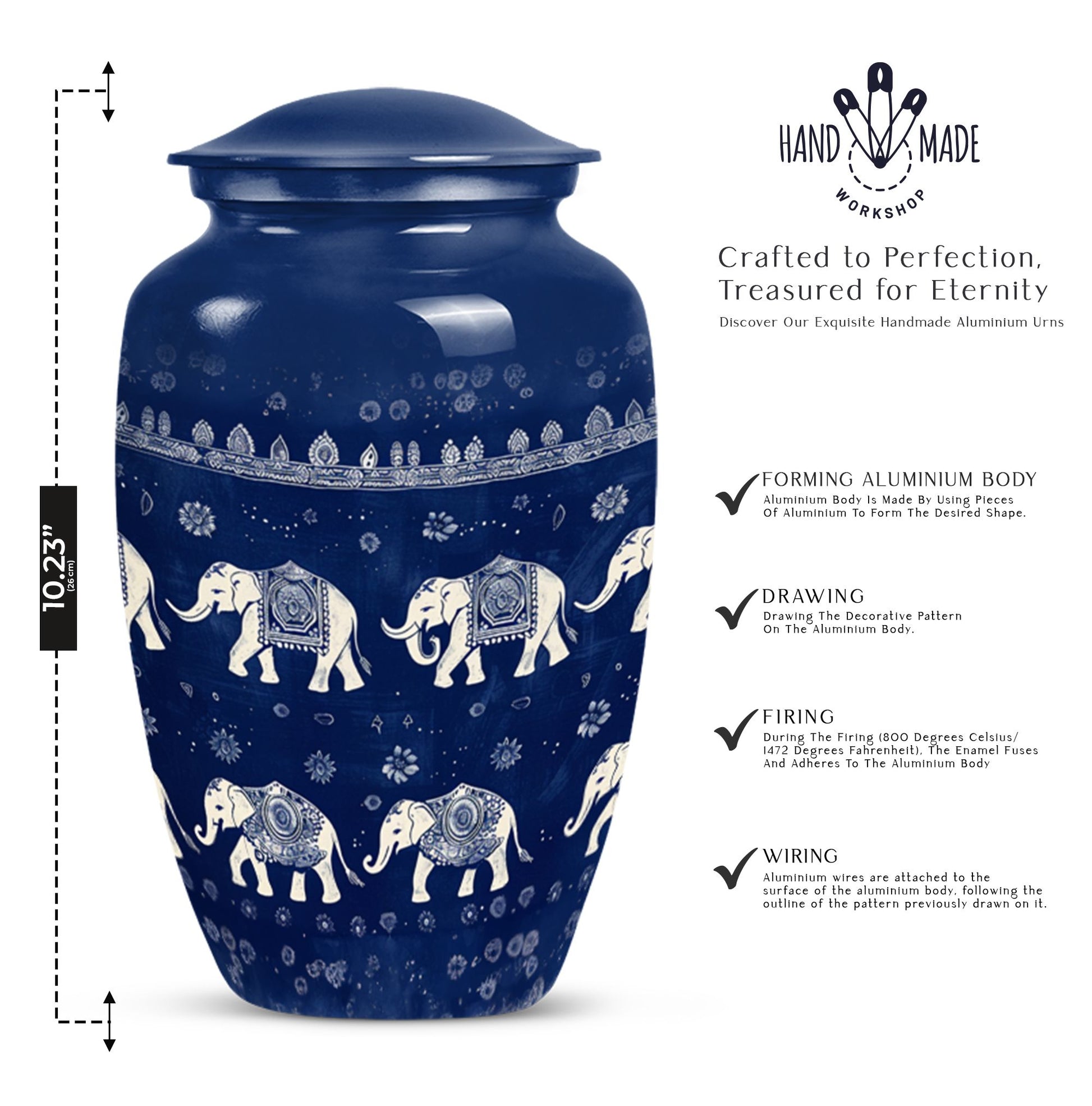 Cherish the memory of loved ones and keep them close to your heart with the divine Elephant Family Urn. Tactfully created in a classic urn design, this 10-inch tall memorial urn brings meaning and value to your remembrance circumstances. Structured from resilient Aluminum, the urn has a substantial capacity of 200 cubic inches and weighs a comfortable 3.3 pounds for easy handling. What’s more, practicality coupled with aesthetics, a Butterfly theme adds a spiritual touch to an already symbolic piece. Attend to the final journey with our uniquely shaped urn box, designed for men and ideal for storing cremation ashes of your mother or any loved one. Adding a personal touch, you can freely customize this burial urn with engraved names. Package comprises of a velvet pouch for safe containment and respectful handling of ashes. Perfectly sized, thoughtfully designed, and beautifully themed, this large urn elevates your memorial ceremonies with its bespoke appeal. Make your purchase today and ensure your loved ones rest peacefully. Keywords to remember: cremation urns for men, memorial urns, burial urns for cremation ashes mother, urn ash funeral urn, shaped urn box, funeral cremation urns.