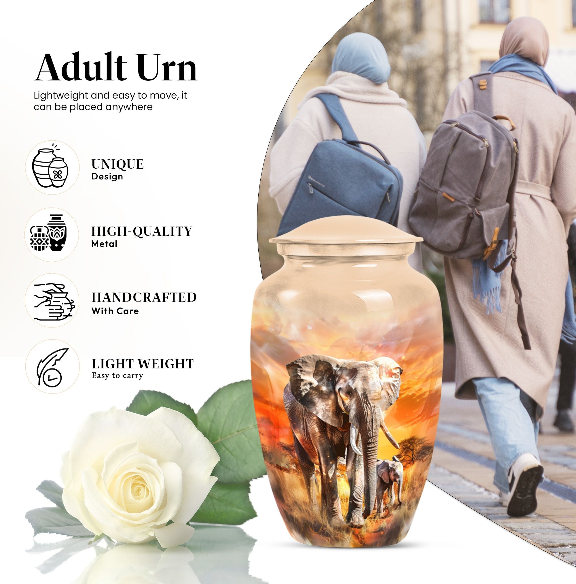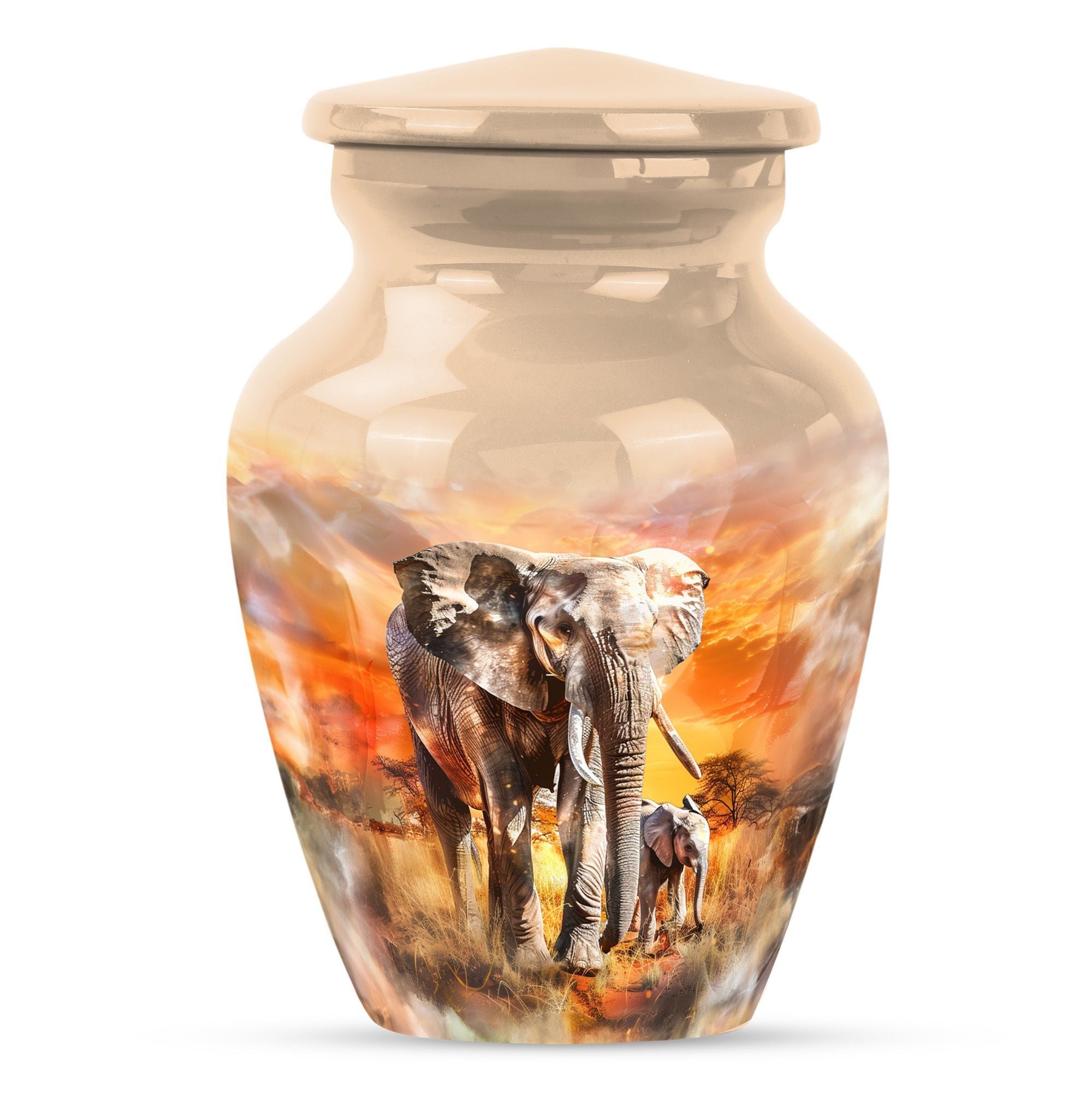 Expertly designed, the Elephant Family Tribute urn features intricate craftsmanship and a durable aluminium construction. Its elegant design complements any home or memorial space, making it ideal as adult urns women, men urns for human ashes, or urns for human ashes adult female. This versatile piece accommodates both small urn for ashes adult male and larger urns for ashes adult male, blending style with meaningful functionality.