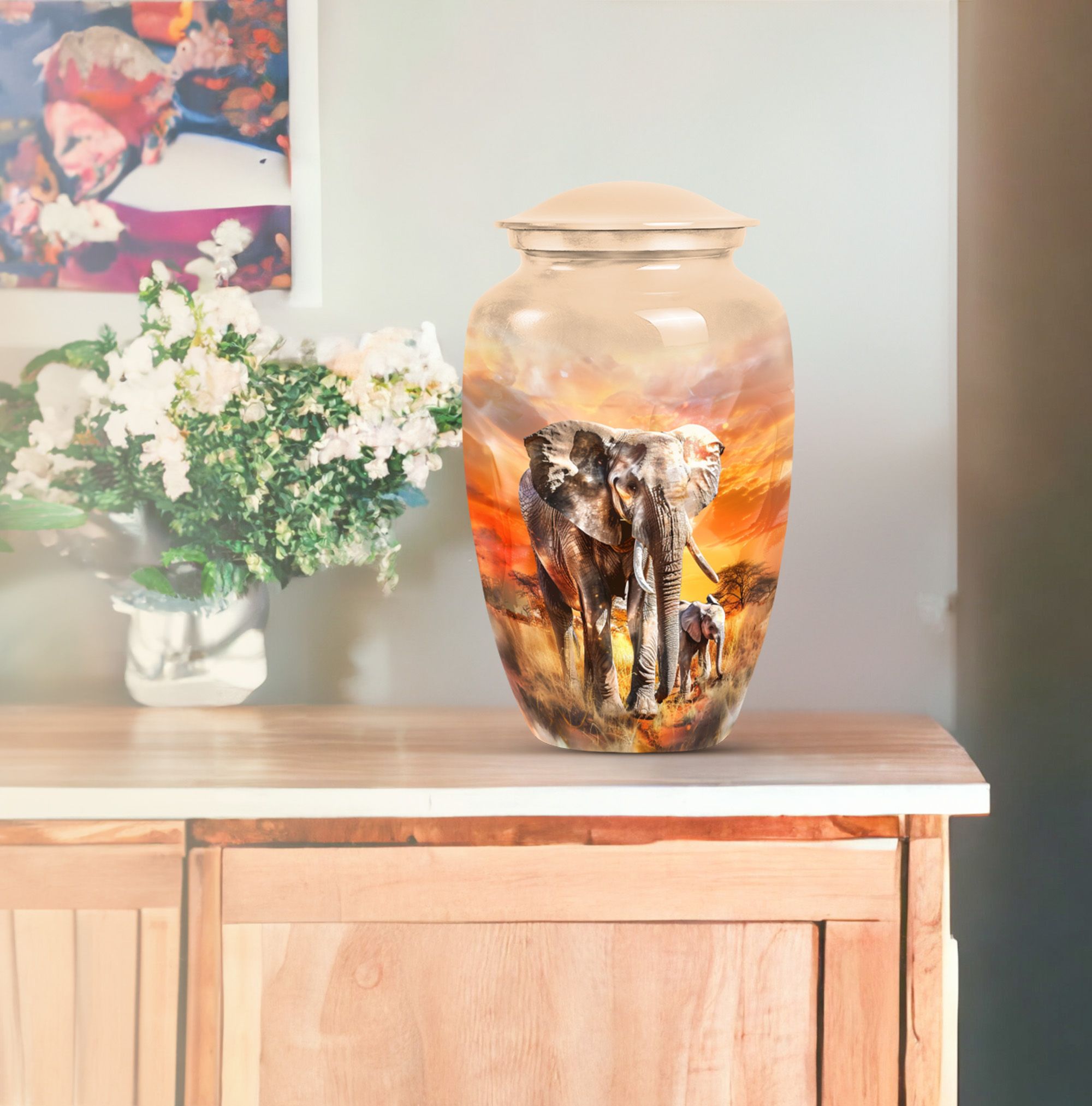 The Elephant Family Tribute urn stands as a symbol of love, family, and enduring memory, ensuring your loved ones remain close to heart. Suitable for men urns for human ashes or small urn for ashes adult male, it creates a lasting emotional connection for all who cherish their memory.