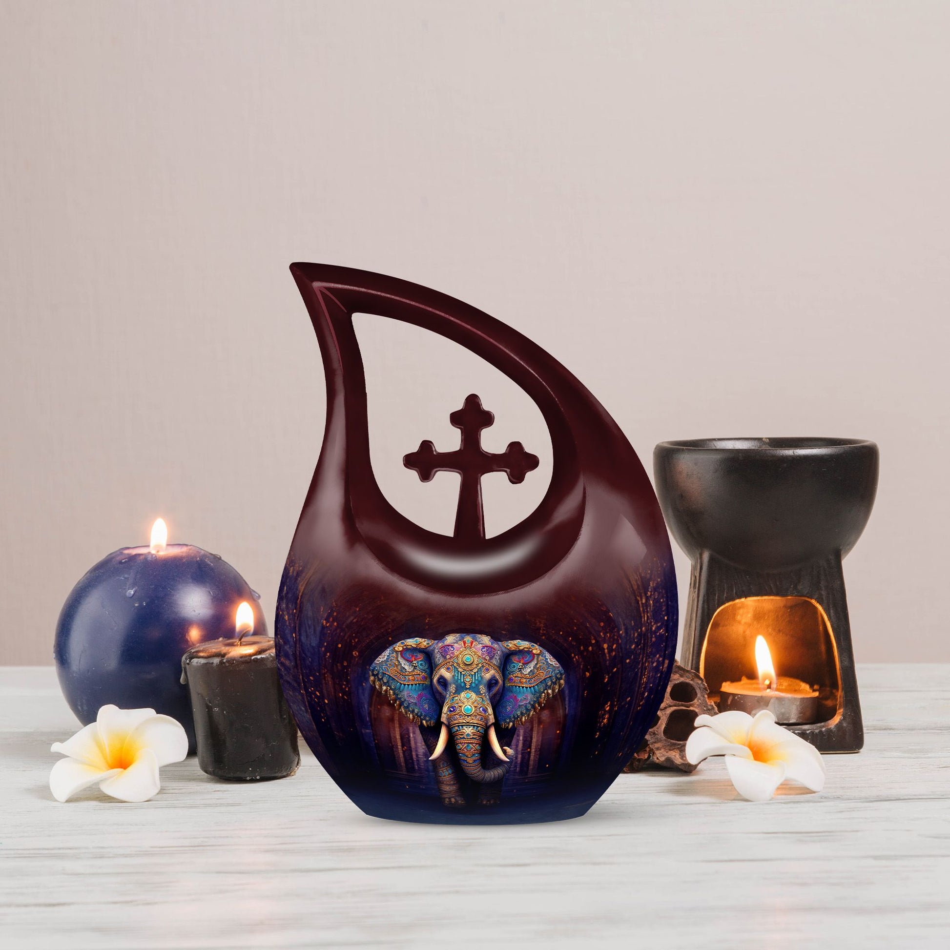 Honor a life of strength, wisdom, and dignity with this Mandala Elephant Burial Urn, a breathtaking symbol of spiritual balance and everlasting remembrance. The intricate mandala elephant design represents protection, stability, and inner peace — making this urn a powerful tribute for loved ones. Crafted for both men and women, it stands out among large urns for human ashes adult female and large urn for ashes adult male collections for its artistry and meaning.