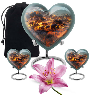 Instill a sense of peace, love, and tranquility with this butterfly-themed aluminium Elephant Urn, a classic choice from our collection of large burial urns for cremation ashes. The urn strikes the perfect balance between simplicity and sophistication, measuring 10 inches in height with a 200 cubic inch capacity. The urn's hearty design promises to house your loved ones' remains with the utmost care, weighing a sturdy 3.3 pounds. Accompanied by a velvet pouch in the package, protect and store precious cremation ashes securely. The urn leaves room for you to personalize with engraved names, making it not only a beautiful keepsake but also a heartfelt tribute. Whether you're in urban homes or consider it as a décor urn for men & women, this cremation urn serves as a sublime reminder of your loved ones. Note: The urn design does not include 'Design'.