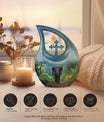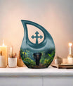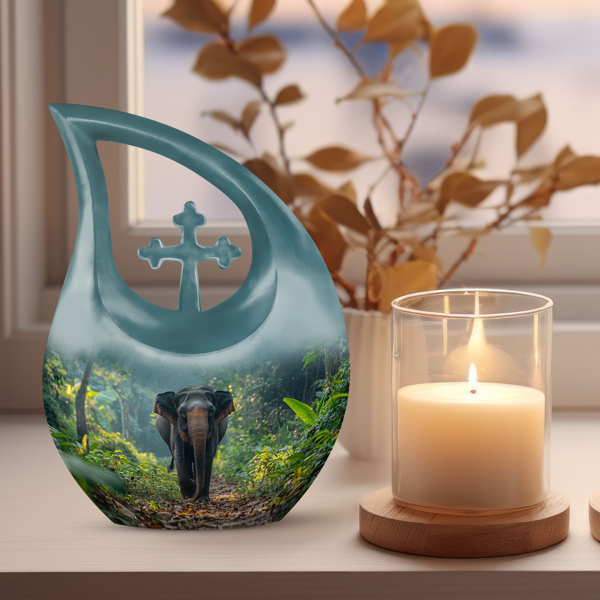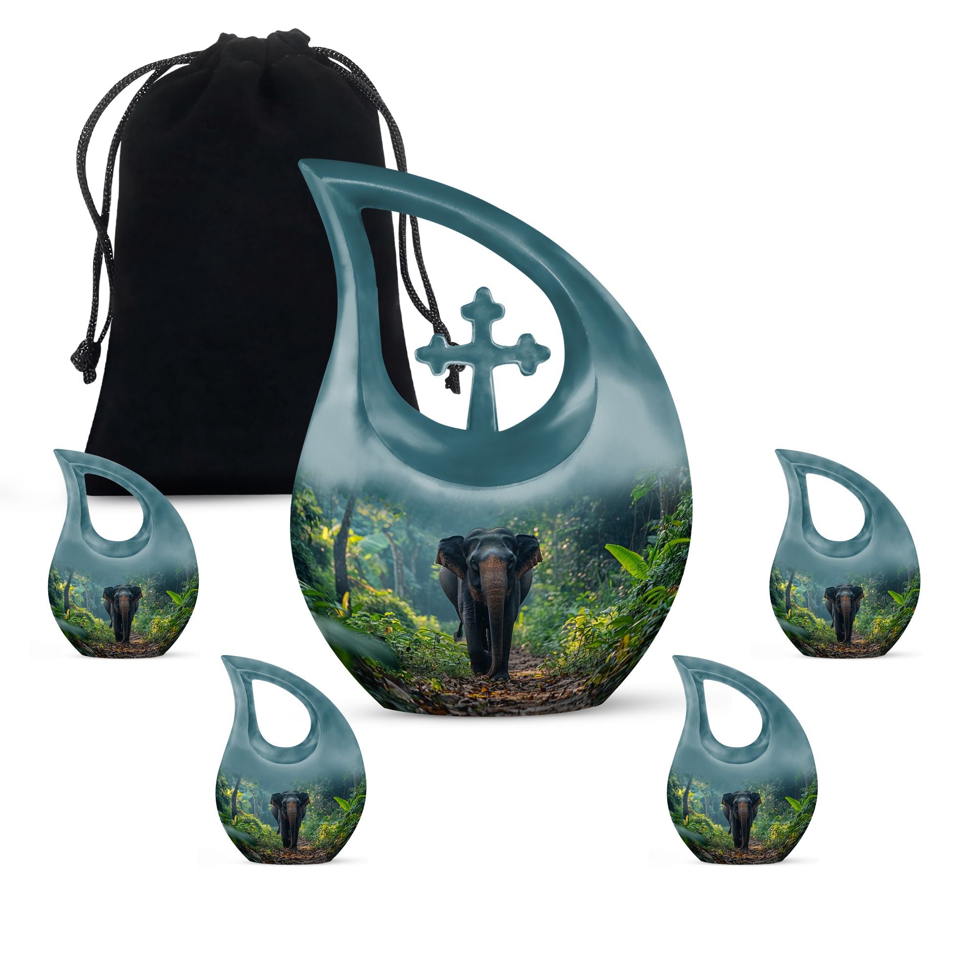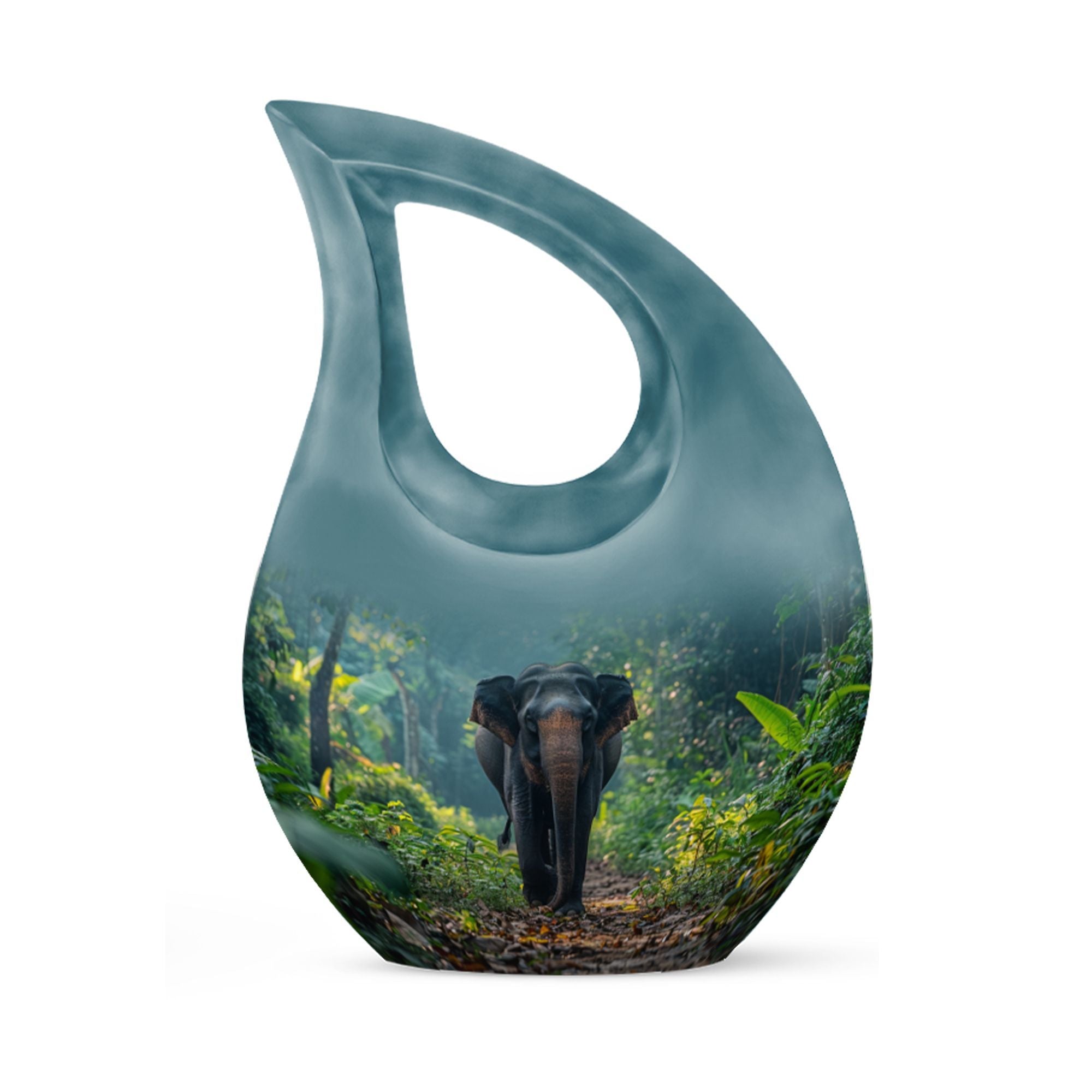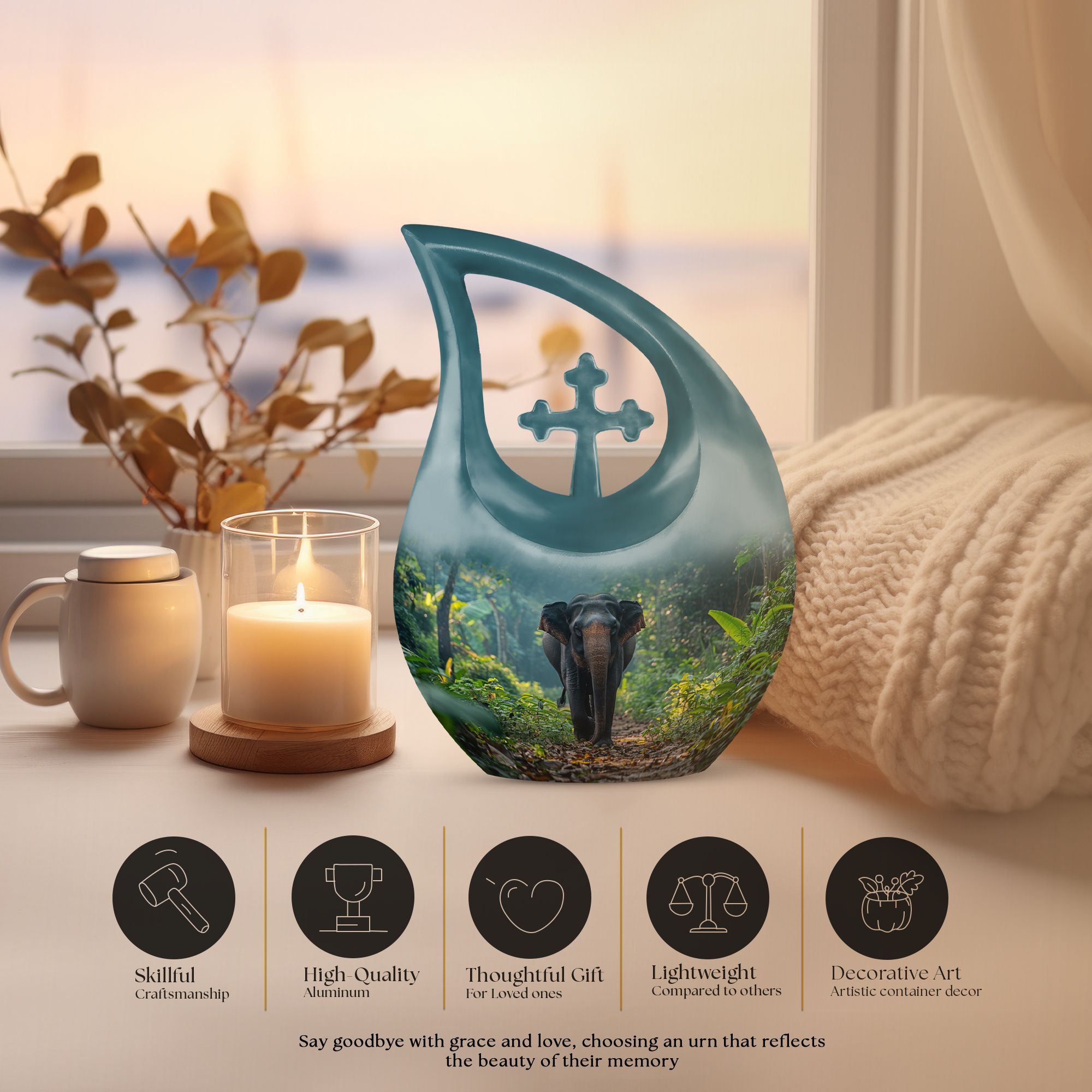 Carrying a blend of striking symbolism and subtle elegance, our Elephant Urn beautifully renders a distinctive tribute to your beloved one. Crafted from high-quality Aluminium, this unique urn for your Dad is tastefully adorned with a gently cascading Cross Drop motif, symbolizing light, divinity, and faith. Sized at a generous 10 inches, it can accommodate up to 200 cubic inches of ashes, making it a fitting choice for large urns category. With a substantial weight of 3.3 pounds, it radiates a reassuring presence. To add a personal touch, use our customization option and engrave names on it. Your purchase comes with a velvet pouch for the dignified containment of ashes. Doubling up as cremation boxes for adults or cremation containers, this large urn for ashes is also ideal for use as funeral urns for adults. Acquaint yourself with the solace one’s presence can continue to bring, even in their physical absence — remember and honour with our Elephant Urn.