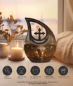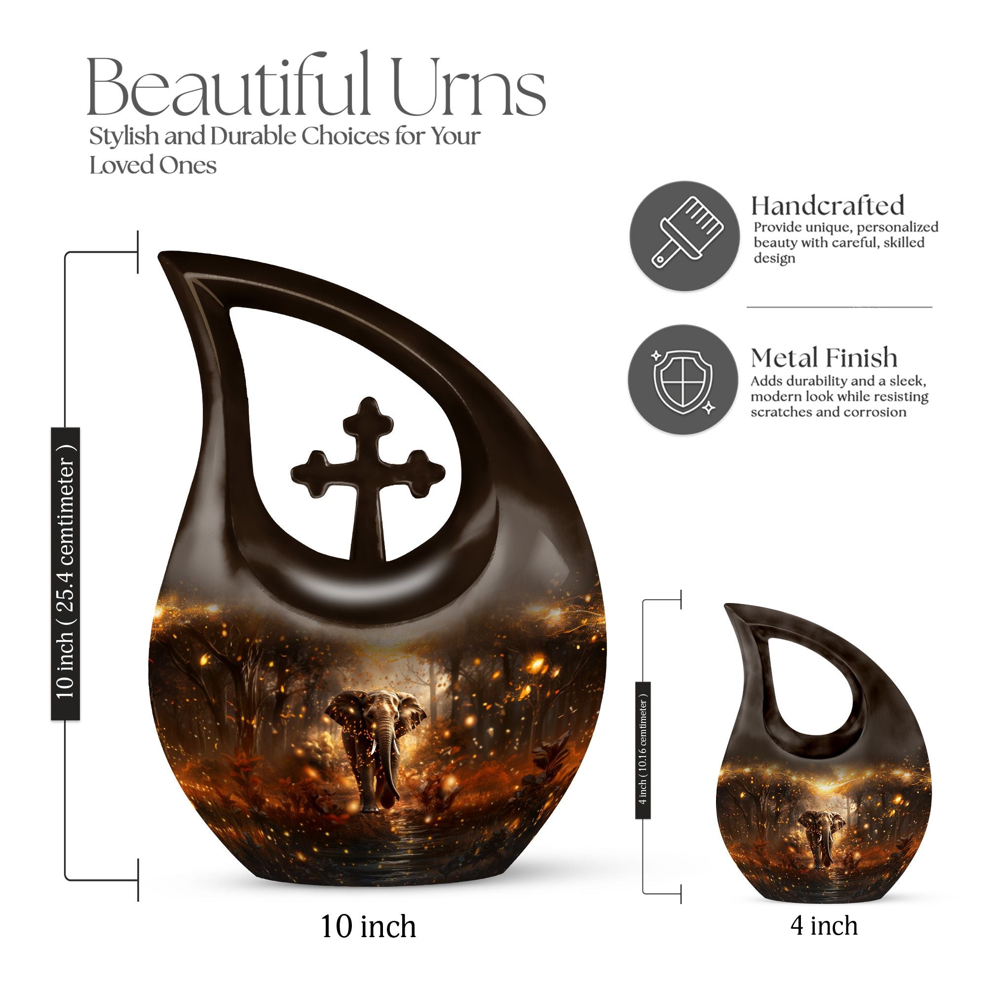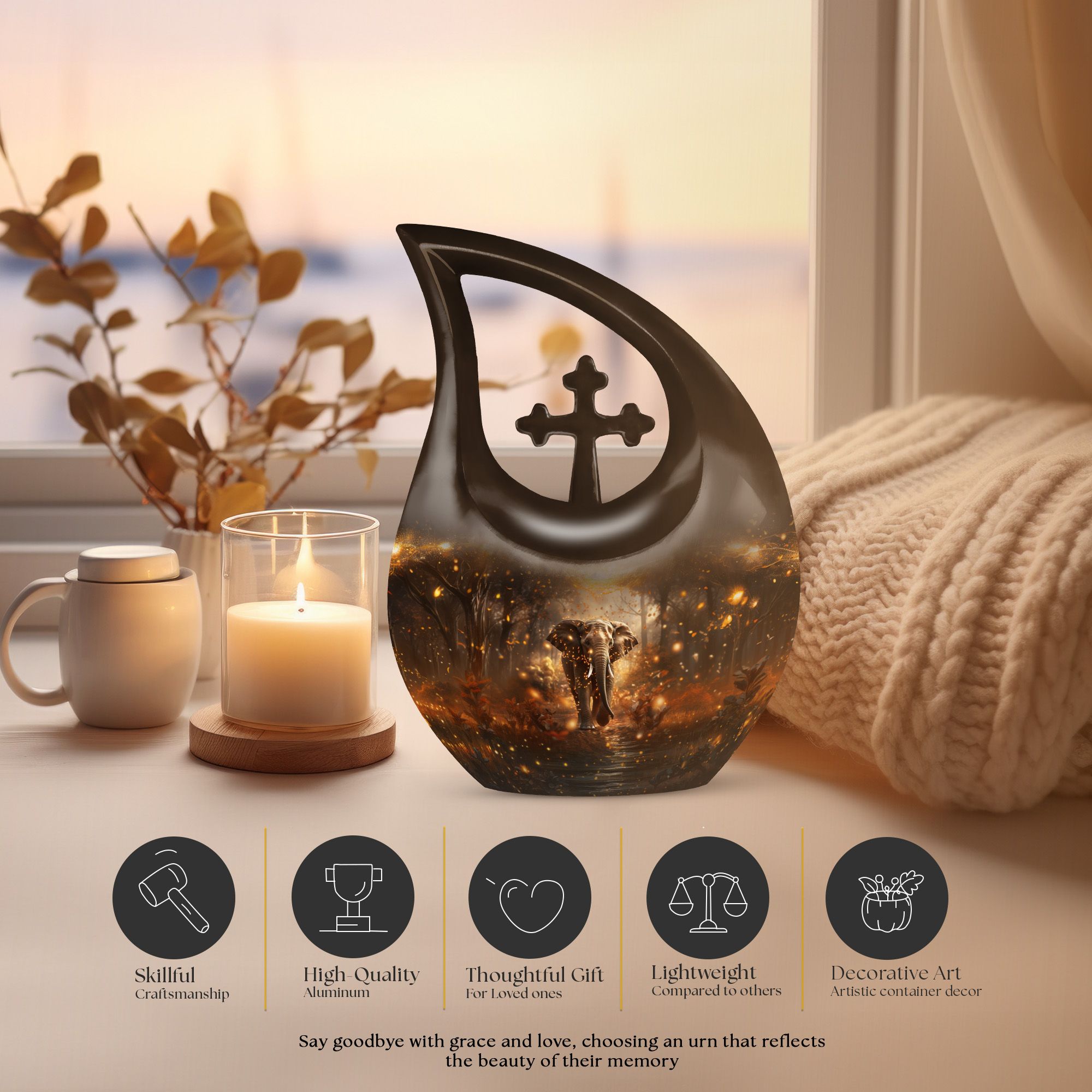 Expertly handcrafted from premium aluminum, this urn features a tranquil woodland scene with majestic elephants beneath a gentle canopy — a symbol of unity and protection. Designed for both men and women, it complements collections of funeral urns for women or cremation keepsakes for men, offering both style and sentiment. The secure screw-top lid keeps ashes safe, while the polished finish adds a timeless, dignified touch.