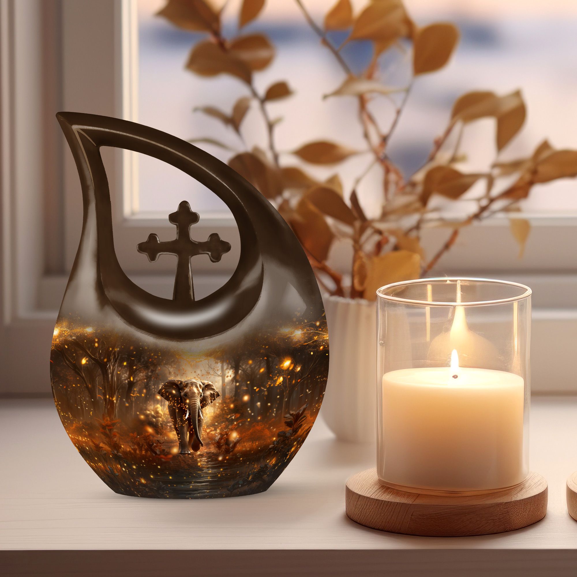 elebrate the memory of your loved one with this Elephant Forest Cremation Urn for Human Ashes, a nature-inspired design symbolizing strength, wisdom, and eternal love. The forest motif evokes peace and renewal, making it a meaningful choice among urn for men & women who shared a love for nature, balance, and togetherness.