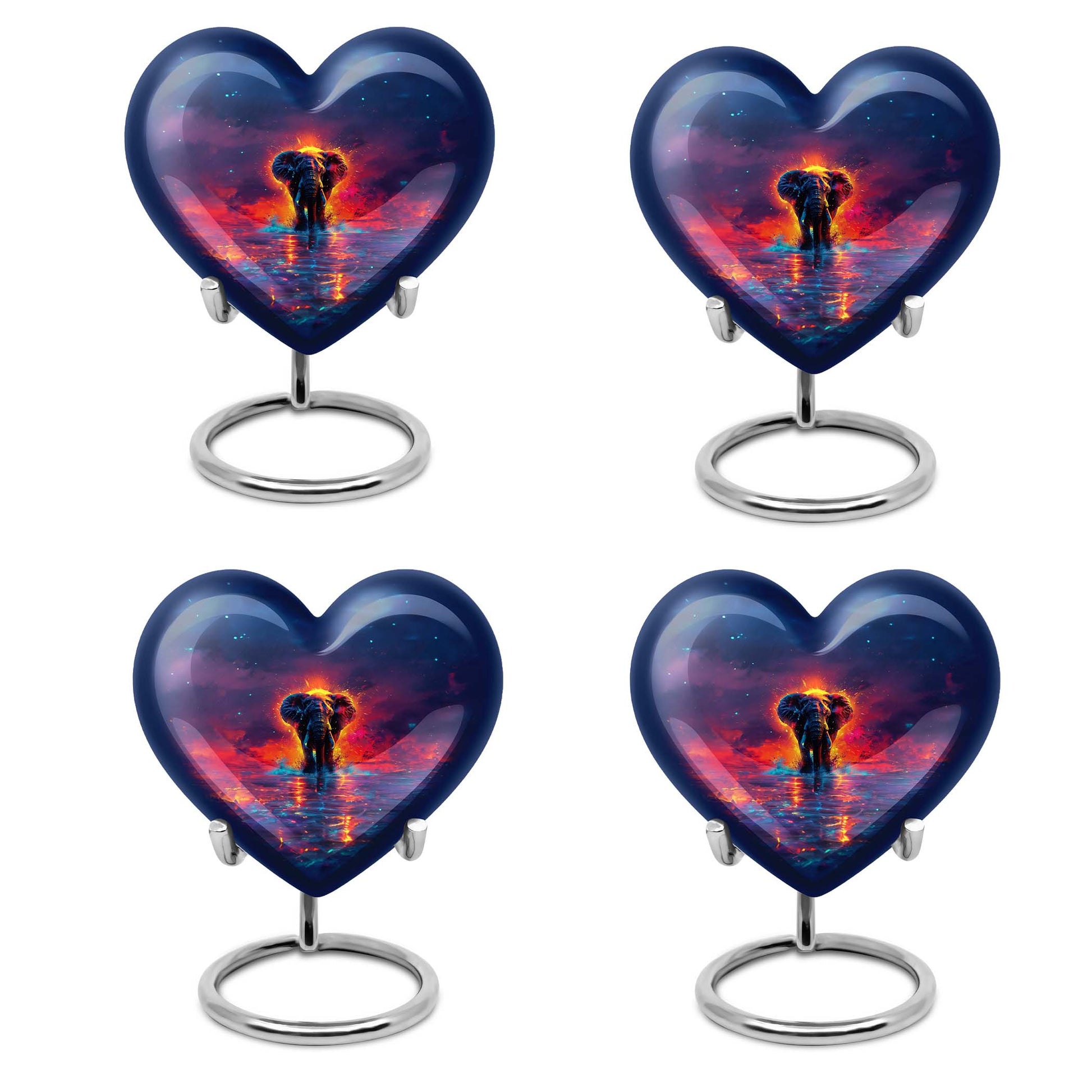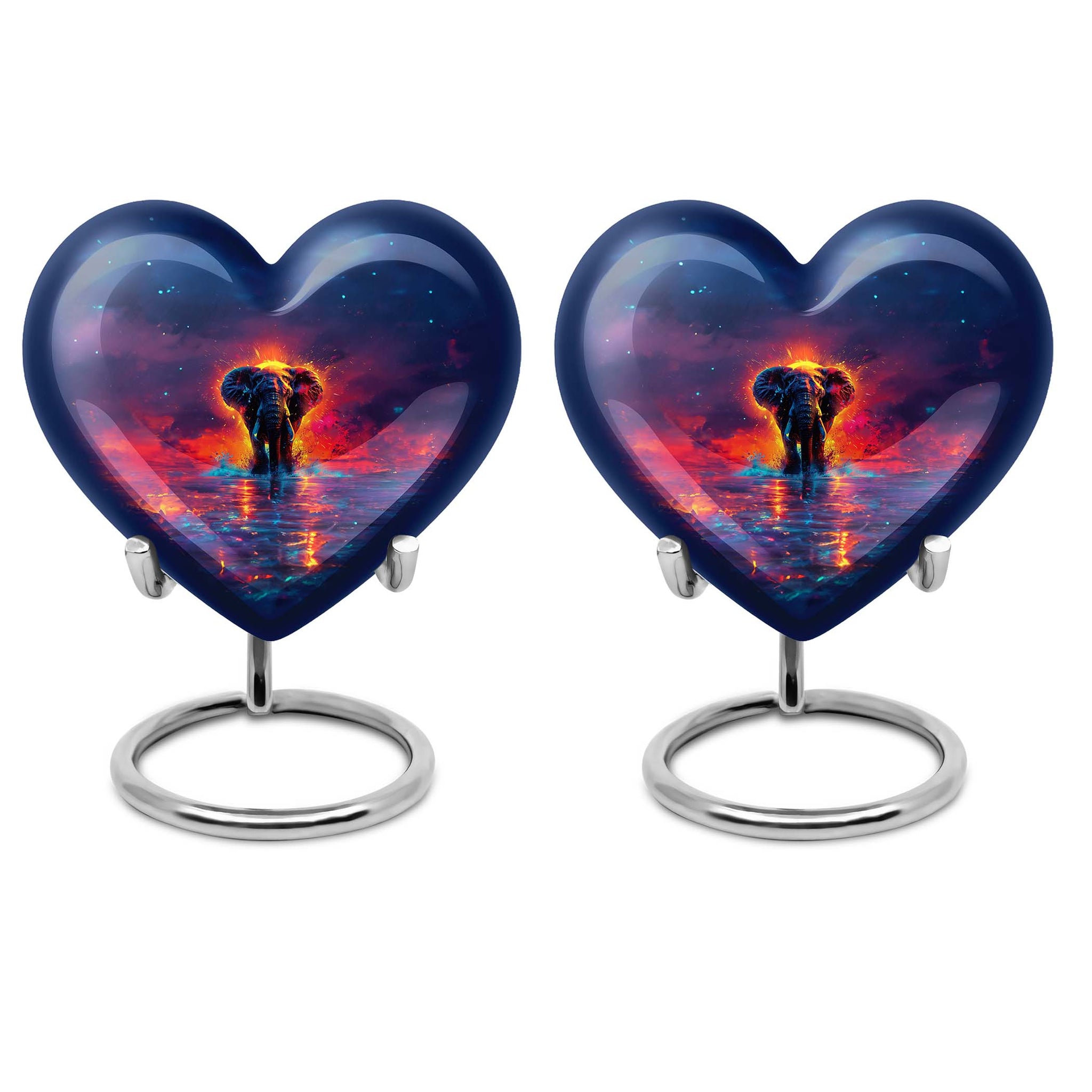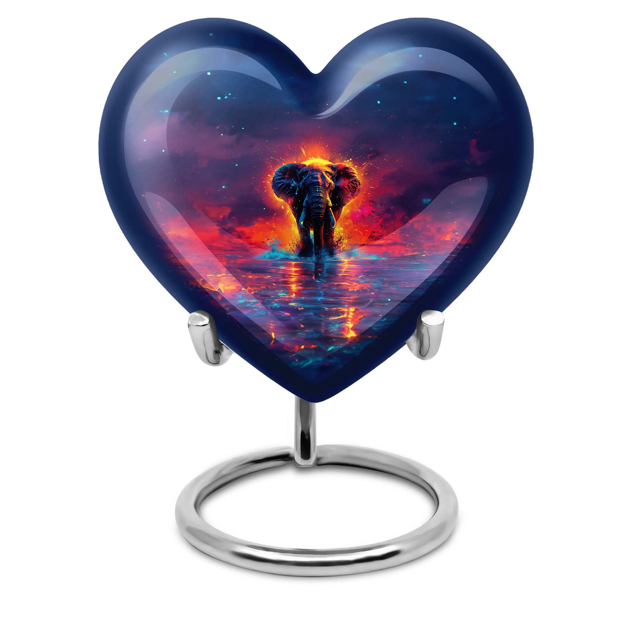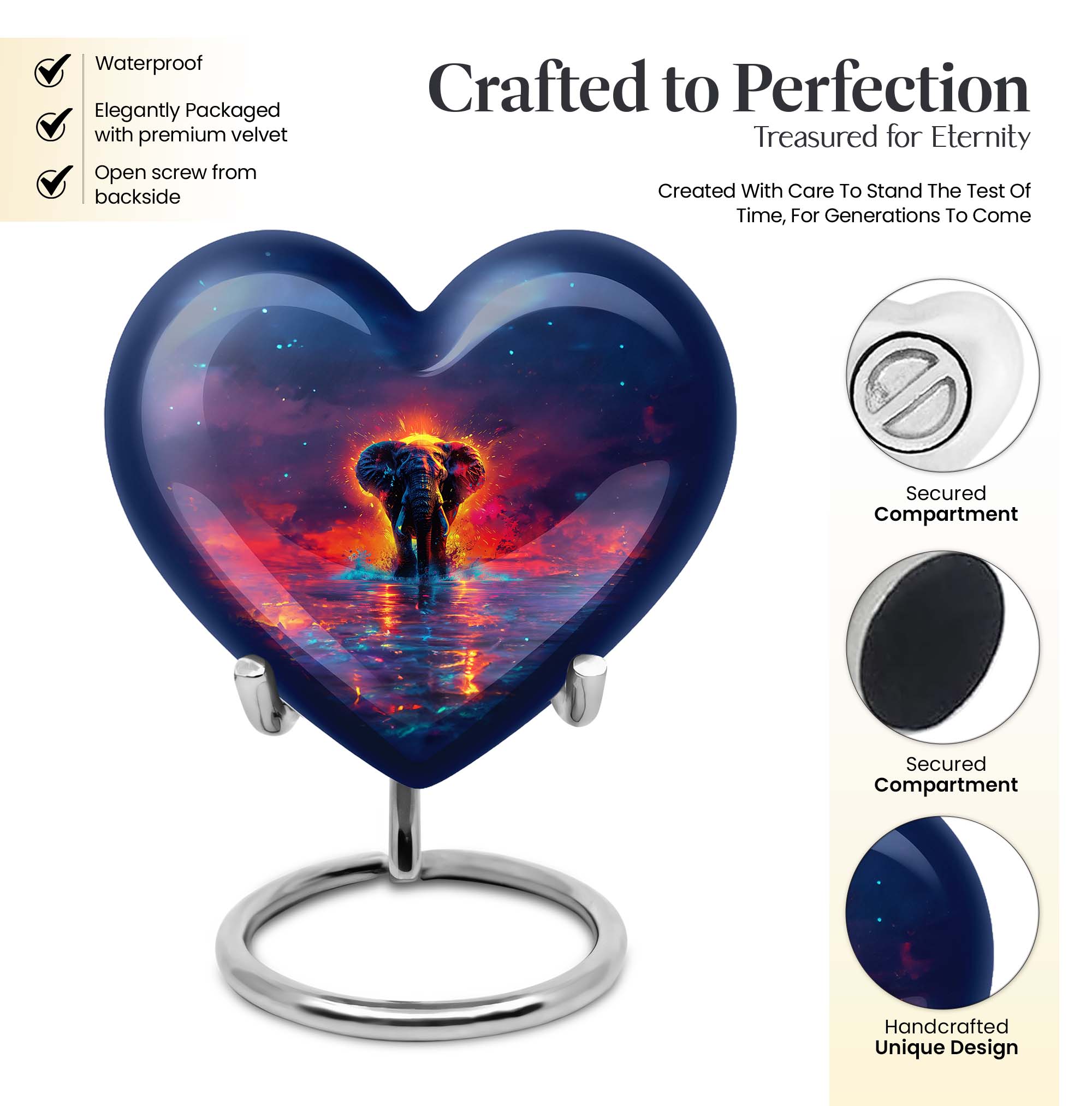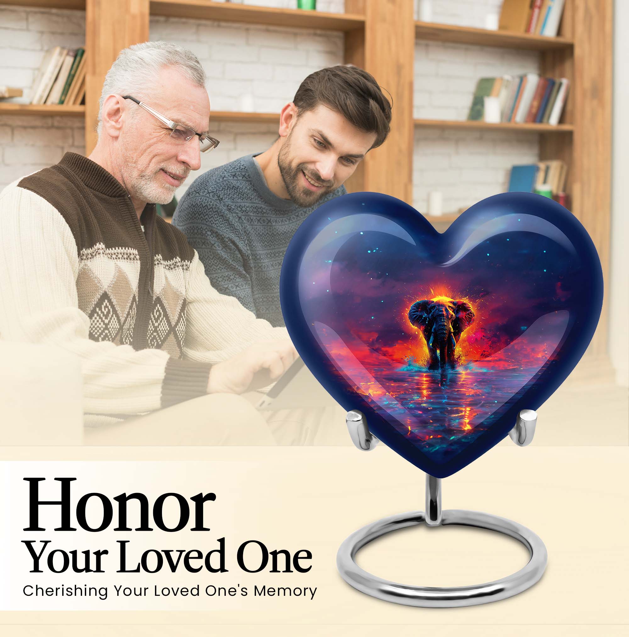 An exquisite memorial piece, this 10-inch Elephant Urn epitomizes care, majesty, and immortal love. Apart from its enduring butterfly theme, this large urn has been meticulously crafted from premium quality aluminum, weighing a sturdy 3.3 pounds. Its dimensions provide 200 cubic inches of space, generously sized to hold adult human ashes. This cremation urn comes with a velvet pouch that creates a tender cocoon for the remains of your loved one. Add an intensely personal touch by engraving names of your choice on this heart-formed urn. This cremation urn is a profound way to cherish and remember your loved ones. Notably, it is a unisex piece, thoughtfully suited to be a memorial urn for men and women alike. The beautiful shape and theme make it more than a resting place for ashes; it's a majestic tribute art piece to the departed. Packed with emotional depth and specifically geared towards seniors' aesthetic preferences, this urn offers unique comfort during heart-rendering moments of loss. Filled with a symbolic representation of eternal love, this Elephant Urn is an extraordinary testimony to a life well-lived and loved. Keep your memories present and spiritual connection alive with this remarkable urn.