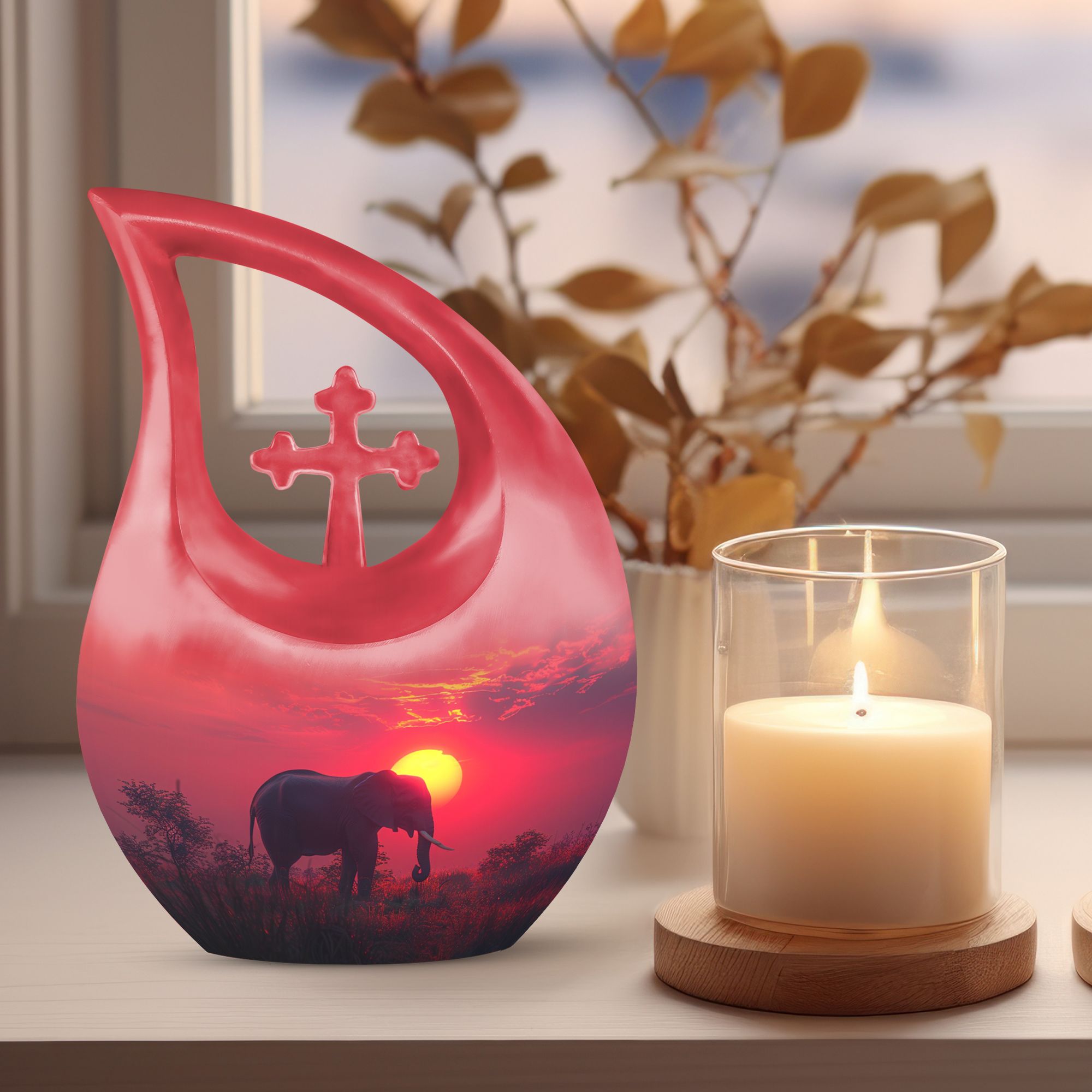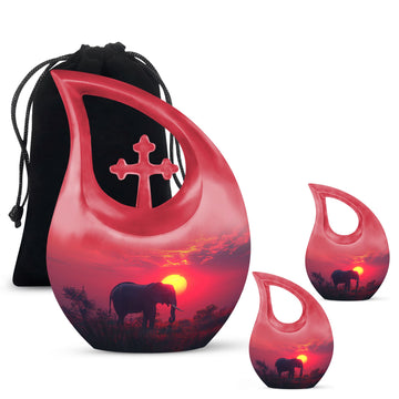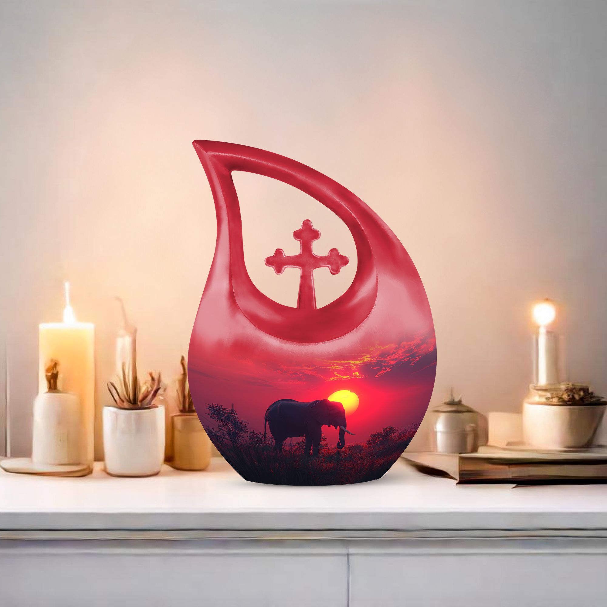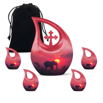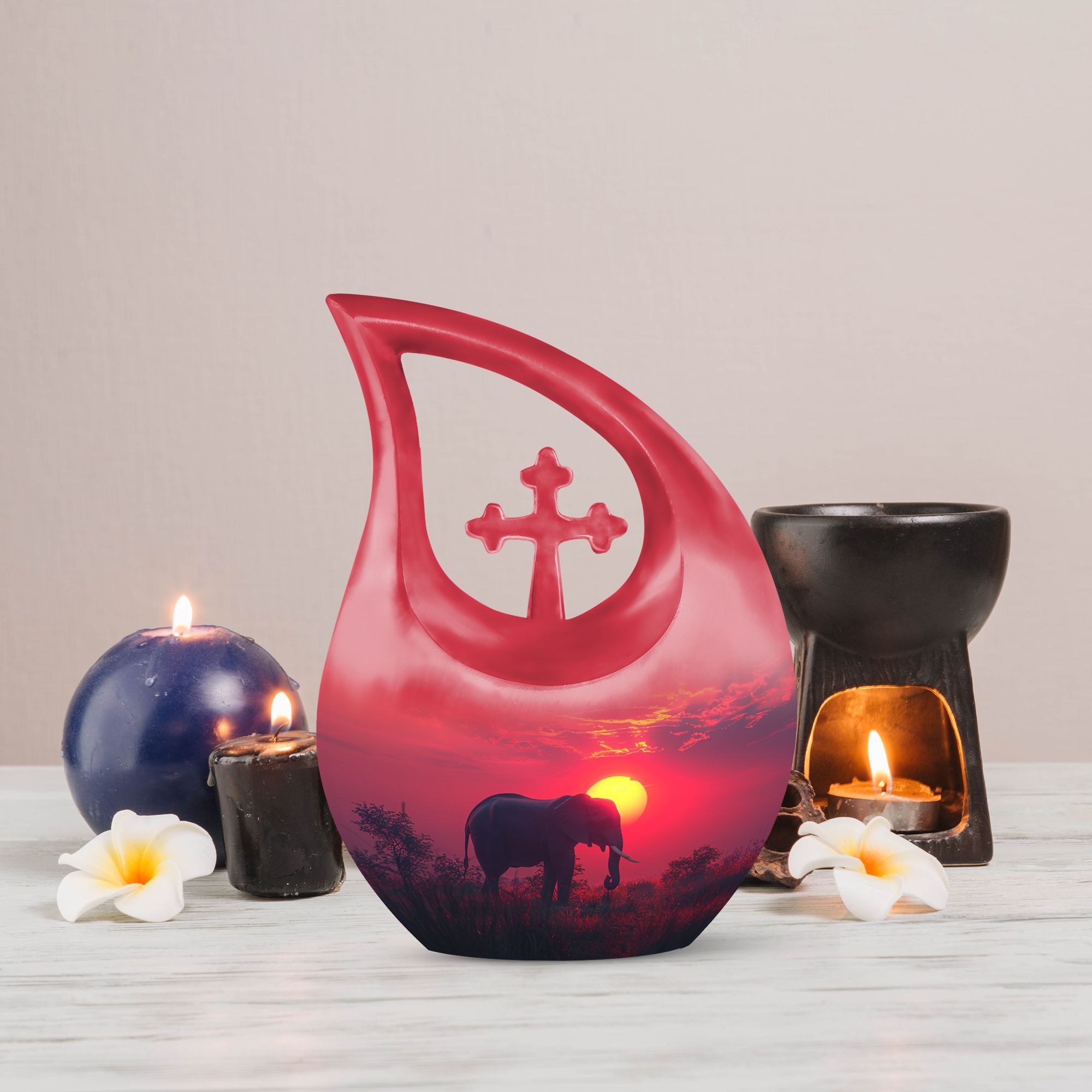 Embrace the profound symbolism of an elephant with our elegantly crafted Elephant Urn, seamlessly blending tradition and symbolism for any faith or belief system. Standing proud at 10 inches tall, this prominent Large Urn is meticulously crafted from durable aluminium, offering an enduring memorial for your loved one. The Cross Drop design, a unique facet of this urn, introduces an understated elegance without compromising its serene ambience. The urn, weighing a sturdy 3.3 pounds, can accommodate up to 200 cubic inches of ashes, held securely using the velvet pouch provided within the package, allowing for a respectful containment. Should you wish to add a personal touch, this All Faith Funeral Urn allows for engraved names, fostering a deeper connection with the departed. This product excels in marrying functionality and sentiment, making it a quintessential choice within the realm of memorial urns. Keep in mind, our urn is also available as a Small Urn or Miniature Urn, depending on your specific needs. Opt for our 'Elephant Urn' for a dignified and heartfelt memorial.