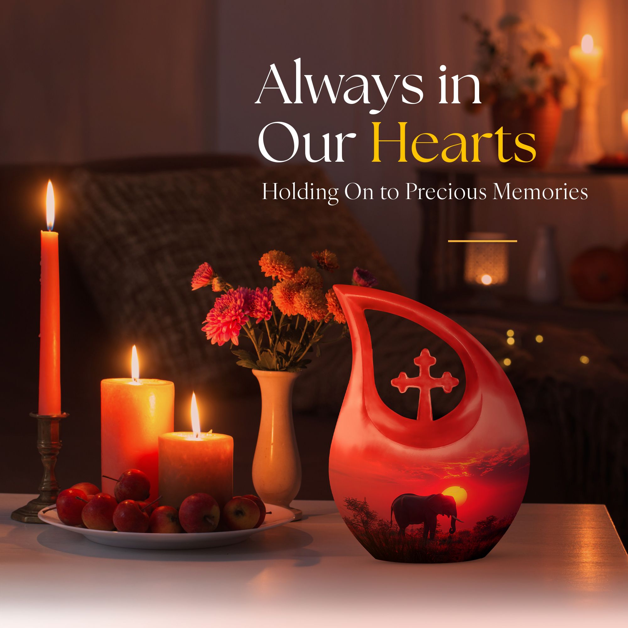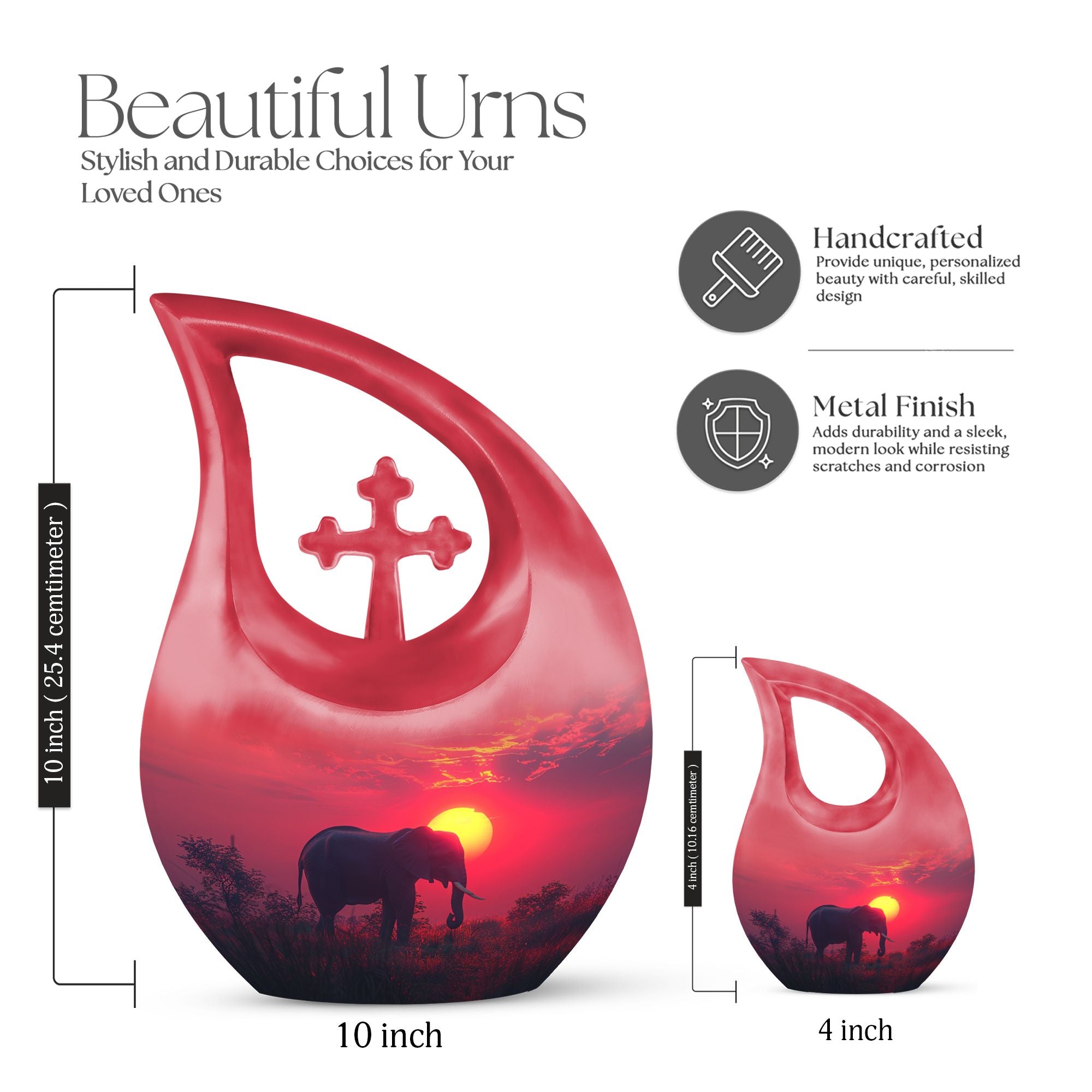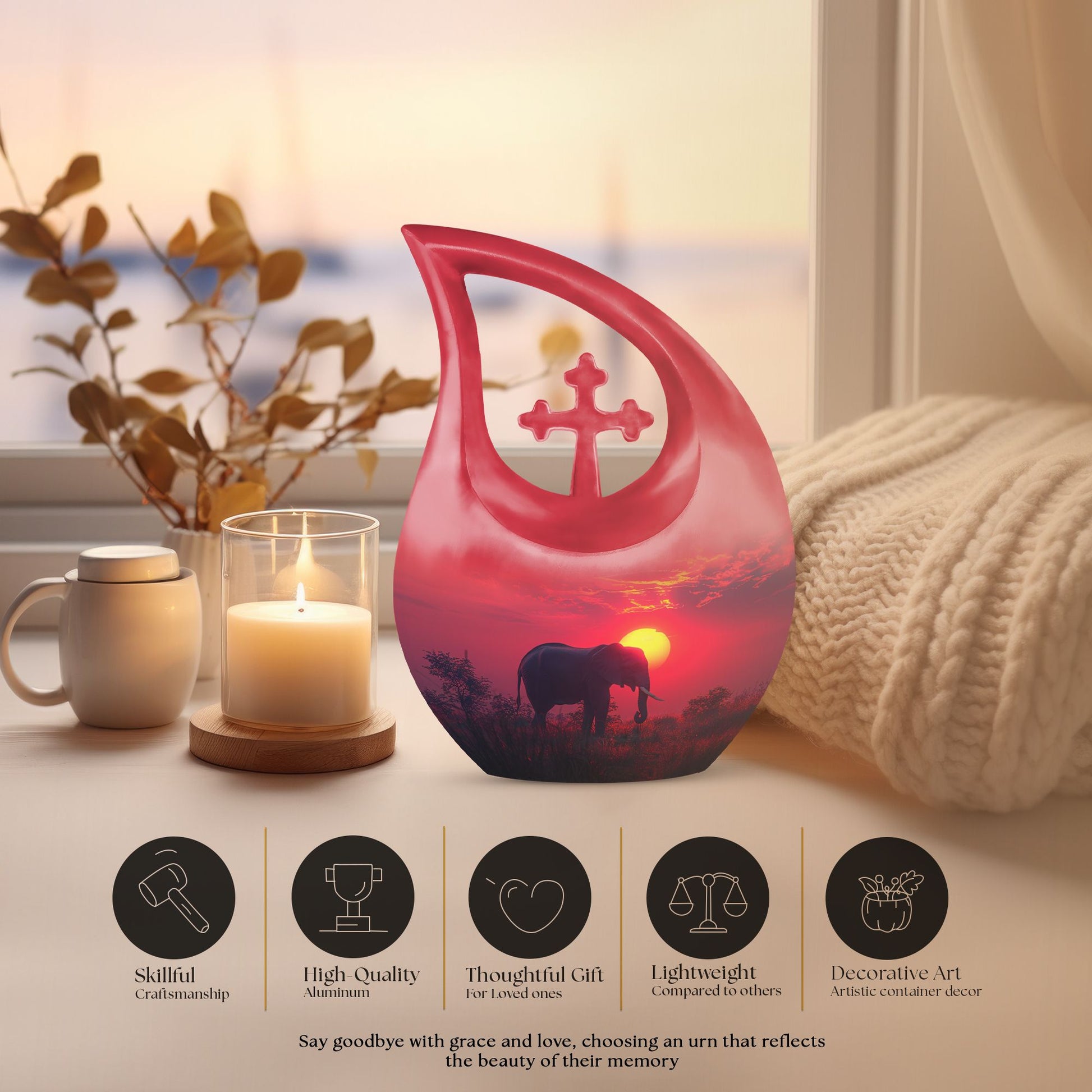 Embrace the profound symbolism of an elephant with our elegantly crafted Elephant Urn, seamlessly blending tradition and symbolism for any faith or belief system. Standing proud at 10 inches tall, this prominent Large Urn is meticulously crafted from durable aluminium, offering an enduring memorial for your loved one. The Cross Drop design, a unique facet of this urn, introduces an understated elegance without compromising its serene ambience. The urn, weighing a sturdy 3.3 pounds, can accommodate up to 200 cubic inches of ashes, held securely using the velvet pouch provided within the package, allowing for a respectful containment. Should you wish to add a personal touch, this All Faith Funeral Urn allows for engraved names, fostering a deeper connection with the departed. This product excels in marrying functionality and sentiment, making it a quintessential choice within the realm of memorial urns. Keep in mind, our urn is also available as a Small Urn or Miniature Urn, depending on your specific needs. Opt for our 'Elephant Urn' for a dignified and heartfelt memorial.