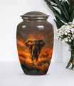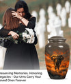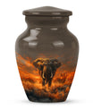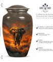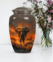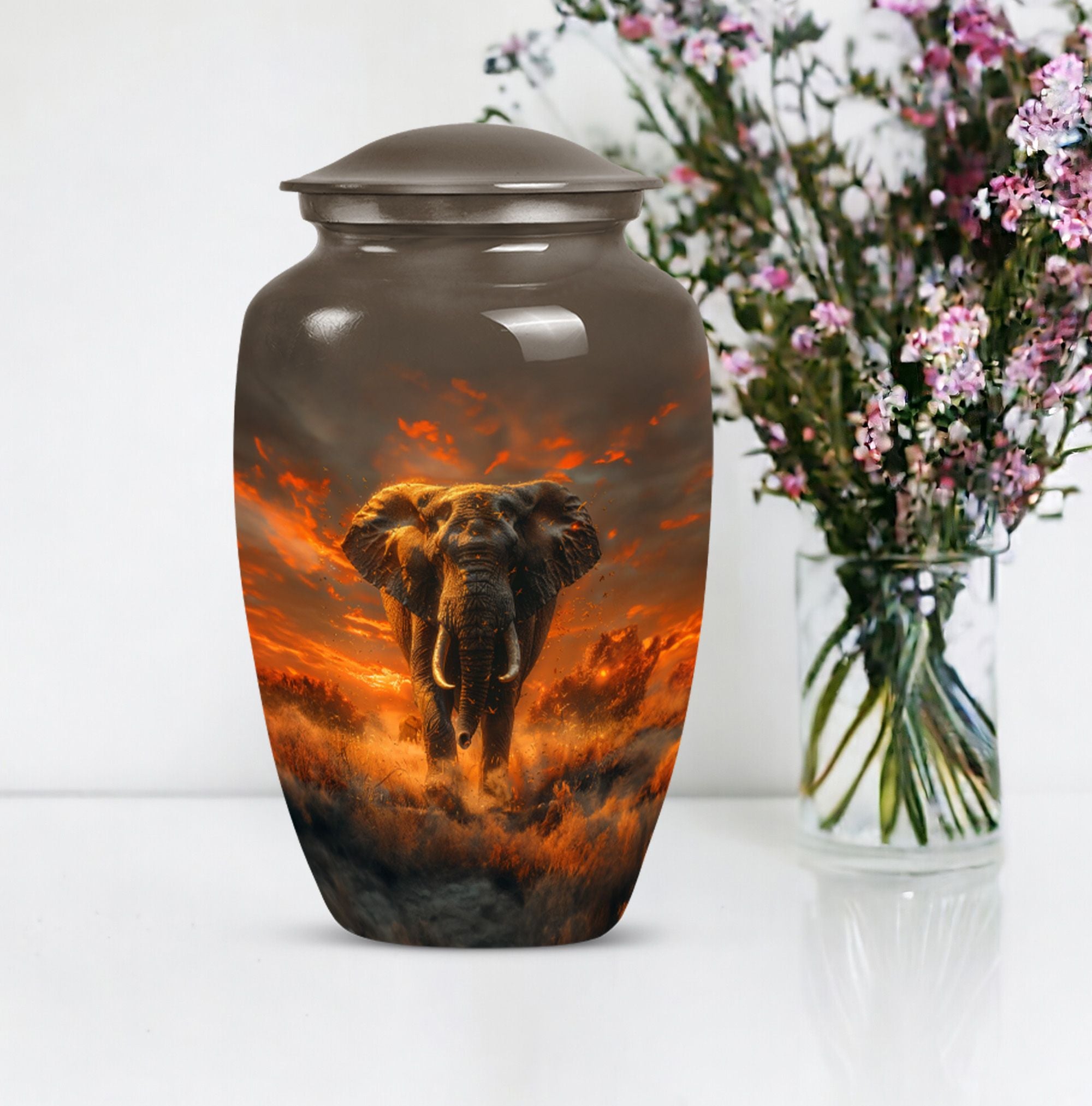 A tribute worthy of fond memories, this 10 inch elephant urn is a beautiful repository to memorialize your loved ones. Crafted from high-grade aluminium for strength and longevity, this large urn weighs a substantial 3.3 pounds and accommodates up to 200 cubic inches of ashes, making it suitable for adult funeral services. True to its classic urn styling, featuring elegantly designed flowers to bring a sense of peace and solace. Each urn comes with a delicate velvet pouch that provides a protective home for the ashes. Personalize this memorial urn with engraved names, adding an intimate touch to this commemoration of life's journey. Ideal for those seeking 'forever urns' or 'urns for mom,' its elegant structure and thoughtful design are a testament to individuality and memory. Offering reassurance and comfort, our elephant urn, specifically crafted with human ashes in mind, aims to love and honour for a lifetime.