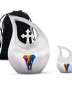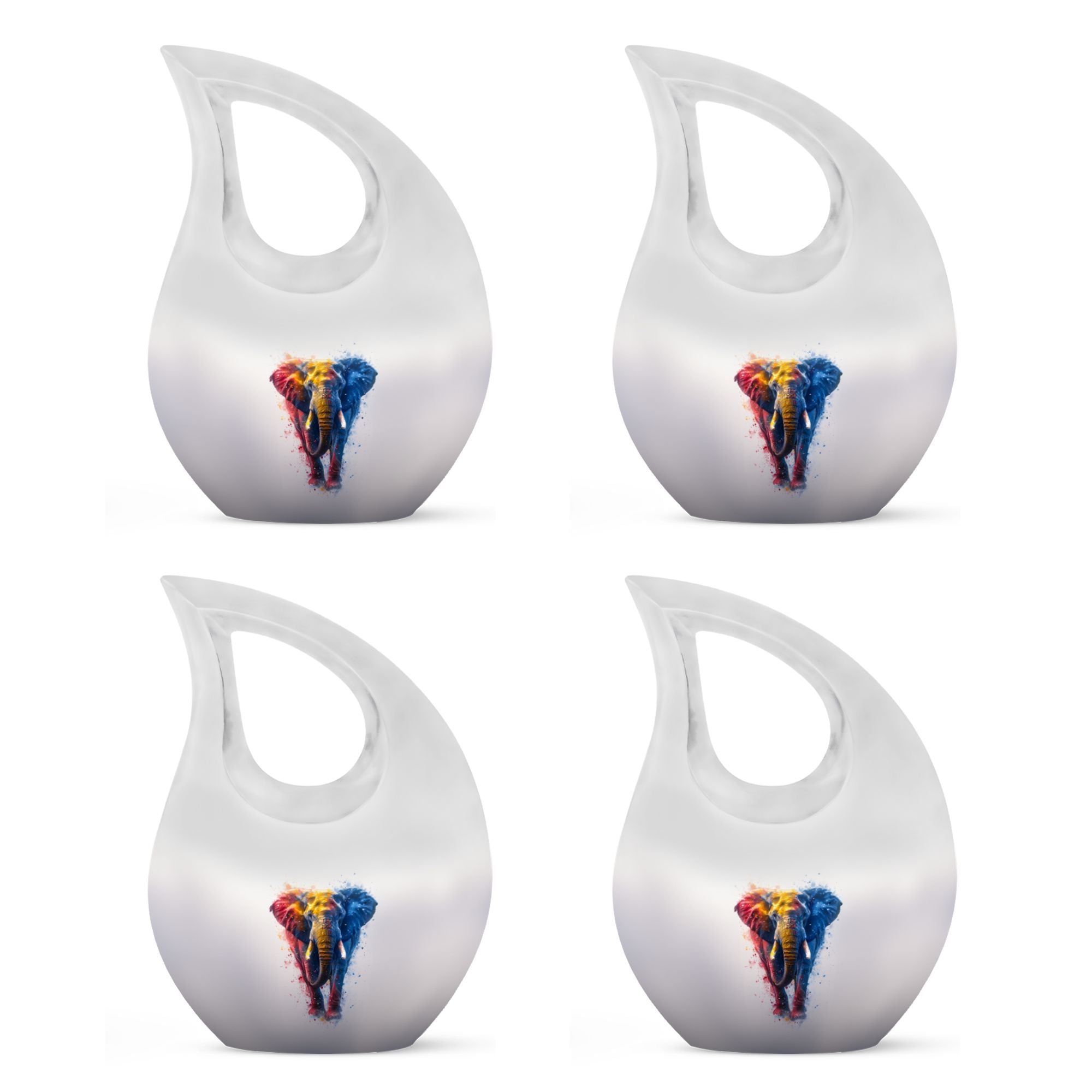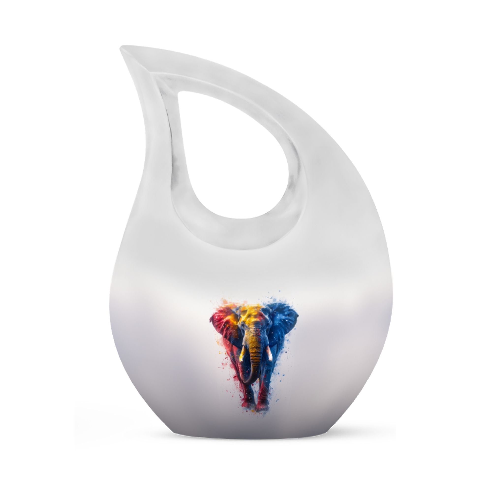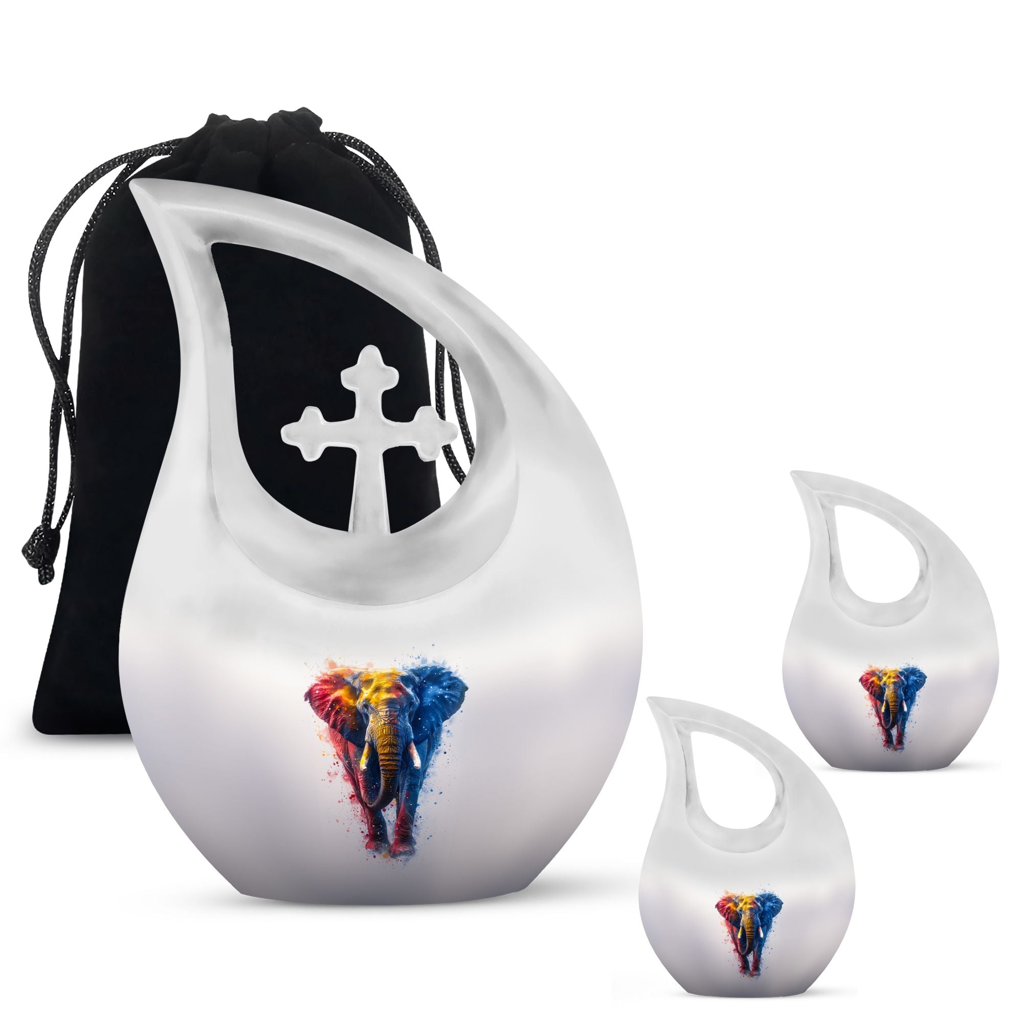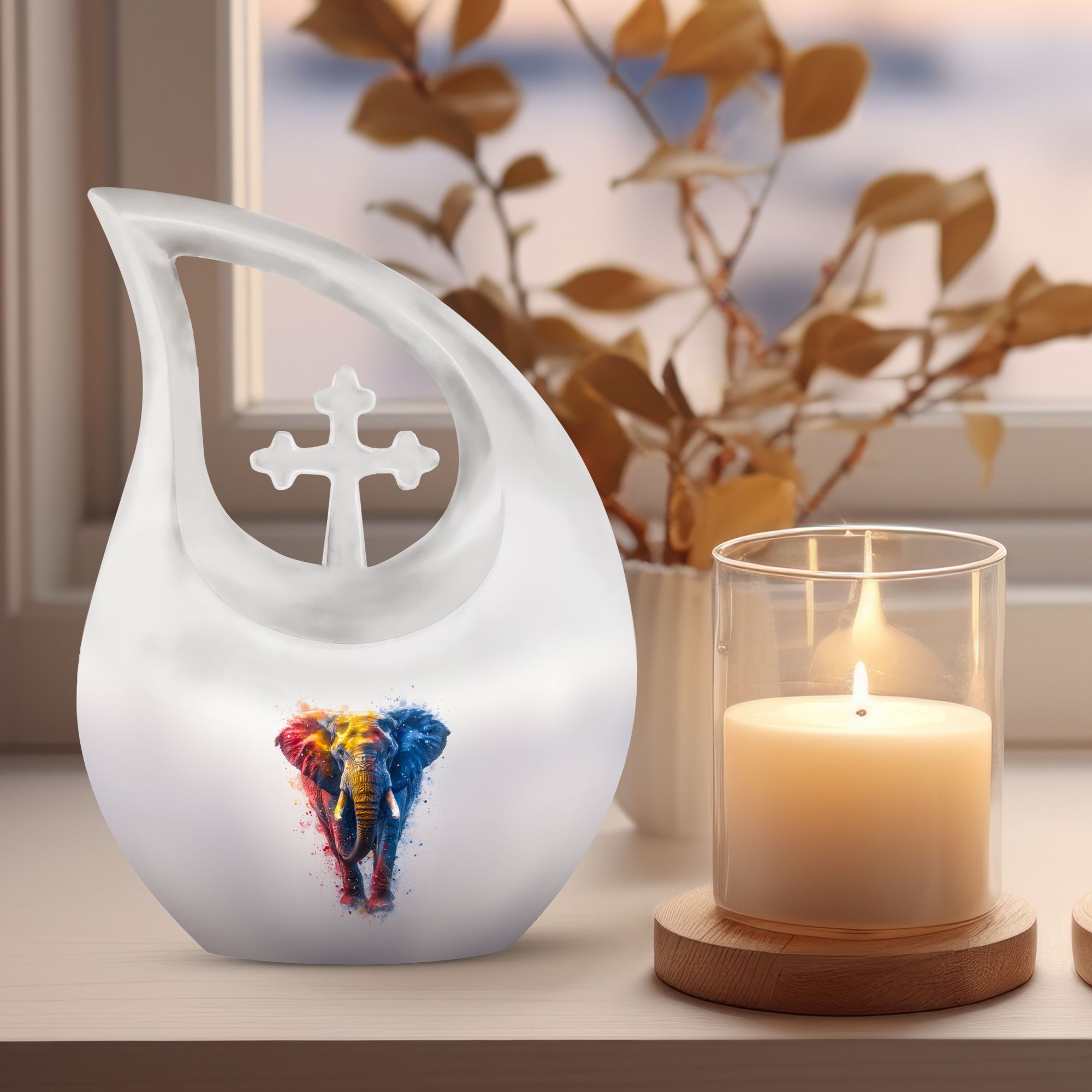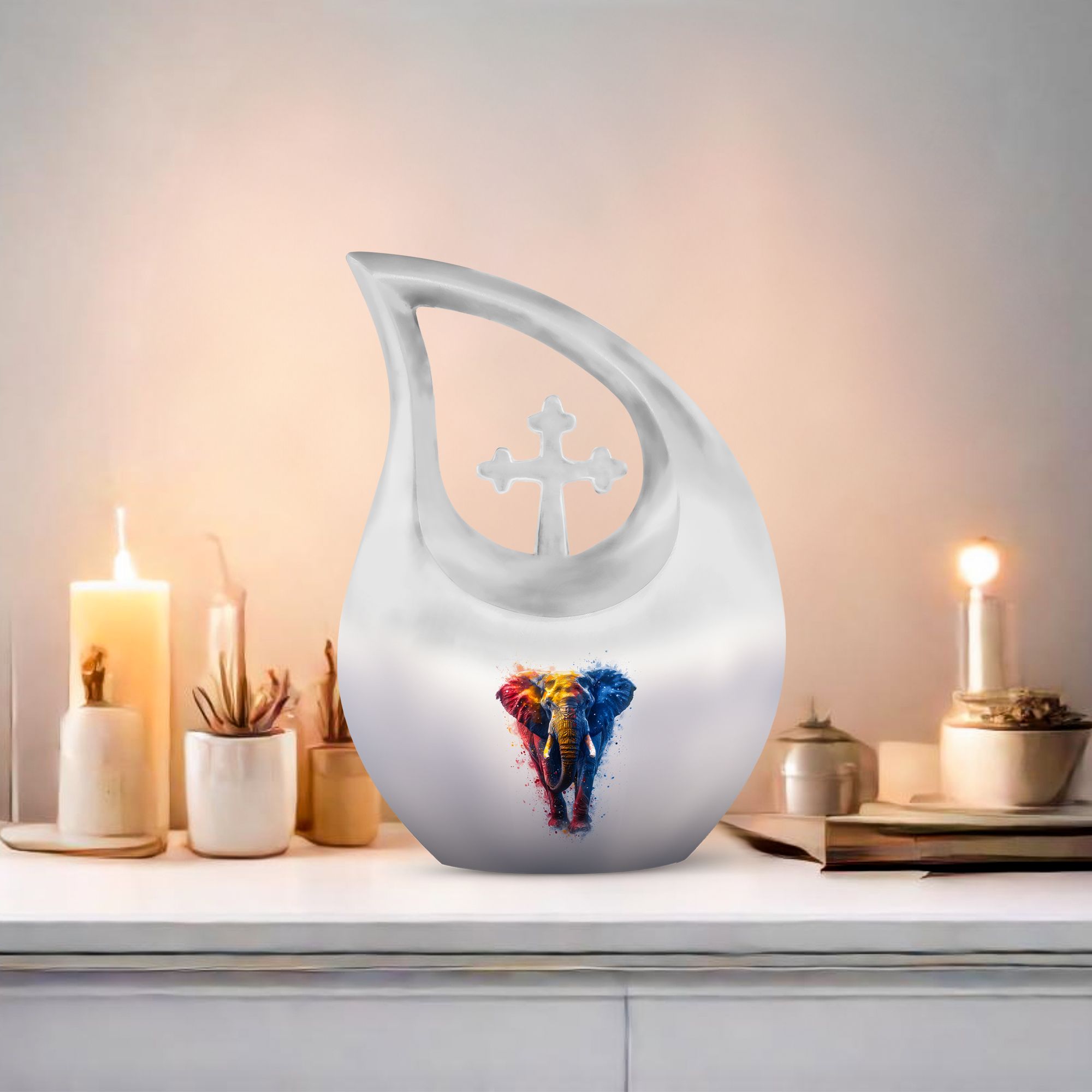 Appealing to the eye and heart, this 10-inch Elephant Themed Urn is an ideal choice for religious and ceremony purposes. Uniquely crafted with an 'Elephant' theme, this large urn is made from high-quality aluminium promising durability and long-lasting use. Weighing at a mere 3.3 pounds, this urn embodies the 'Cross Drop' motif giving it a distinct design and touch. The urn offers an impressive capacity of 200 cubic inches, ensuring sufficient space for containment of ashes. The urn comes with a soft velvet pouch adding an extra layer of protection and respect. It offers scope for personalization where you can engrave the names of your beloved, making it more personal and memorable. This product serves as a perfect symbol of tribute and respect, encapsulating the essence of your love for the departed soul. Perfect for online purchase, this 'Elephant Urn' is a stand-out value proposition in 'Urns Online'. Enhance your memorial experience by choosing our urns, where the combination of class and reverence is unparalleled.