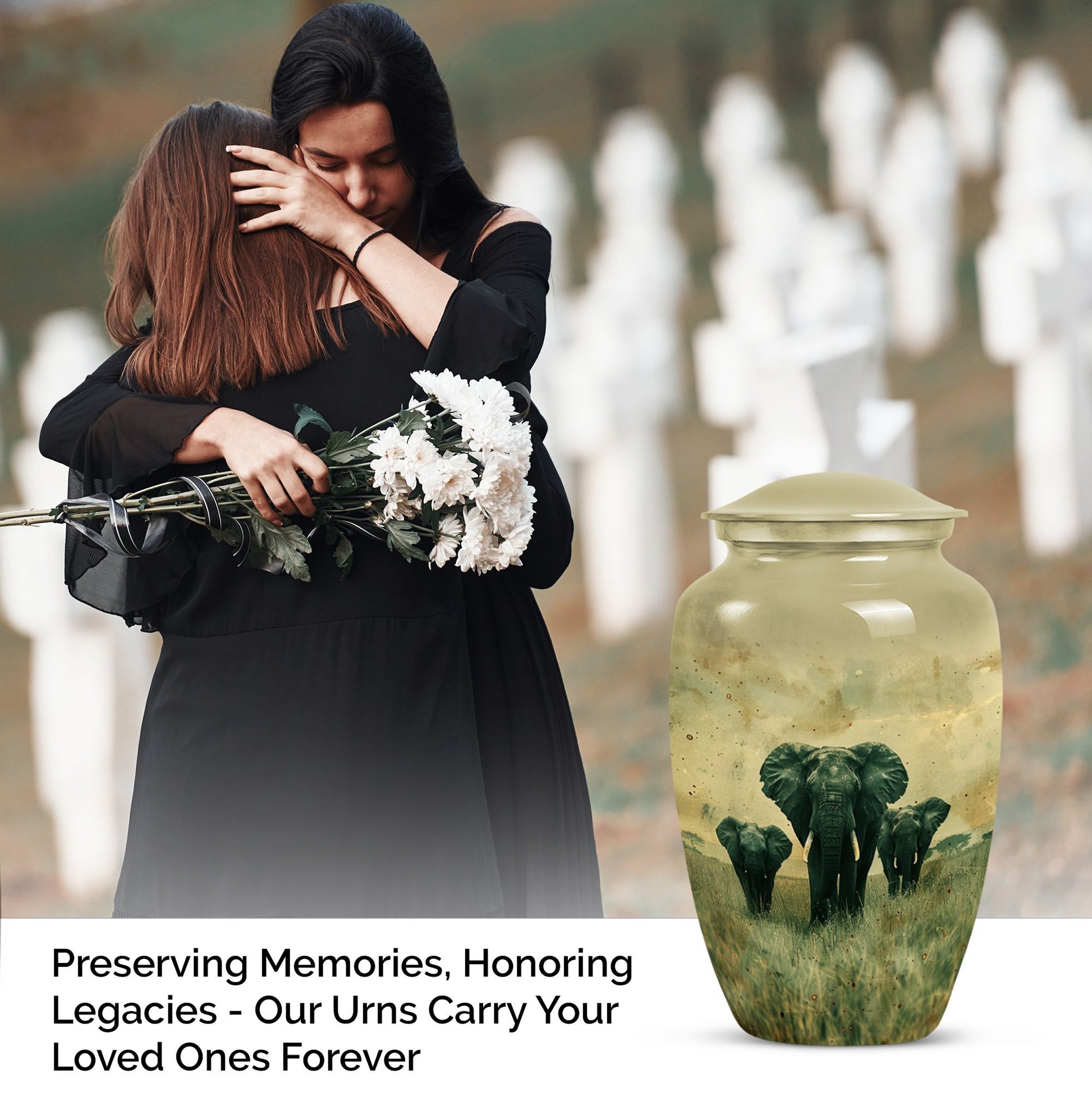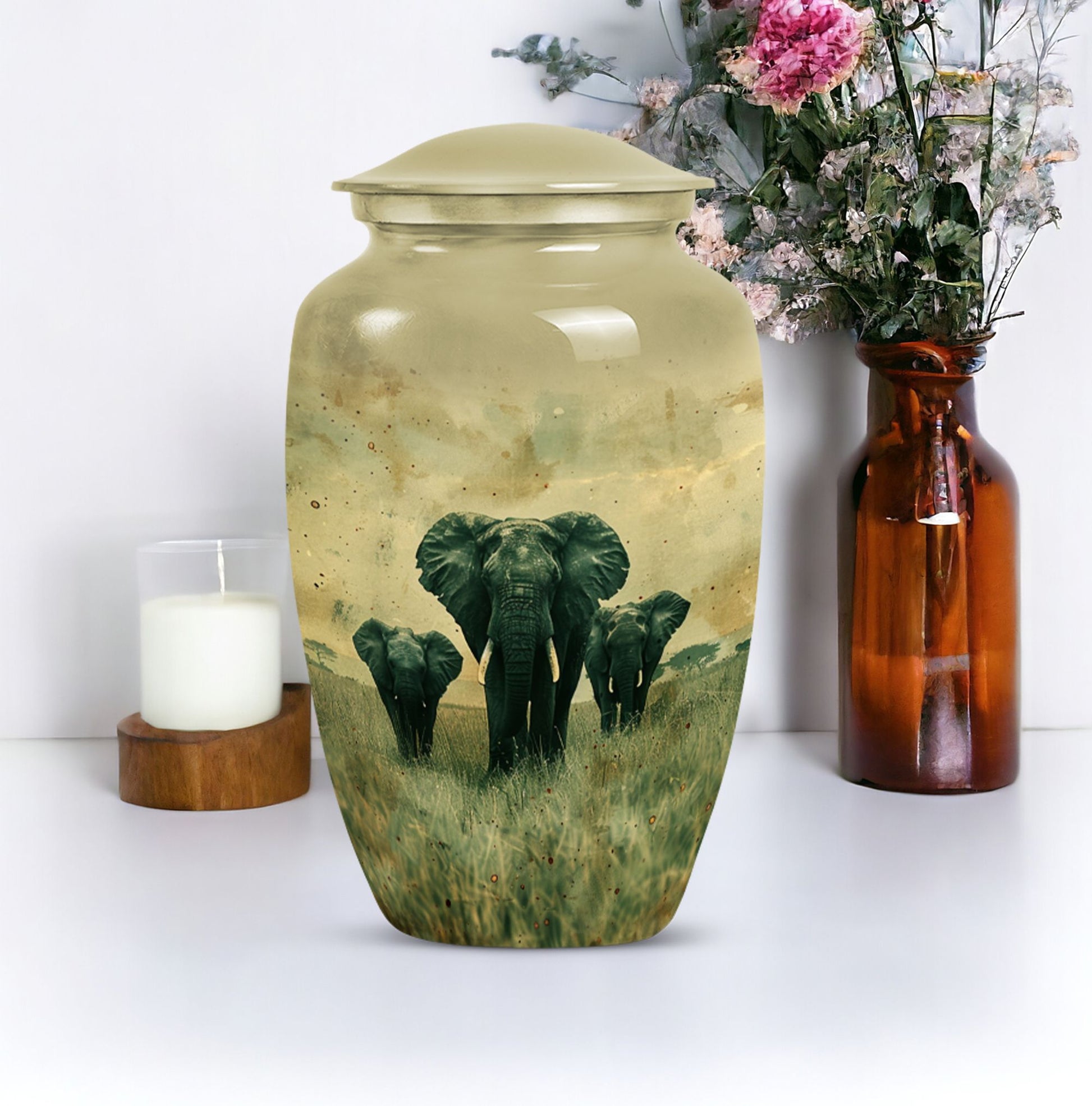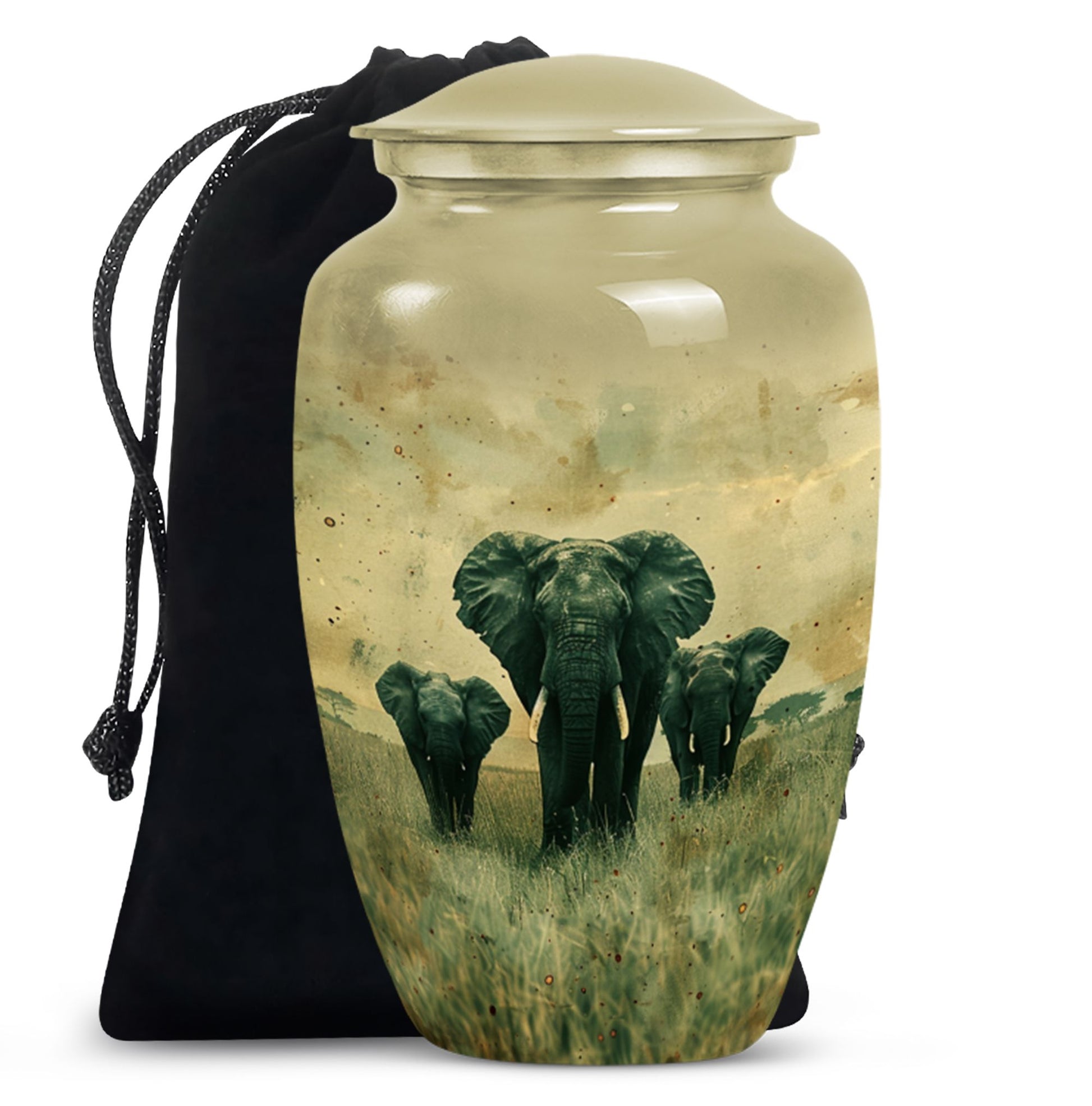 Introducing our beautifully detailed, customisable Elephant Urn - the perfect resting place for your beloveds, designed meticulously for all genders. This sizeable 10-inch cremation urn, weighing a solid 3.3 pounds, is skillfully crafted from sturdy aluminium for lasting durability. The Elephant Urn warmly encapsulates the ashes in a capacity of 200 cubic inches. Pay your respects with the smooth yet rich butterfly theme that adorns the surface. The aluminium urn comes with a velvet pouch for secure containment of ashes. Make the memorial even more special by personalizing it with engraved names, adding a tender touch to your commemoration. This urn is not just for cremation ashes, it can serve as a beautiful decorative urn to keep in your home. Irrespective of whether you're looking for urns for an adult male or a memorable urn for mom, this large urn seamlessly blends function, sentiment, and design.