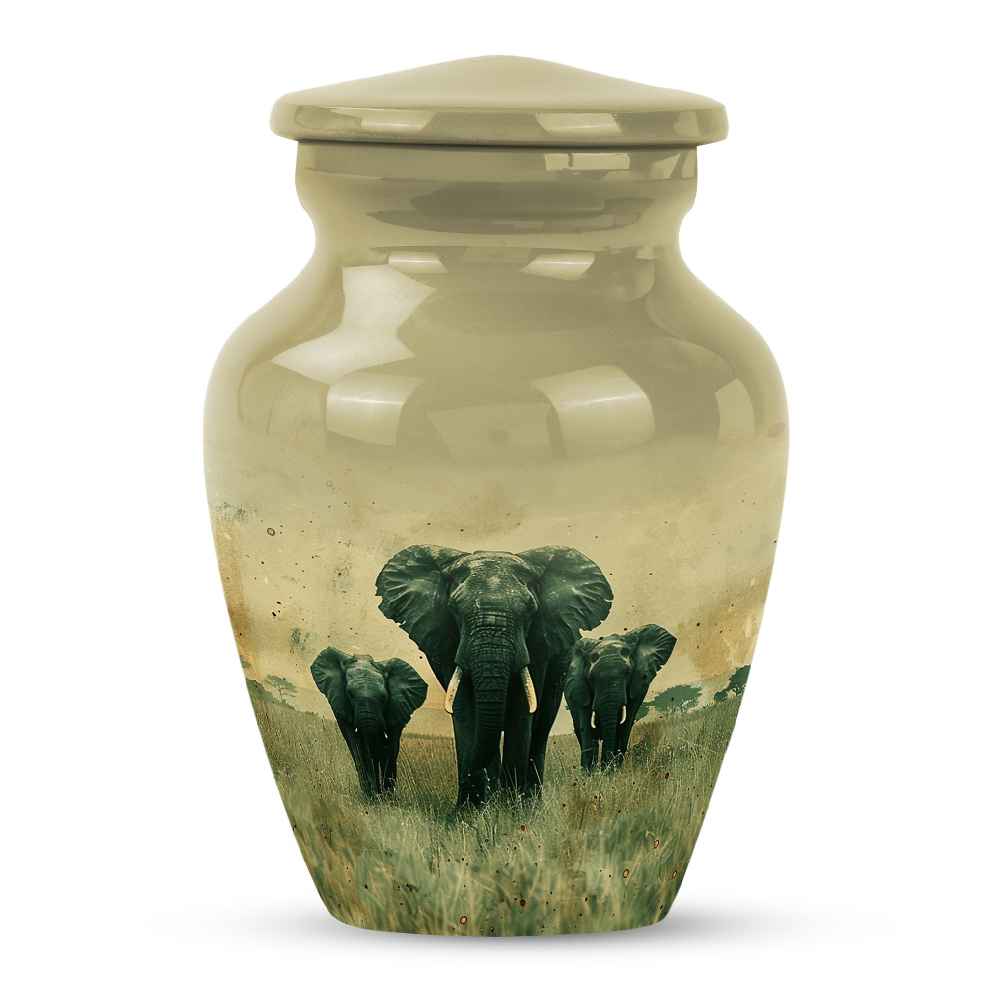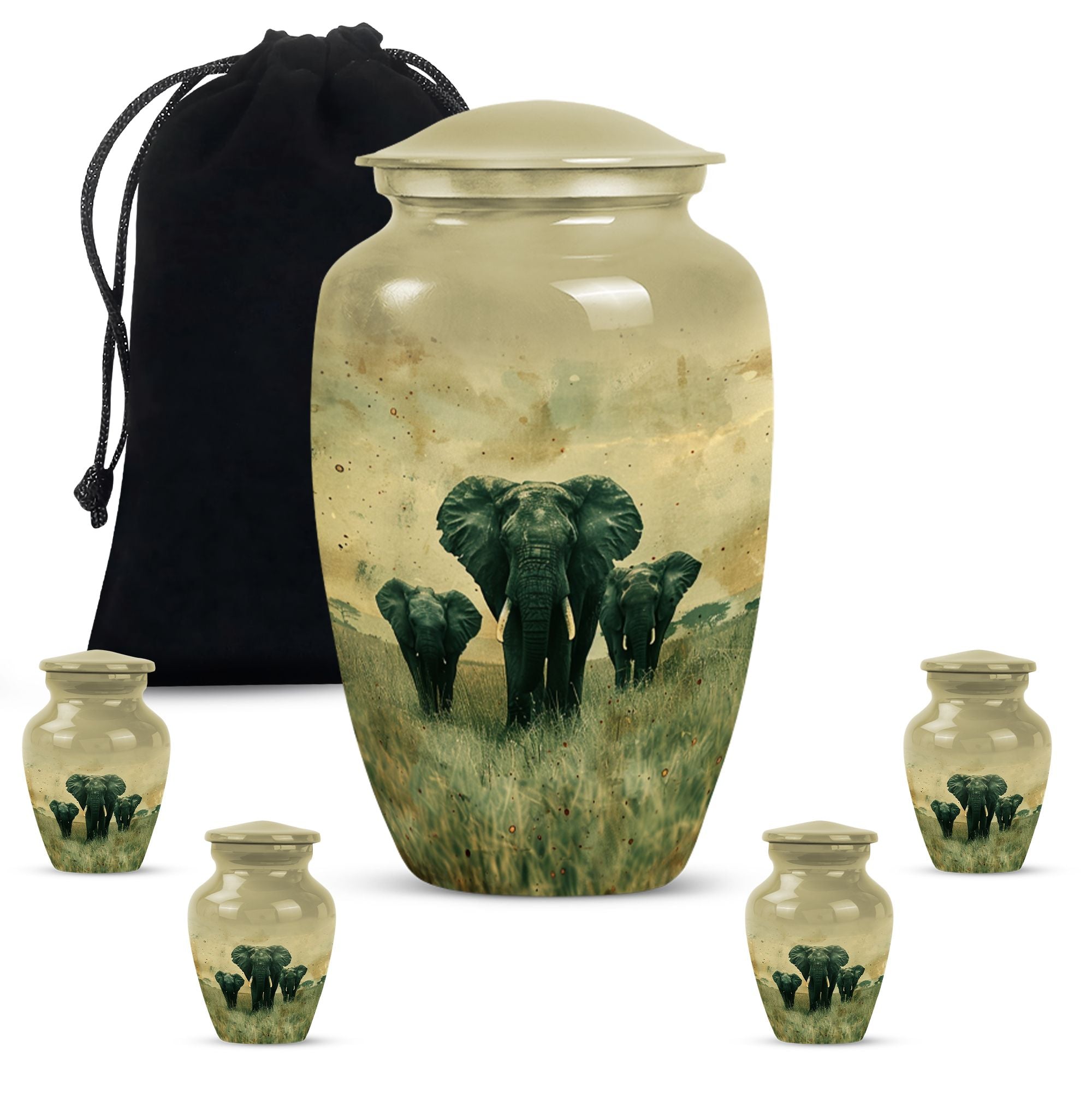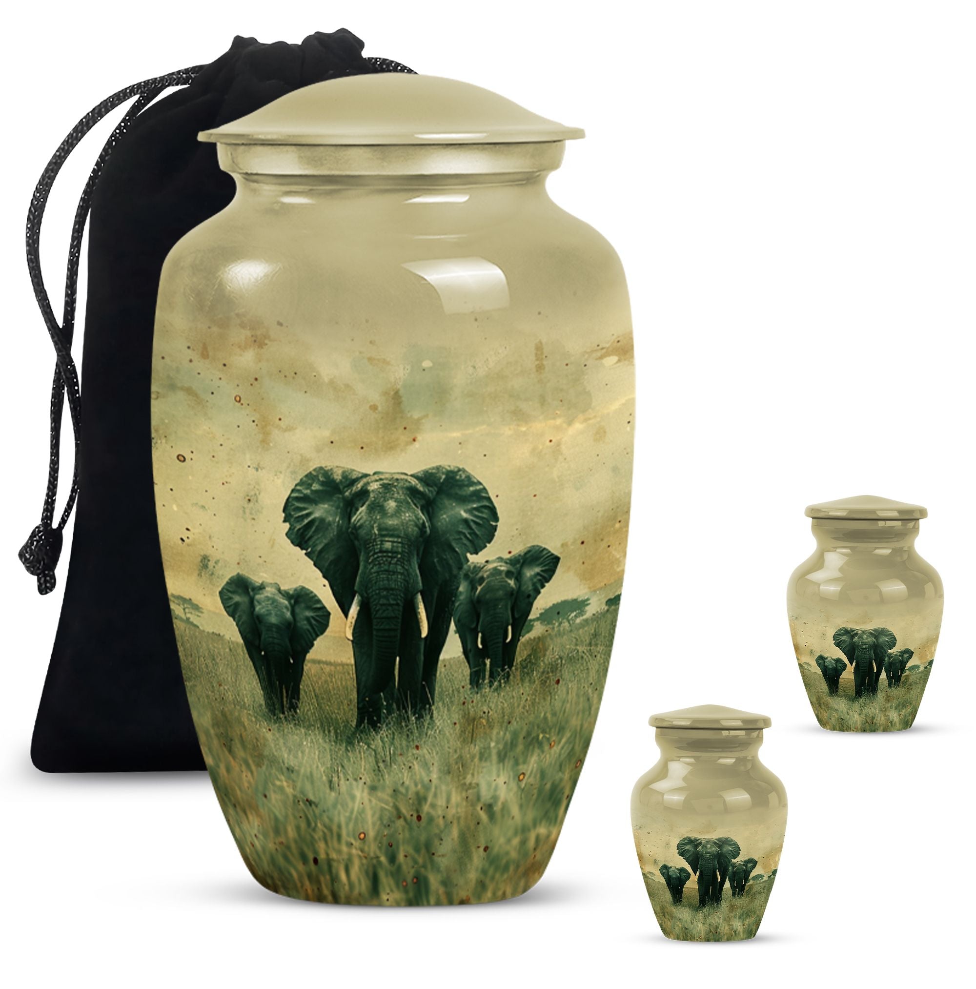 Introducing our beautifully detailed, customisable Elephant Urn - the perfect resting place for your beloveds, designed meticulously for all genders. This sizeable 10-inch cremation urn, weighing a solid 3.3 pounds, is skillfully crafted from sturdy aluminium for lasting durability. The Elephant Urn warmly encapsulates the ashes in a capacity of 200 cubic inches. Pay your respects with the smooth yet rich butterfly theme that adorns the surface. The aluminium urn comes with a velvet pouch for secure containment of ashes. Make the memorial even more special by personalizing it with engraved names, adding a tender touch to your commemoration. This urn is not just for cremation ashes, it can serve as a beautiful decorative urn to keep in your home. Irrespective of whether you're looking for urns for an adult male or a memorable urn for mom, this large urn seamlessly blends function, sentiment, and design.