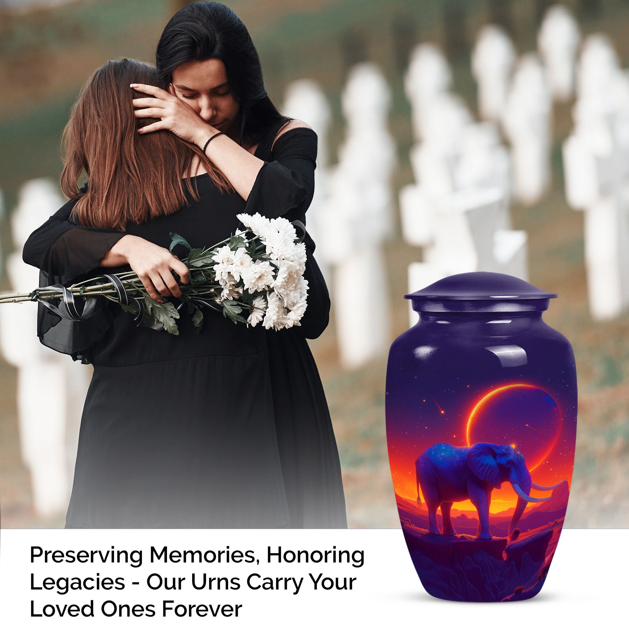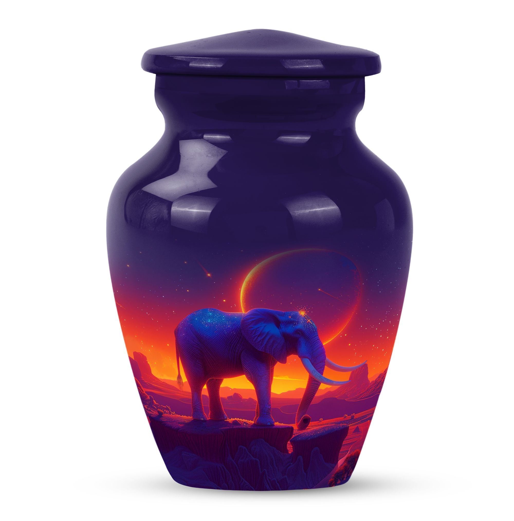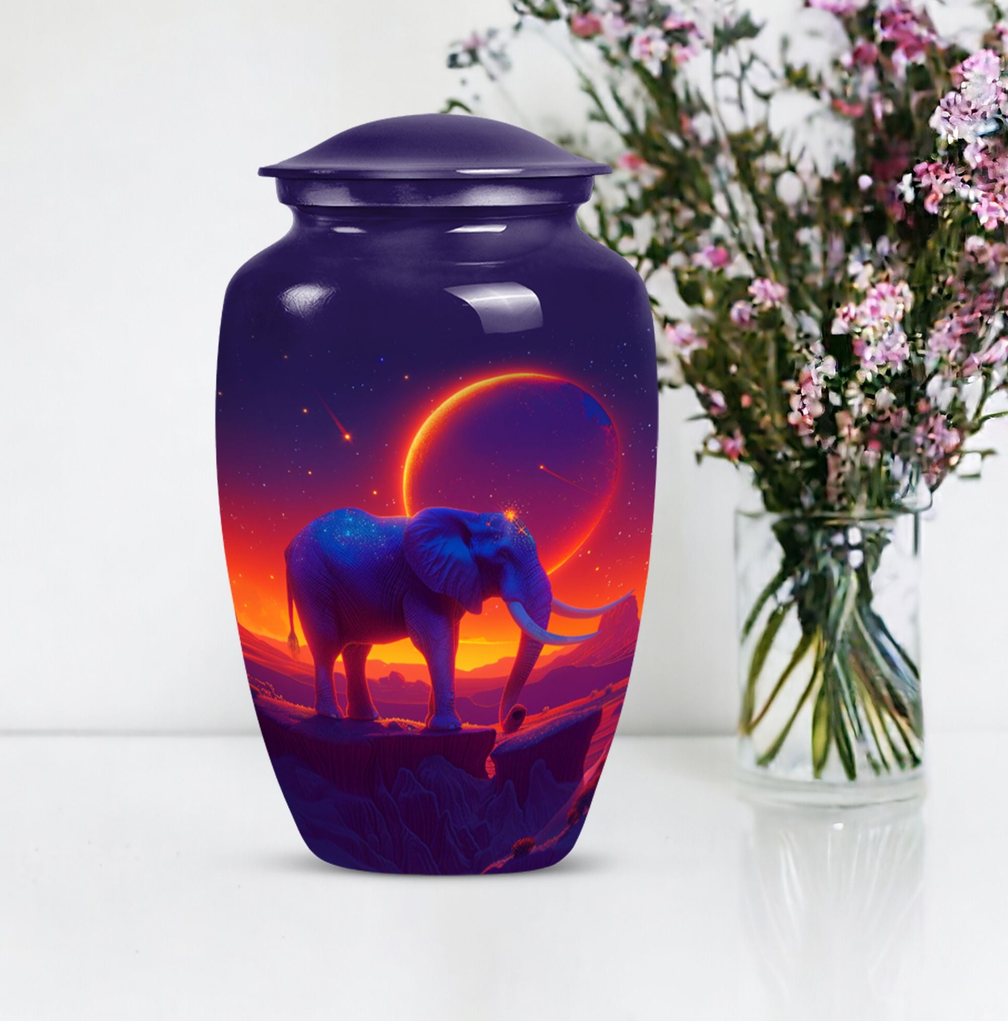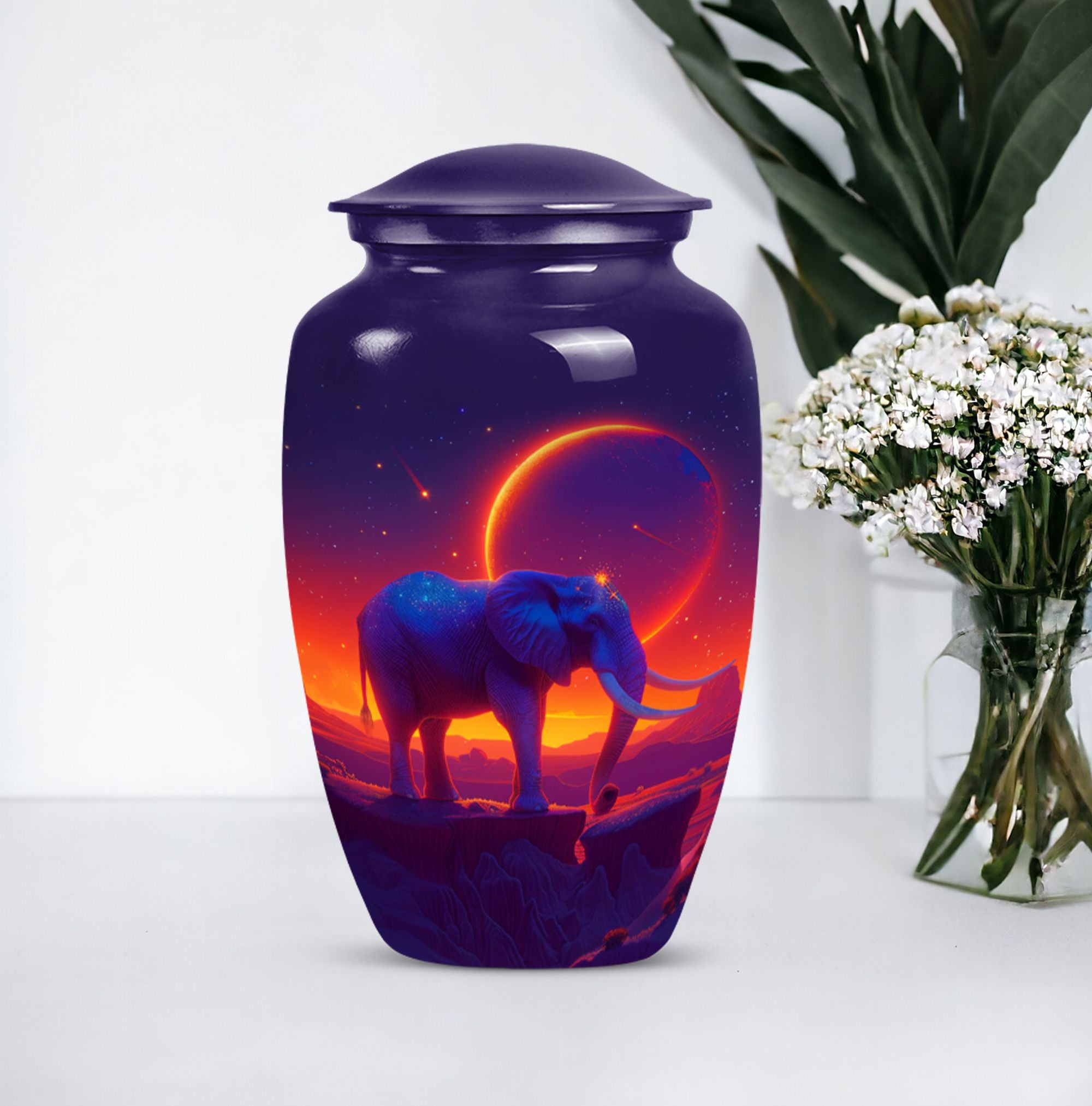 Treasure the memory of lost loved ones with the Classic Elephant Urn - a towering testament of love and respect. Standing tall at 10 inches with a weight of 3.3 pounds, this large memorial urn combines the robust character of high-quality Aluminium with a graceful Butterfly theme elegantly placed on its surface. It offers an ample capacity of 200 cubic inches, ensuring a worthy containment for the ashes of male adults. This significant symbol of remembrance comes with a plush velvet pouch to provide an extra layer of protection. Offer your respect and devotion with a personalized touch by engraving names onto the urn. Varied in its appeal, it makes for a perfect memorial element not only for male adults but can also be used as a female urn. Large in stature, it could be shared as a companion urn for two adults as well. The Classic Elephant Urn is a beautiful synergy of strength and delicacy - a true homage to those loved and missed.