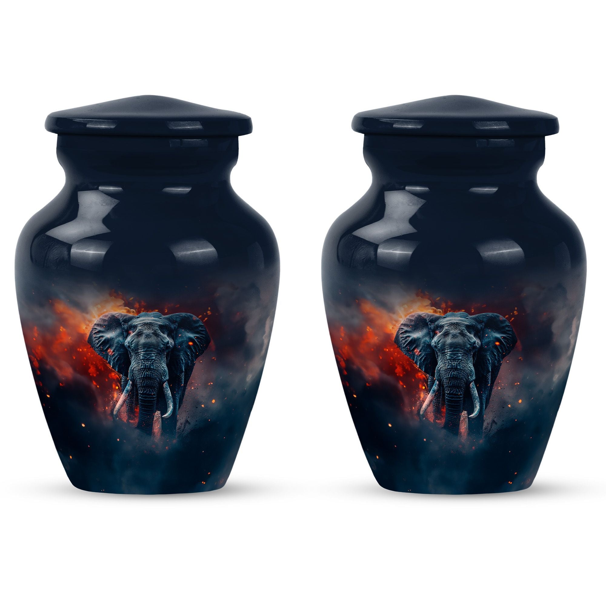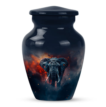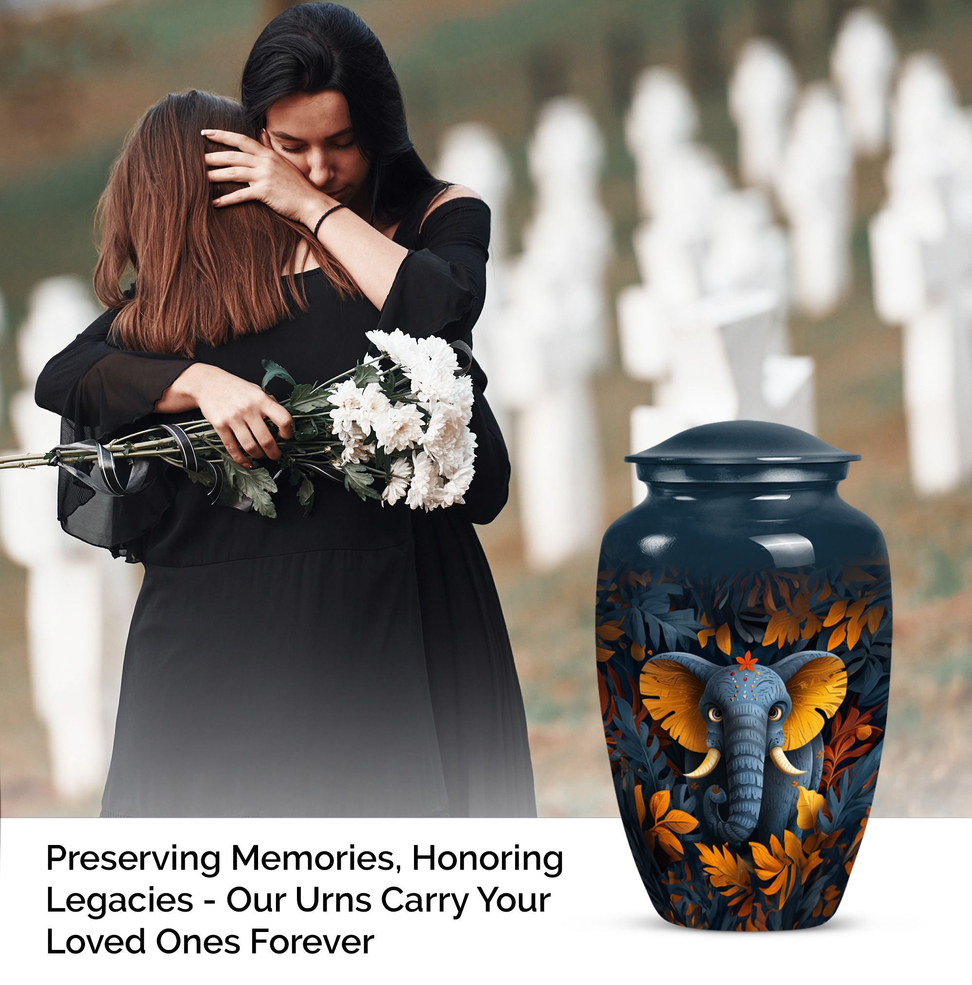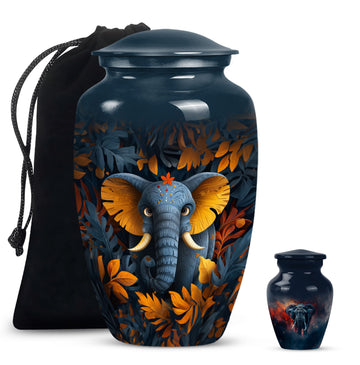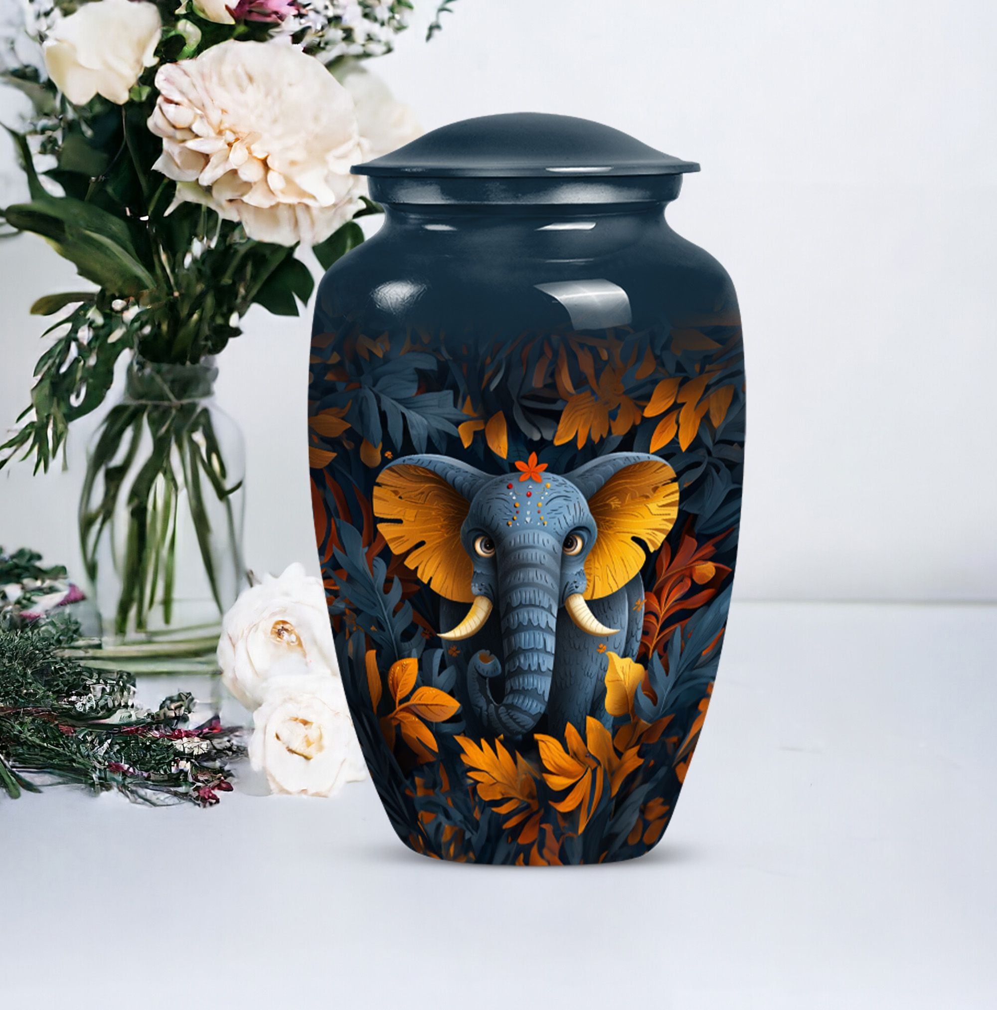 Discover a gracefully designed elephant cremation urn, an eloquent celebration of your loved one's memory. This aluminum large urn, weighing just 3.3 pounds and standing at 10 inches, exudes a striking beauty that resonates with the heart. The theme of this urn is a delicate butterfly, which gently reminds us about the fleeting transience of life. Crafted to hold up to 200 cubic inches of ashes, its generous capacity makes it an appropriate choice for an adult male. Elevate the personal meaning of this cremation urn by customizing it with engraved names, creating a touching tribute to your loved one. Each urn is accompanied by a velvet pouch, facilitating secure containment of ashes. This urn effortlessly blends functionality with aesthetic charm, making it not just a cremation urn but a symbolic piece that holds your cherished memories. Popular among those searching for burial urns for both men and women ashes, funeral metal urn, and urn for burial in ground, this large urn for adults offers versatility. Our 'Classic' urn presents a timeless way to honor your loved one's life's journey.