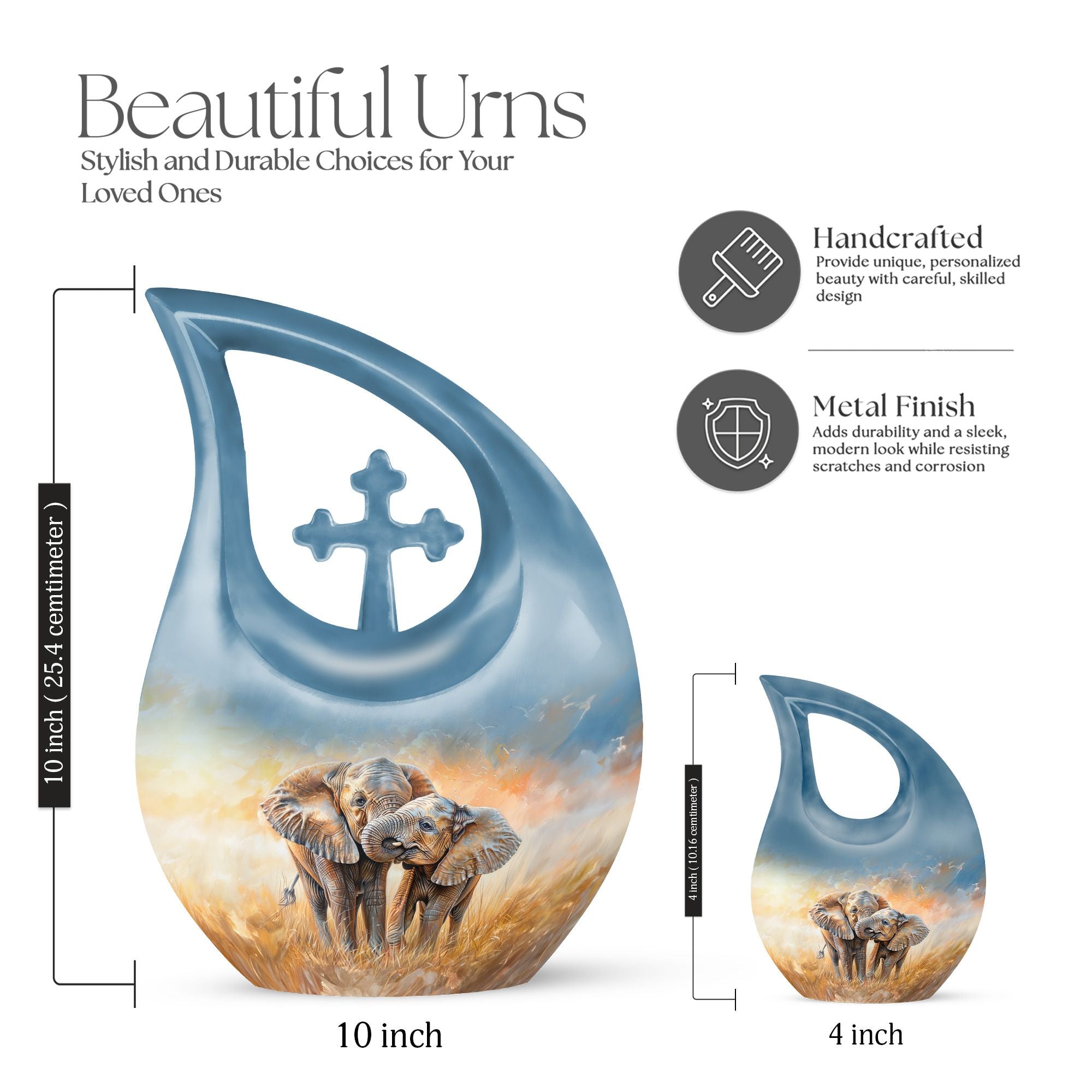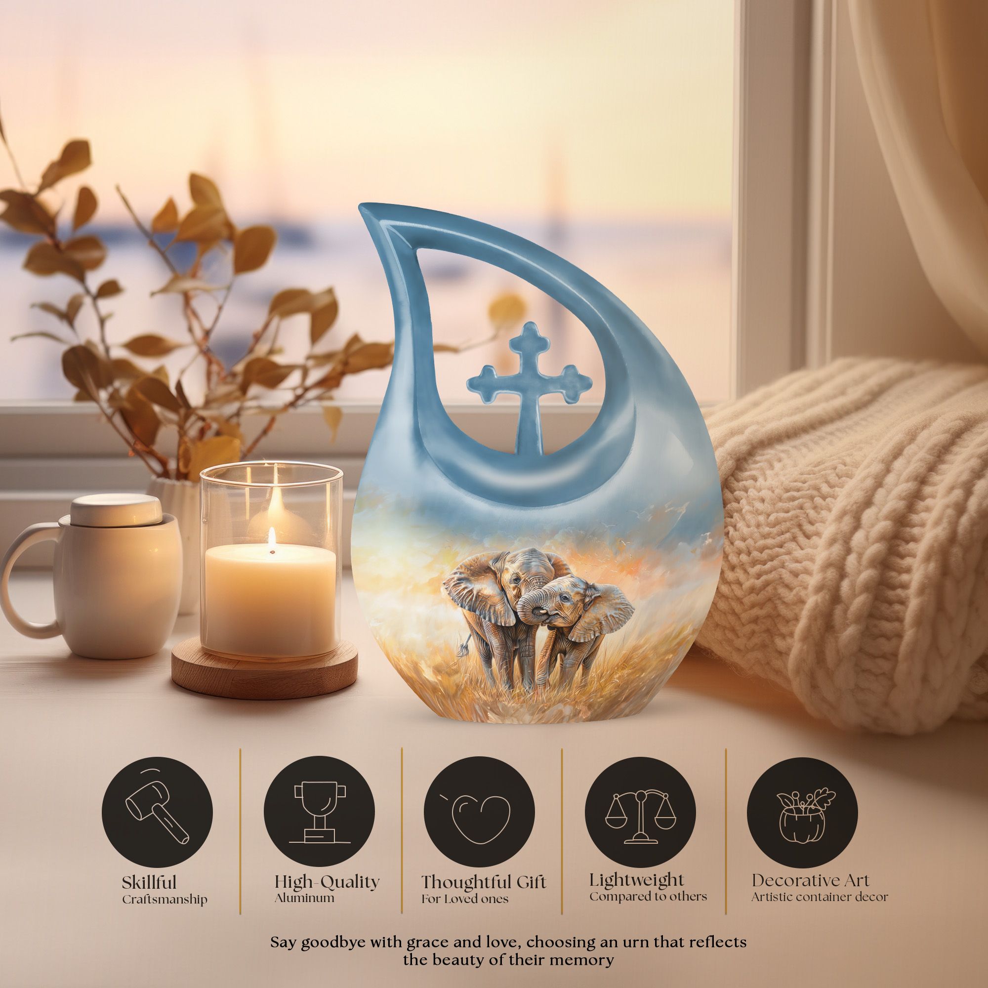 Crafted with care, this personalized cremation urn features a meaningful elephant family motif symbolizing unity, protection, and everlasting connection. Its durable aluminium construction ensures long-term security and makes it ideal for an urn for burial in ground, burial urns for ground settings, and cremation urns for burial. The ample interior and sturdy build offer reliable support for burial urns for ashes, burial urn for ashes needs, and urns for ground burial. This elegant design also serves beautifully as burial urns for human ashes or other urns for burial, blending functionality with heartfelt symbolism.