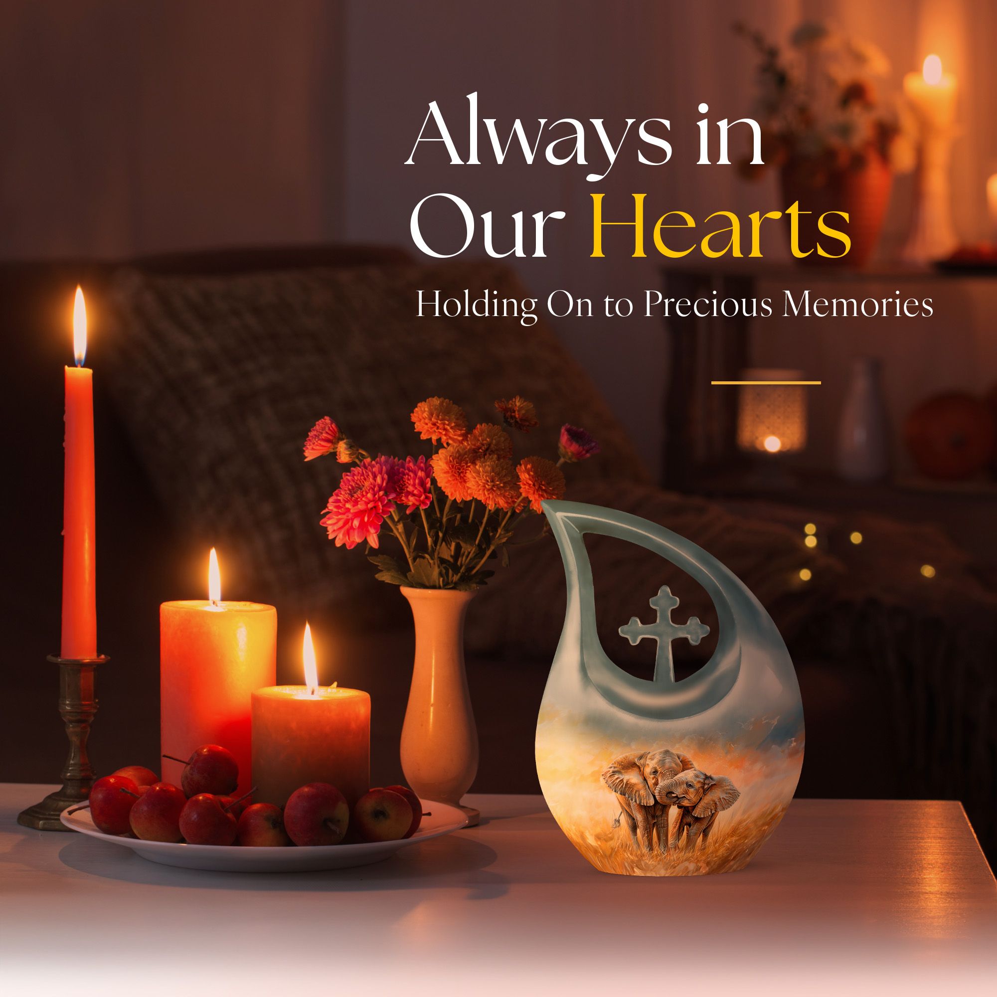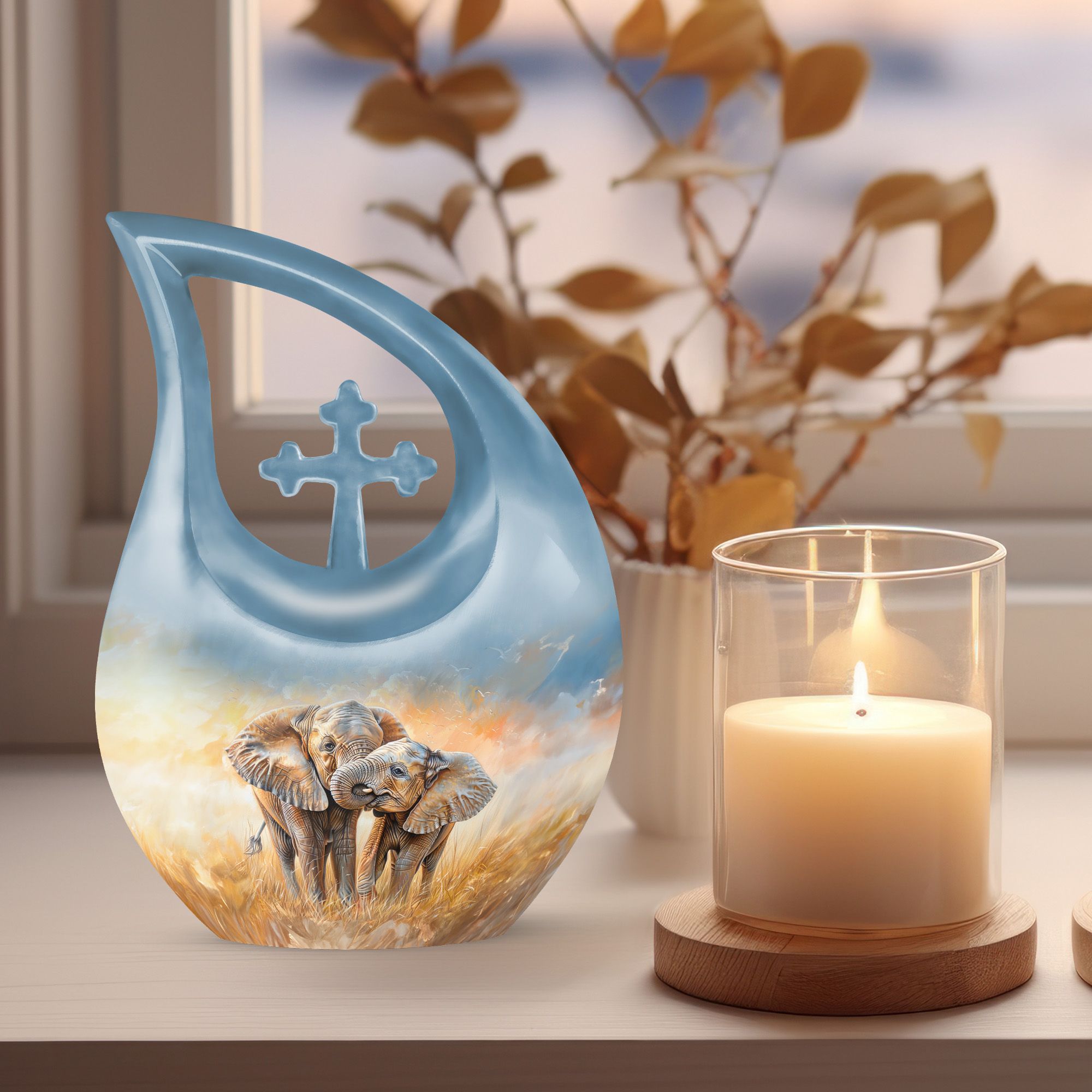 This Elephant Family Burial Urn provides a heartfelt and dignified way to honor a loved one, offering comfort for families seeking unique urns for human ashes or unique urns for ashes with symbolic meaning. Thoughtfully designed, it creates a serene resting place for those wishing for a burial-ready memorial.