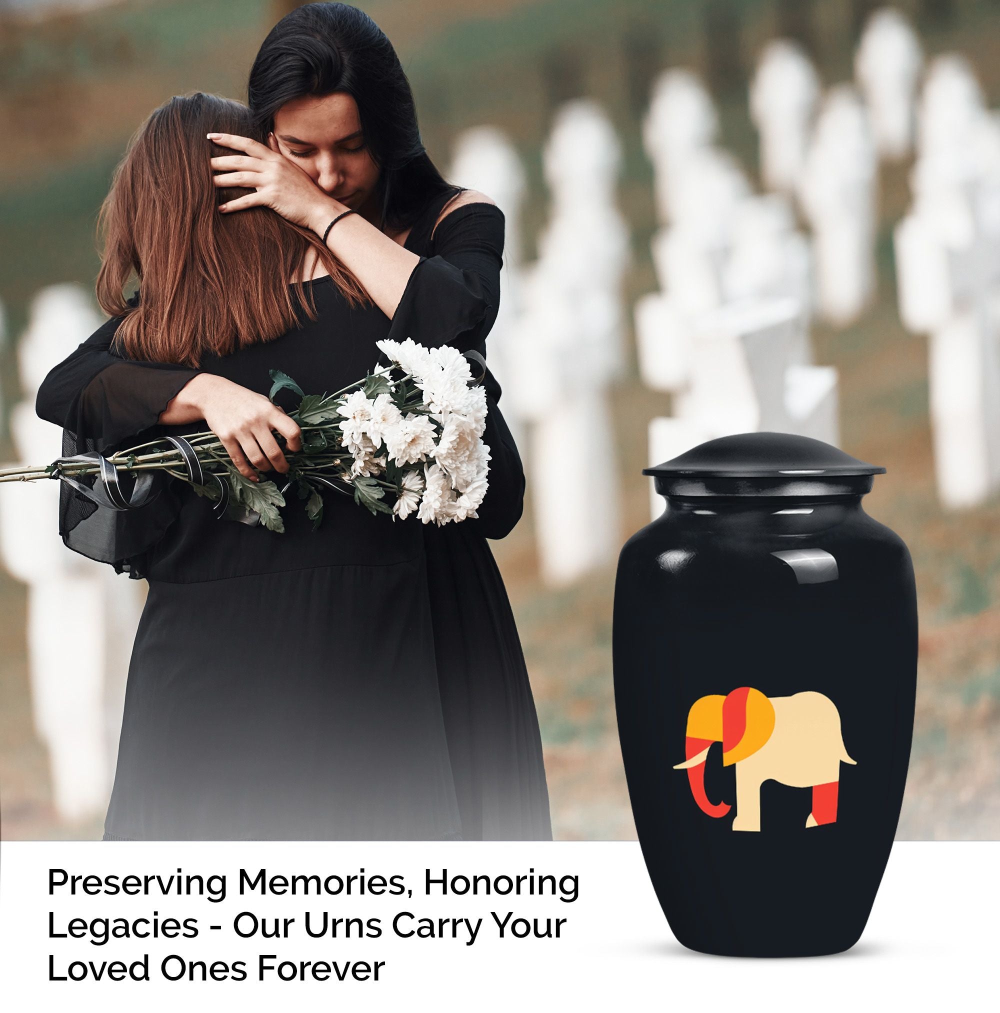 Embrace the divine reminder of your loved one with our large, aluminium 'Elephant Urn.' This ceremonial masterpiece, graced with an enchanting Butterfly theme, serves as an ideal memorial urn for Male adults and is equally cherished as one among the beloved female urns. With the capacity to hold up to 200 cubic inches, this 10-inch urn is as stately as it is intimate. It weighs a solid 3.3 pounds, cementing its stature as a large metal urn for ashes. Delve deeper into the personal connection as you customize the tribute with engraved names. Upon purchase, you also receive a velvet pouch to contain the ashes. This timeless 'Classic Urn,' is more than just a cremation urn, it is an emblem of enduring love, Ushering tranquility during somber occasions. The product lends itself well to companion urns for two adults, further signifying eternal togetherness. Own this homage artifact and embody the gentle reminiscence of your dear one.