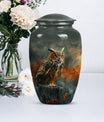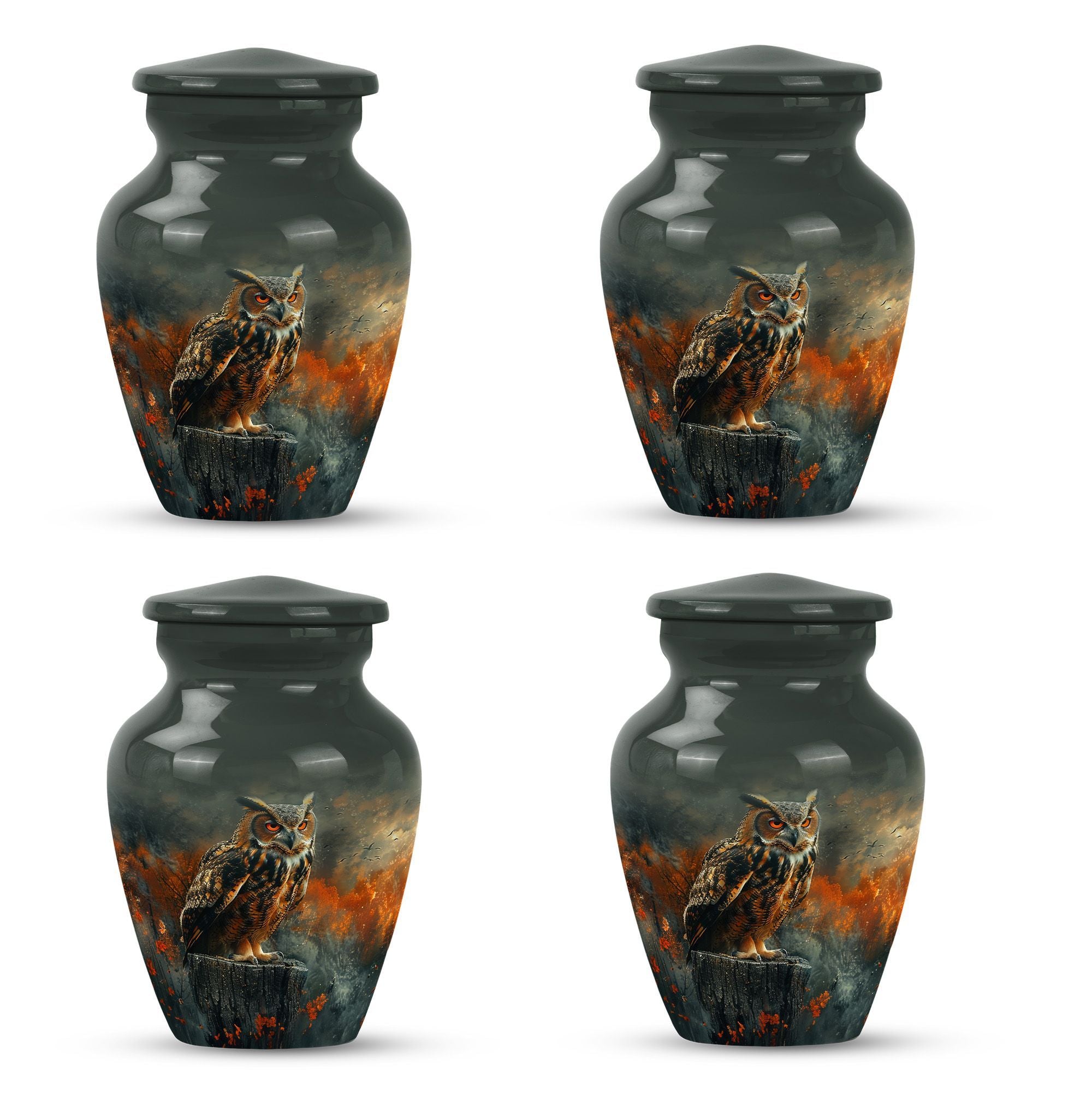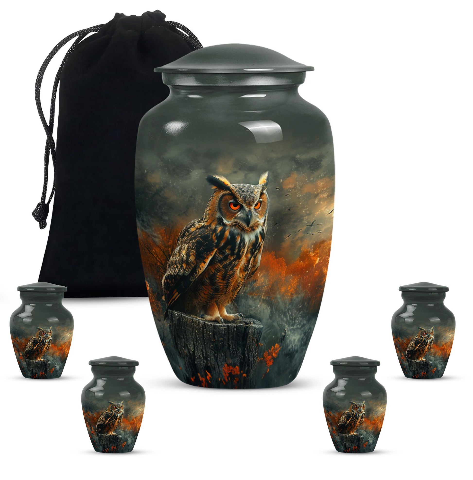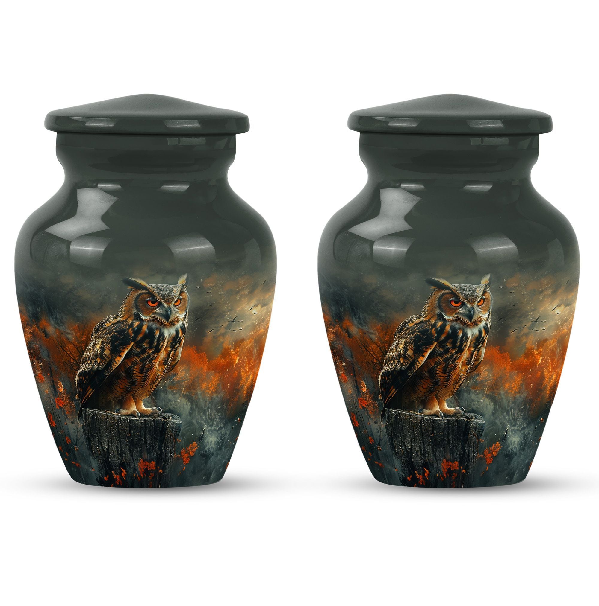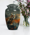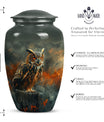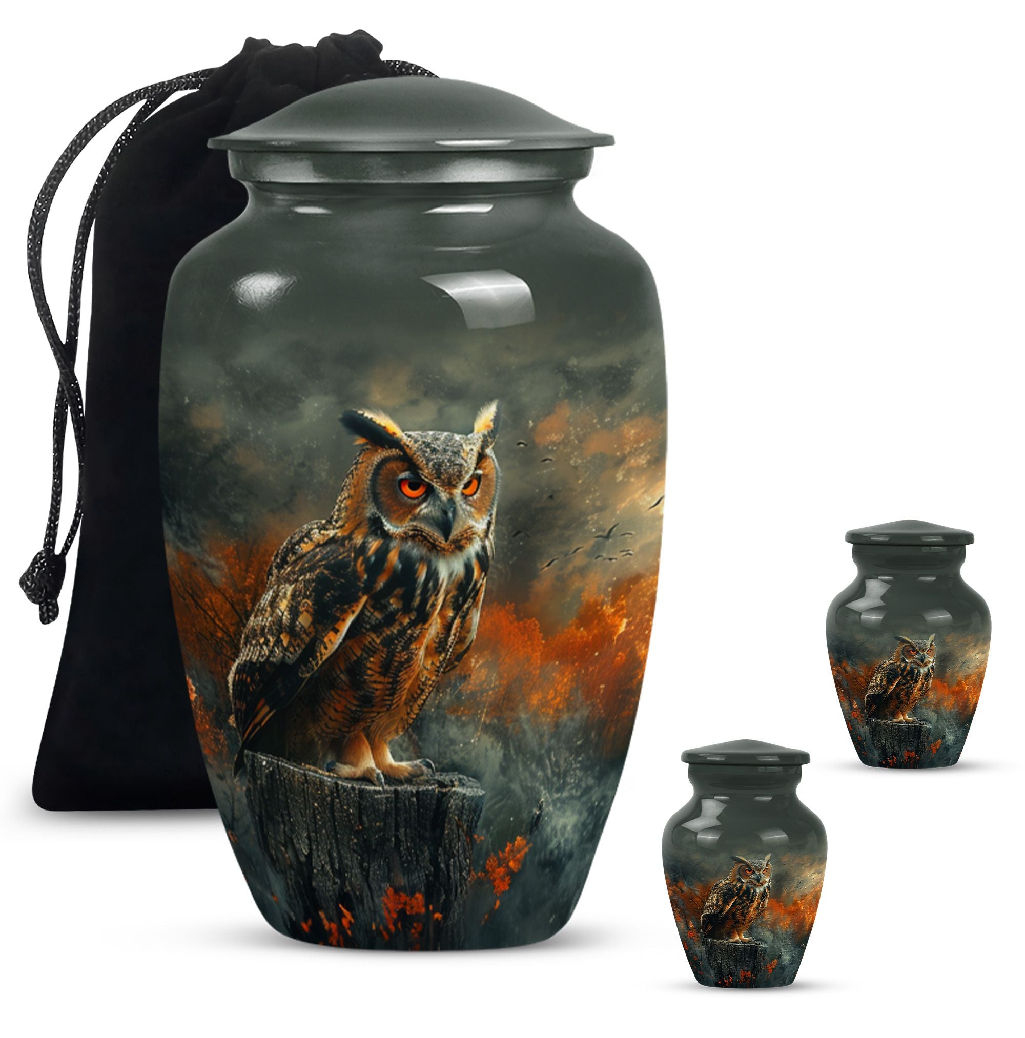 Cherish the memory of your loved ones with our elegantly crafted classic owl urn, designed with a blend of tradition and an abstract theme that carries timeless appeal. With a substantial size, measuring at 10 inches in height and a capacity to hold 200 cubic inches, this substantial urn is made to honor adult or seniors ashes. This funeral urn for men ashes is cast from solid, robust aluminium, weighing 3.3 pounds, making it last for generations to come. This large urn includes a velvet pouch for secure containment of the ashes, adding to your convenience and peace of mind. For a unique personal touch, you can personalize the urn with engraved names. Offering a perfect blend of aesthetics and practicality, this premium memorial urn is ideal for those seeking owl urns or adult urns for ashes. Shop now and experience a comforting presence in your space as you remember your loved ones.