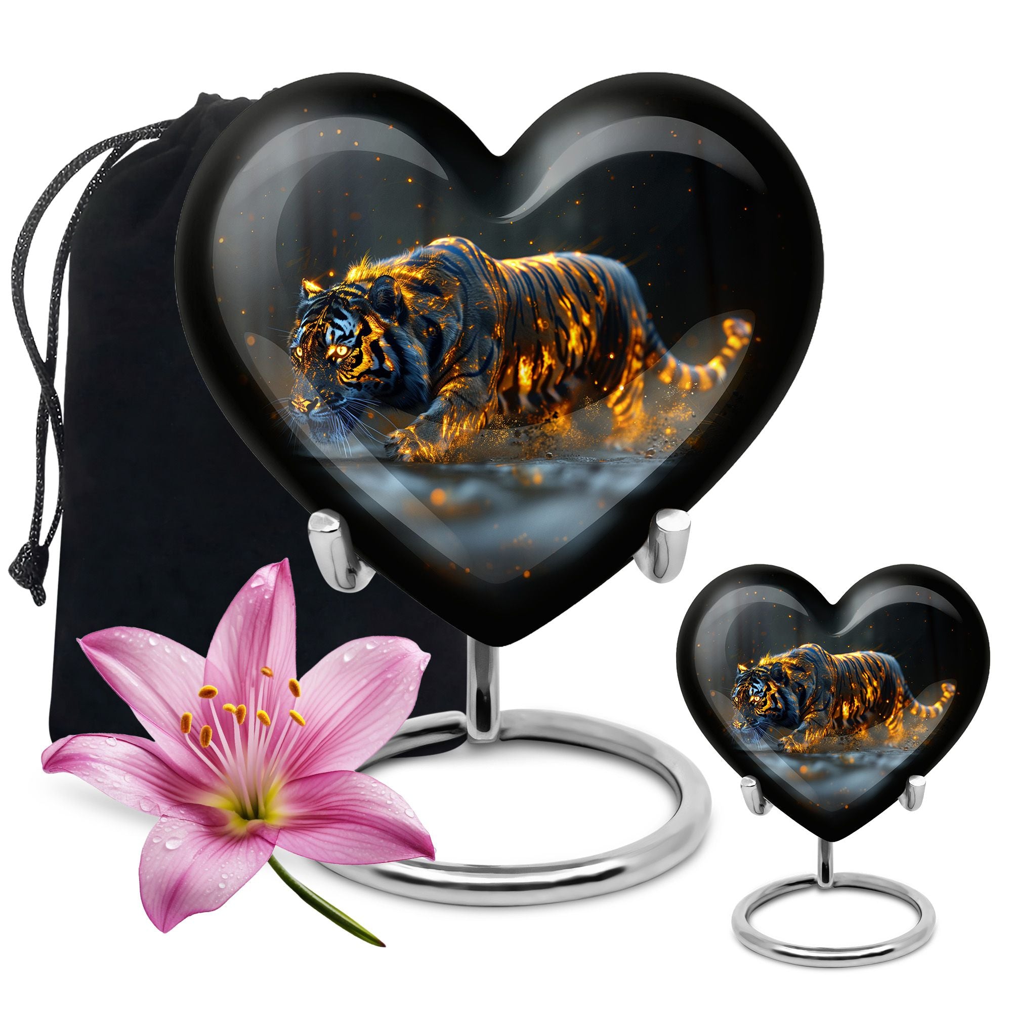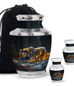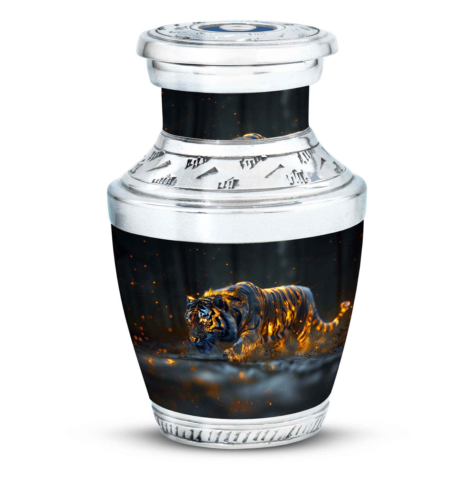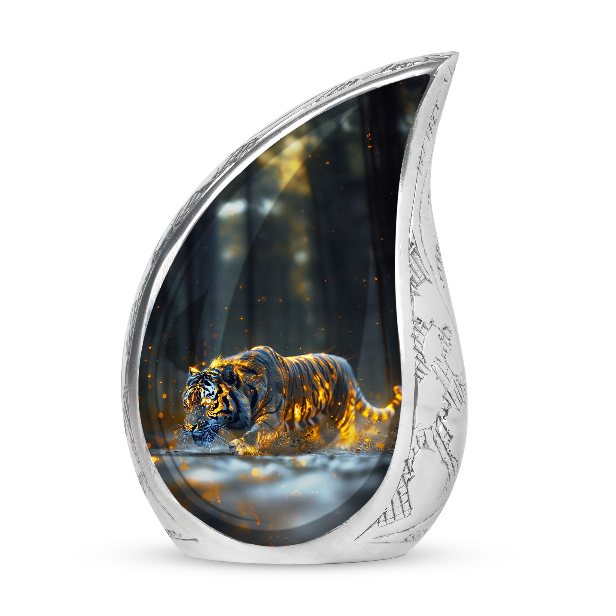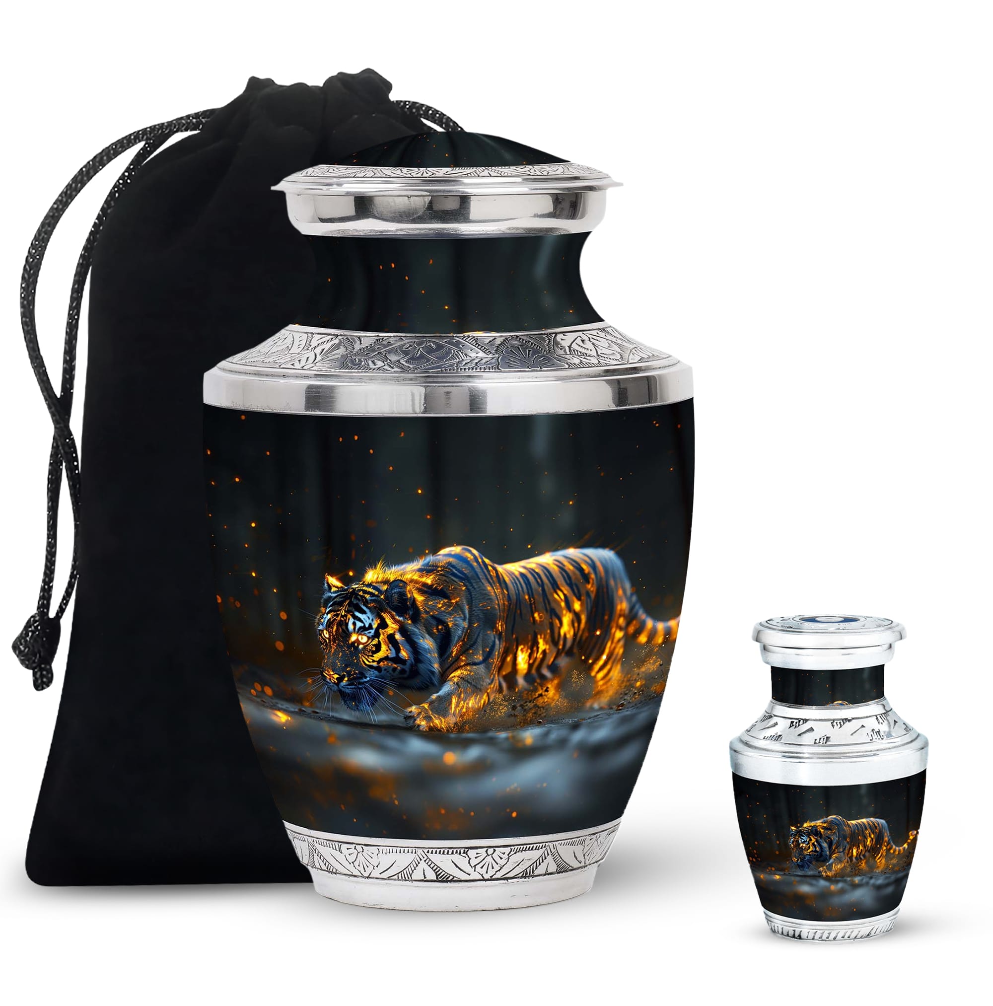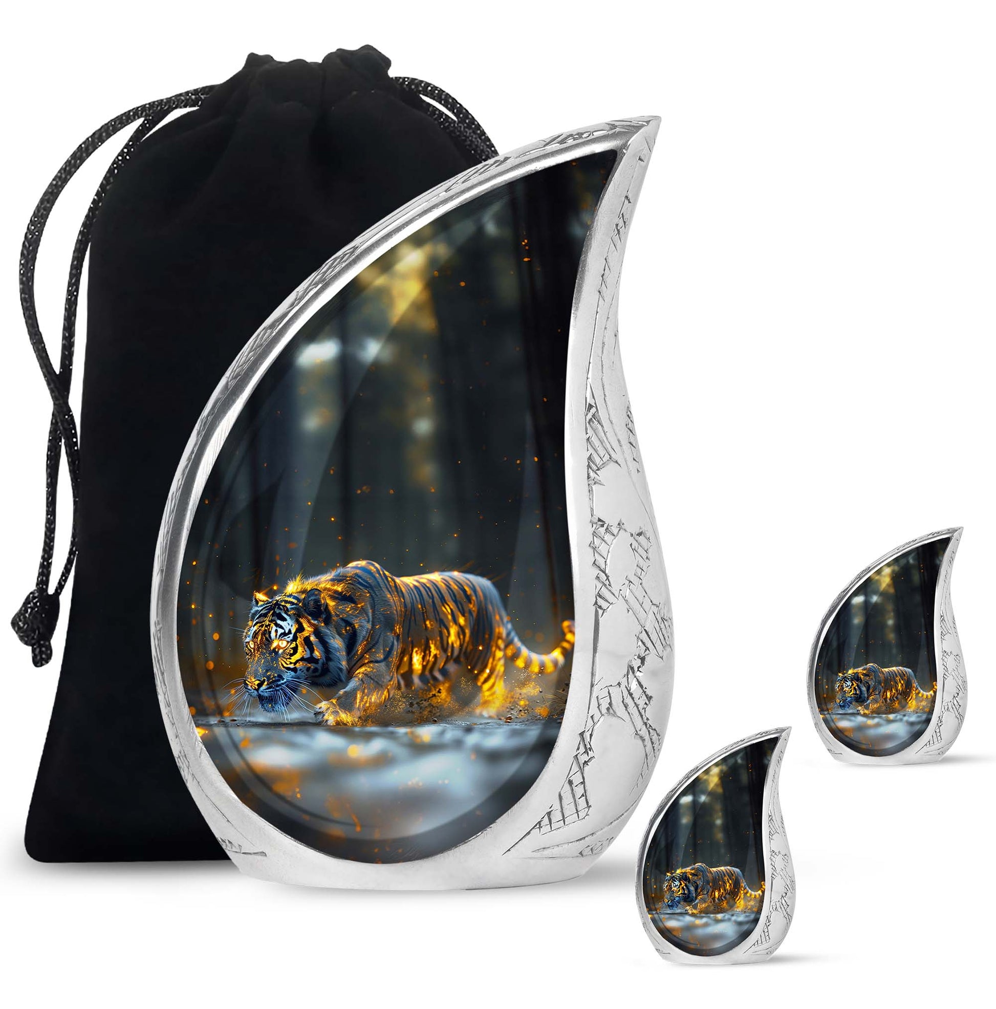 Expertly handcrafted, this elegant urn showcases a deep black finish accented with subtle tiger-inspired detailing—an expression of inner power and peace. The high-quality aluminum construction ensures durability and long-lasting beauty, while the smooth surface and reflective finish enhance its visual appeal. Whether chosen as urns for human ashes adult male dad, urns for adult female mom, or cremation urns for human ashes adult female, it beautifully combines craftsmanship with compassion, making it a timeless keepsake.