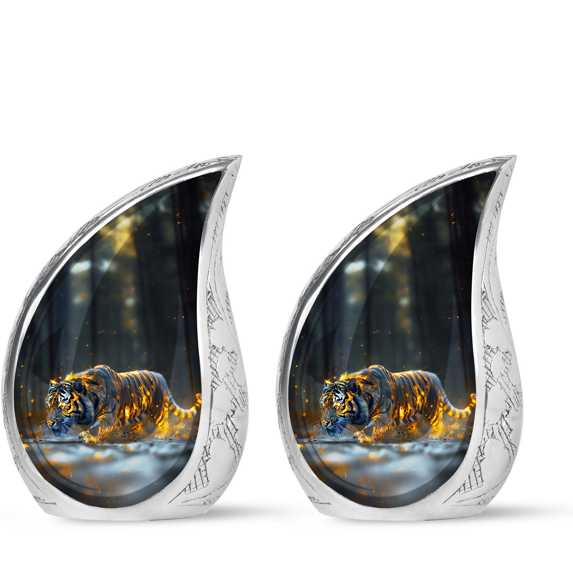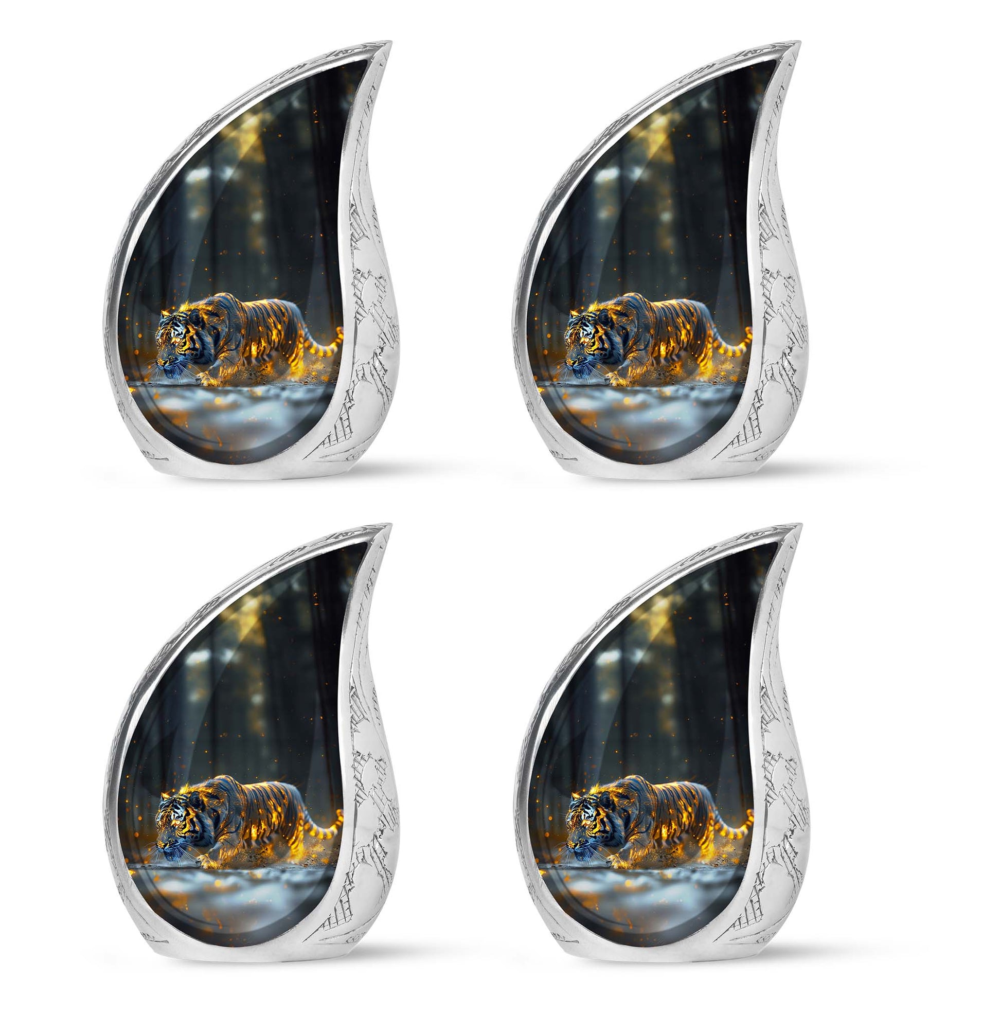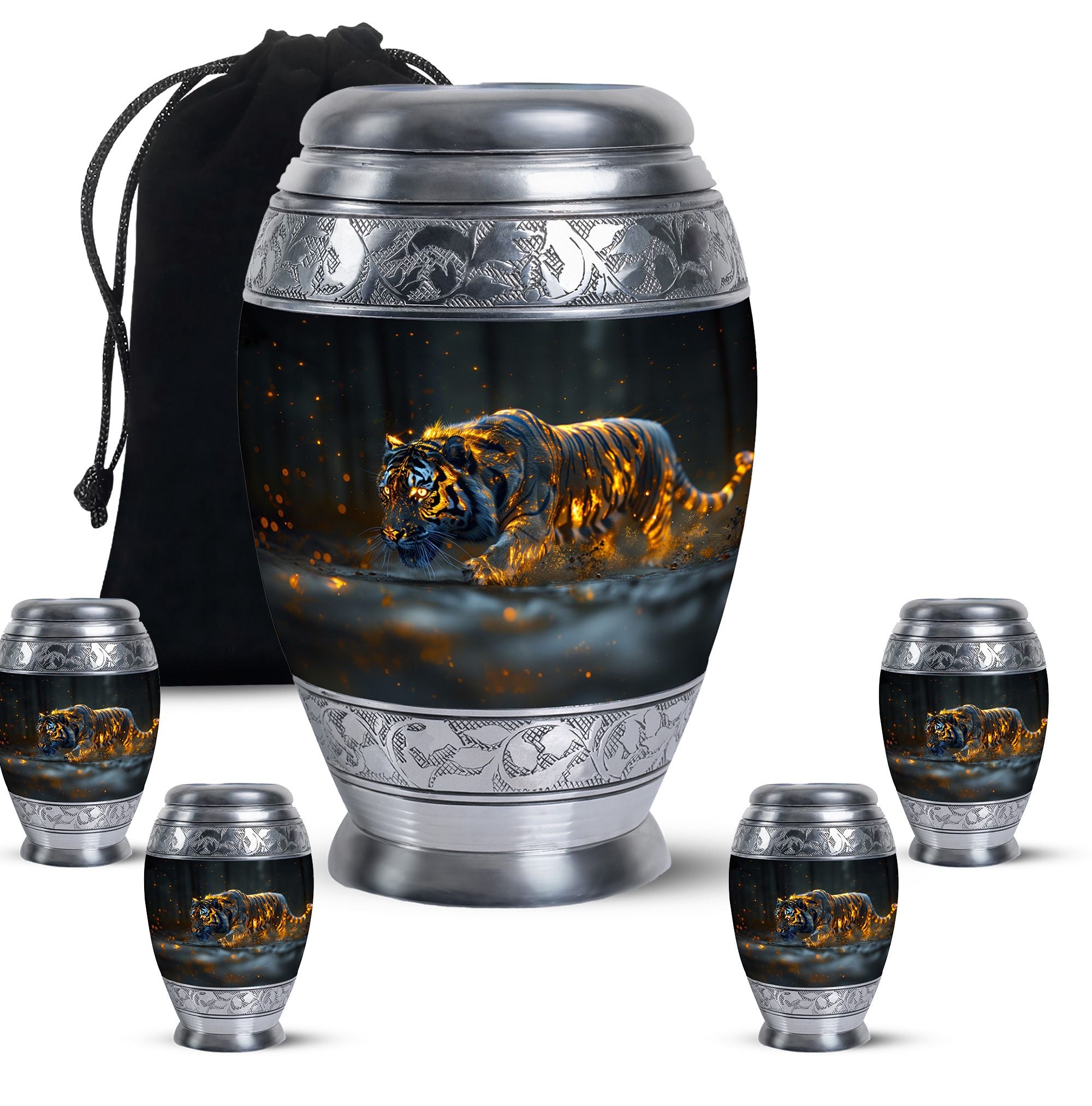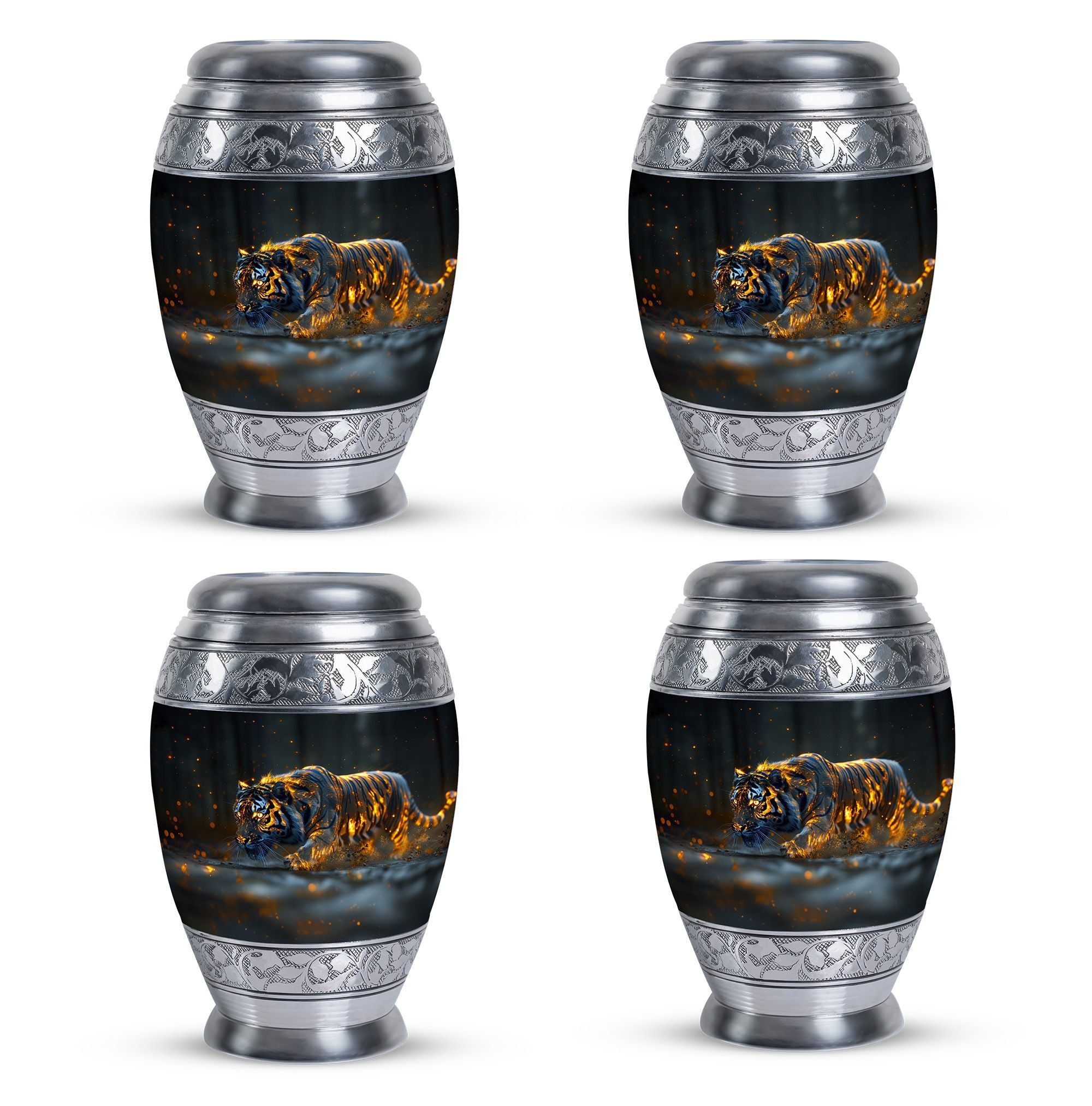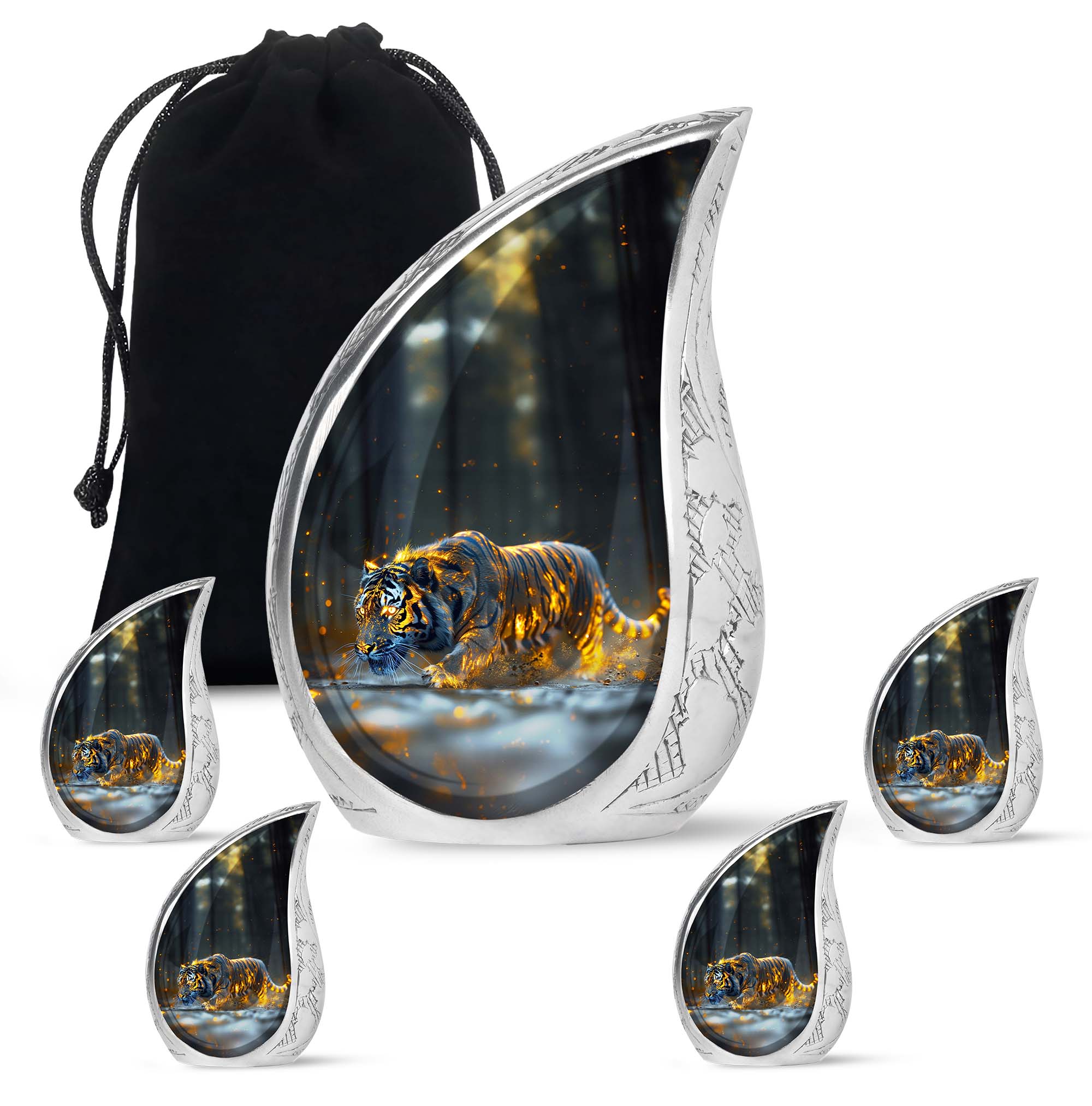 Expertly handcrafted, this elegant urn showcases a deep black finish accented with subtle tiger-inspired detailing—an expression of inner power and peace. The high-quality aluminum construction ensures durability and long-lasting beauty, while the smooth surface and reflective finish enhance its visual appeal. Whether chosen as urns for human ashes adult male dad, urns for adult female mom, or cremation urns for human ashes adult female, it beautifully combines craftsmanship with compassion, making it a timeless keepsake.