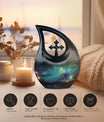 Perfect as an urn for burial in ground or part of a funeral keepsake urns collection, this piece offers a sacred resting place that reflects both faith and beauty. Its timeless craftsmanship and symbolic design make it one of the most unique urns for ashes, capturing love’s light even in moments of farewell.