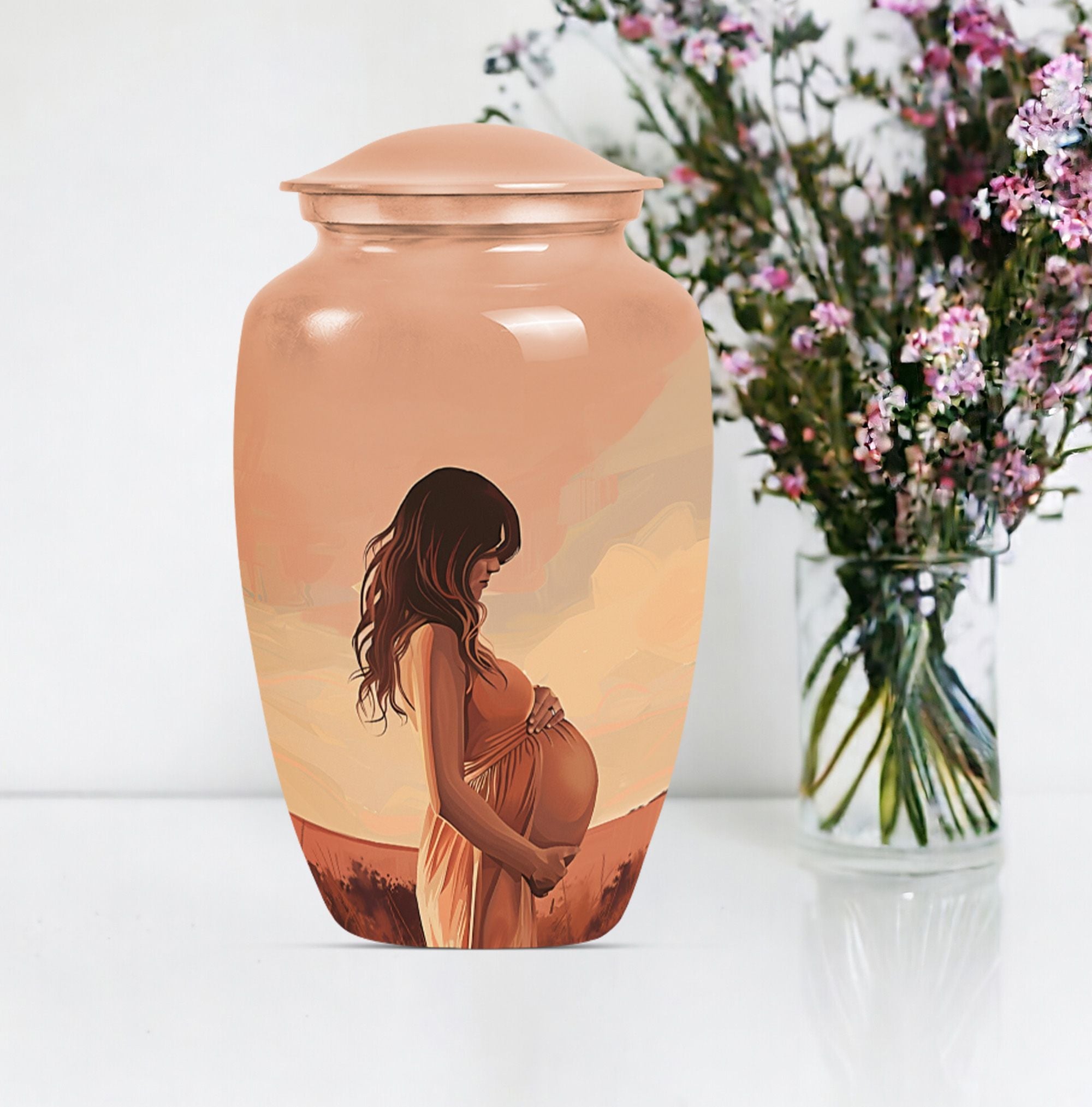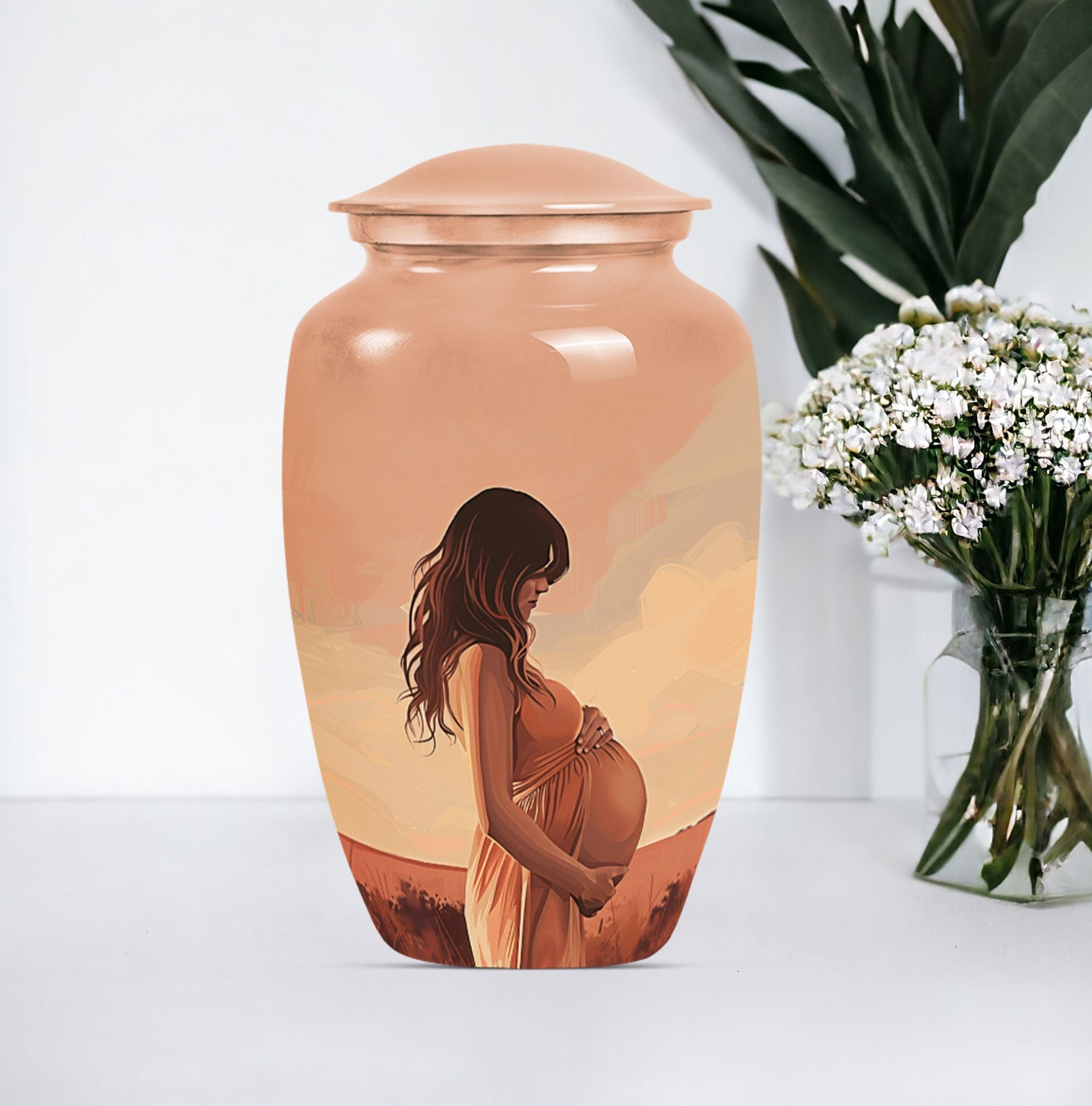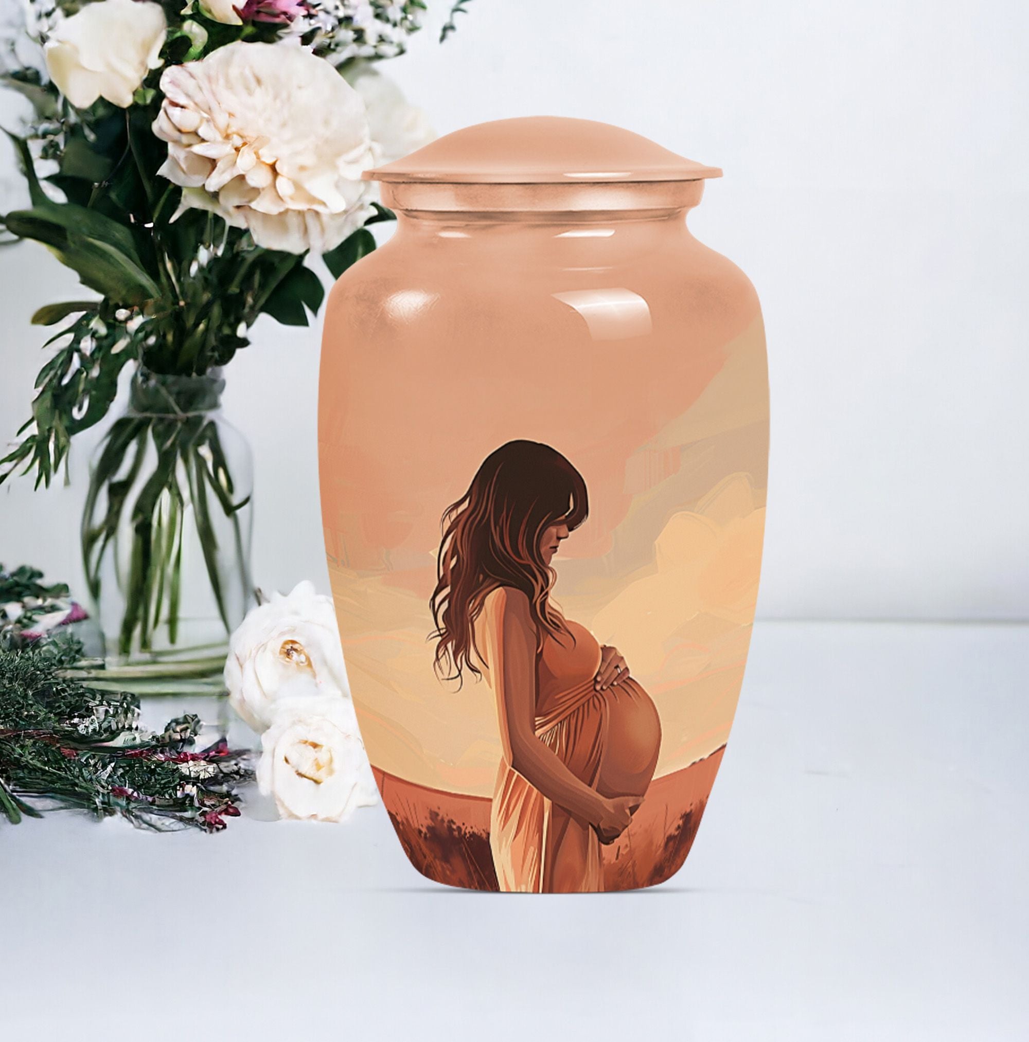 Cherish the memories of your loved ones with our distinct and dignified mother Urn. A unique offering under the 'Memorial Ceremony Supplies' category, this memorial urn for an adult male is an epitome of grace and reverence. Crafted from the sturdy and elegant Aluminium material, it ensures durability while maintaining a dignified appearance in its large Urn type. Spanning 10 inches in height and weighing 3.3 pounds, it accommodates up to 200 cubic inches of ashes. The package comes with a velvet pouch which guarantees secure containment of the ashes. It also offers a personal touch by permitting you to personalize it with engraved names of your beloved ones. The urn adorns an abstract theme that stands as a testament to life's unpredictability. Perfectly suited to be a timeless tribute to your missed mother or male companion, this urn strikes an emotional chord while being practical. Searching for 'funeral medium size urns for human ashes', 'human urn adult', or 'urns for human ashes adult', will lead up to this sturdy, elegantly designed keepsake.