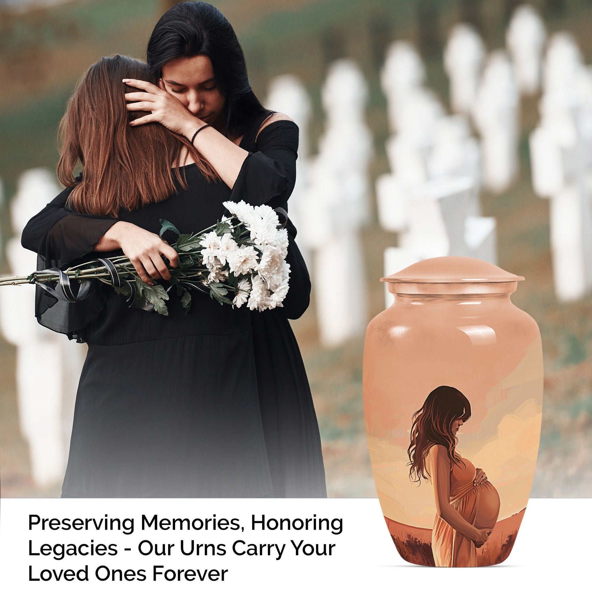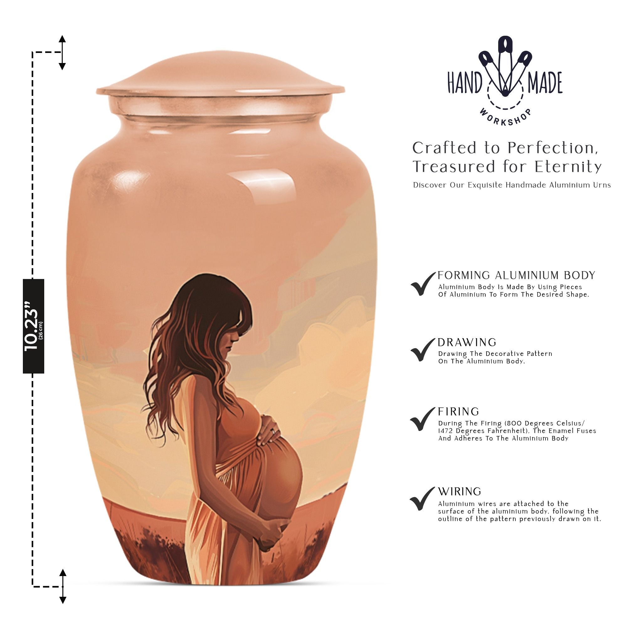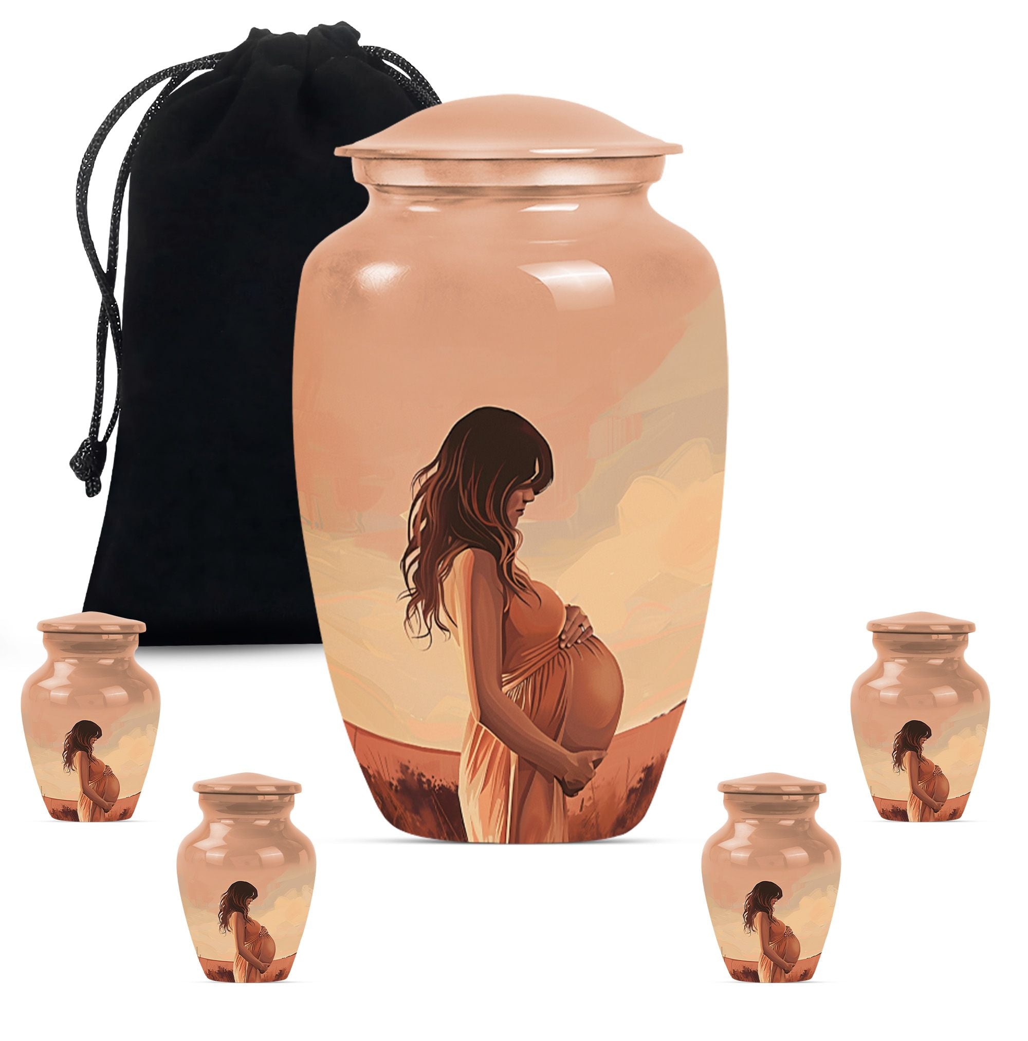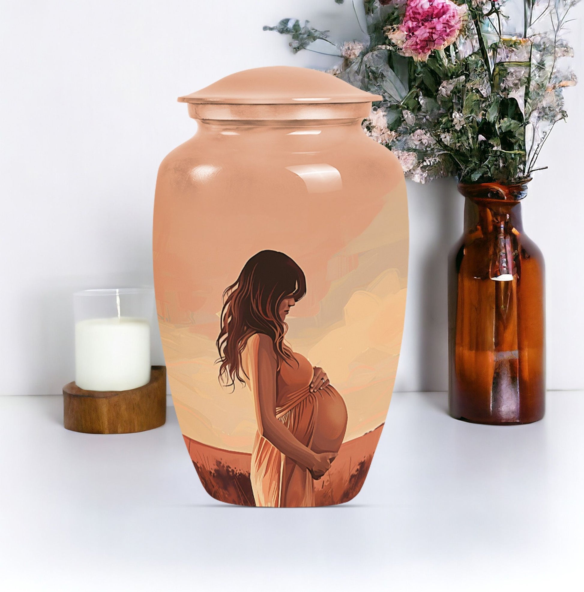 Cherish the memories of your loved ones with our distinct and dignified mother Urn. A unique offering under the 'Memorial Ceremony Supplies' category, this memorial urn for an adult male is an epitome of grace and reverence. Crafted from the sturdy and elegant Aluminium material, it ensures durability while maintaining a dignified appearance in its large Urn type. Spanning 10 inches in height and weighing 3.3 pounds, it accommodates up to 200 cubic inches of ashes. The package comes with a velvet pouch which guarantees secure containment of the ashes. It also offers a personal touch by permitting you to personalize it with engraved names of your beloved ones. The urn adorns an abstract theme that stands as a testament to life's unpredictability. Perfectly suited to be a timeless tribute to your missed mother or male companion, this urn strikes an emotional chord while being practical. Searching for 'funeral medium size urns for human ashes', 'human urn adult', or 'urns for human ashes adult', will lead up to this sturdy, elegantly designed keepsake.