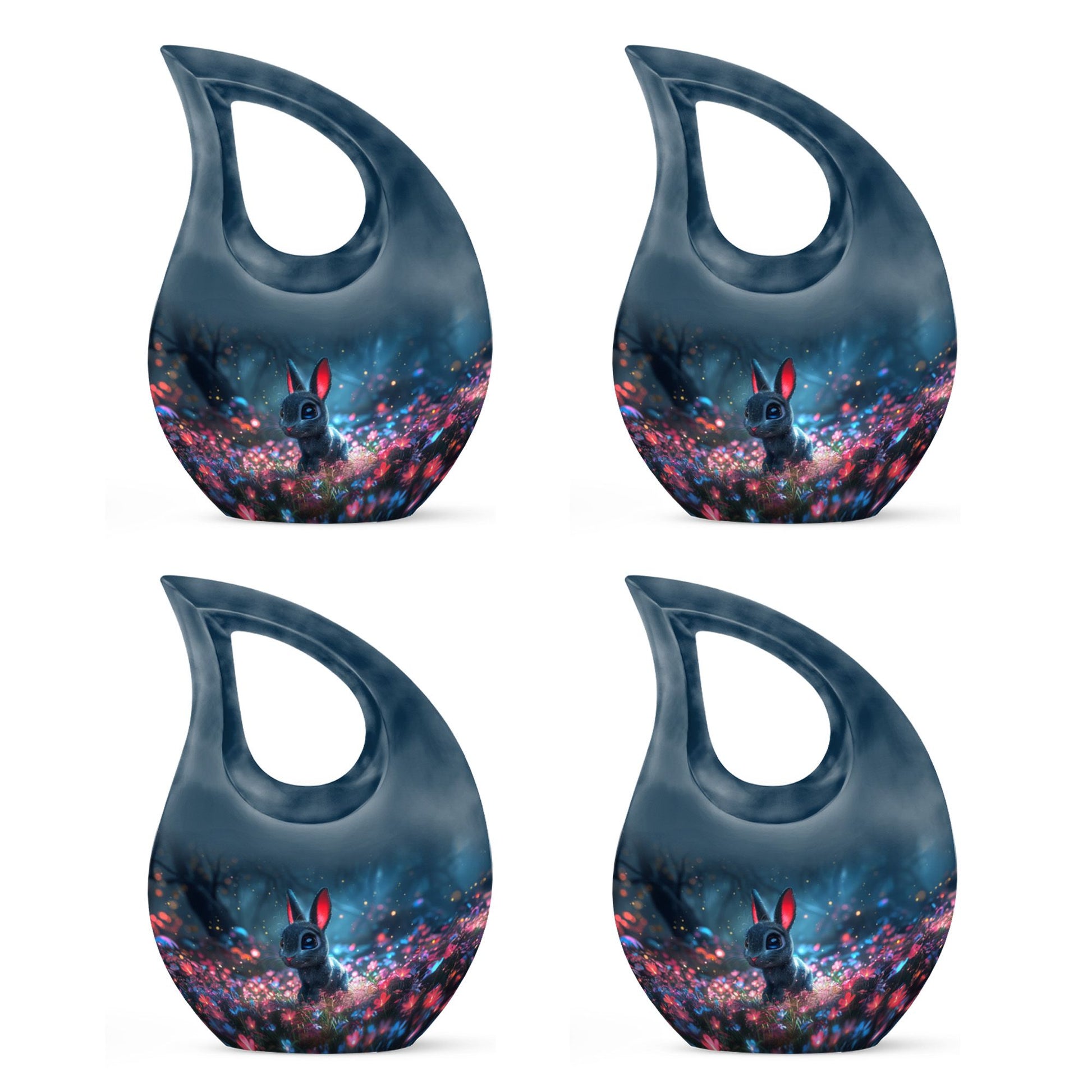 Each Bunny Rabbit Cremation Urn is made with great care, featuring exquisite detailing that captures the gentle spirit of a pet bunny. Crafted from high-quality aluminum, this piece is both lightweight and durable, ensuring the ashes of your beloved companion are preserved safely. The hand-finished exterior makes it a charming heart shaped urn for pet ashes and an elegant home display. It’s suitable for anyone seeking large pet urns for ashes, mini urns for pet ashes, or personalized pet urns for ashes that reflect love and devotion.