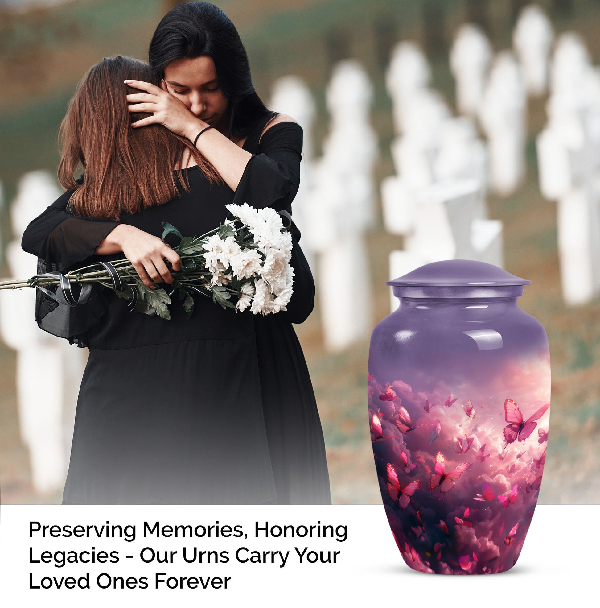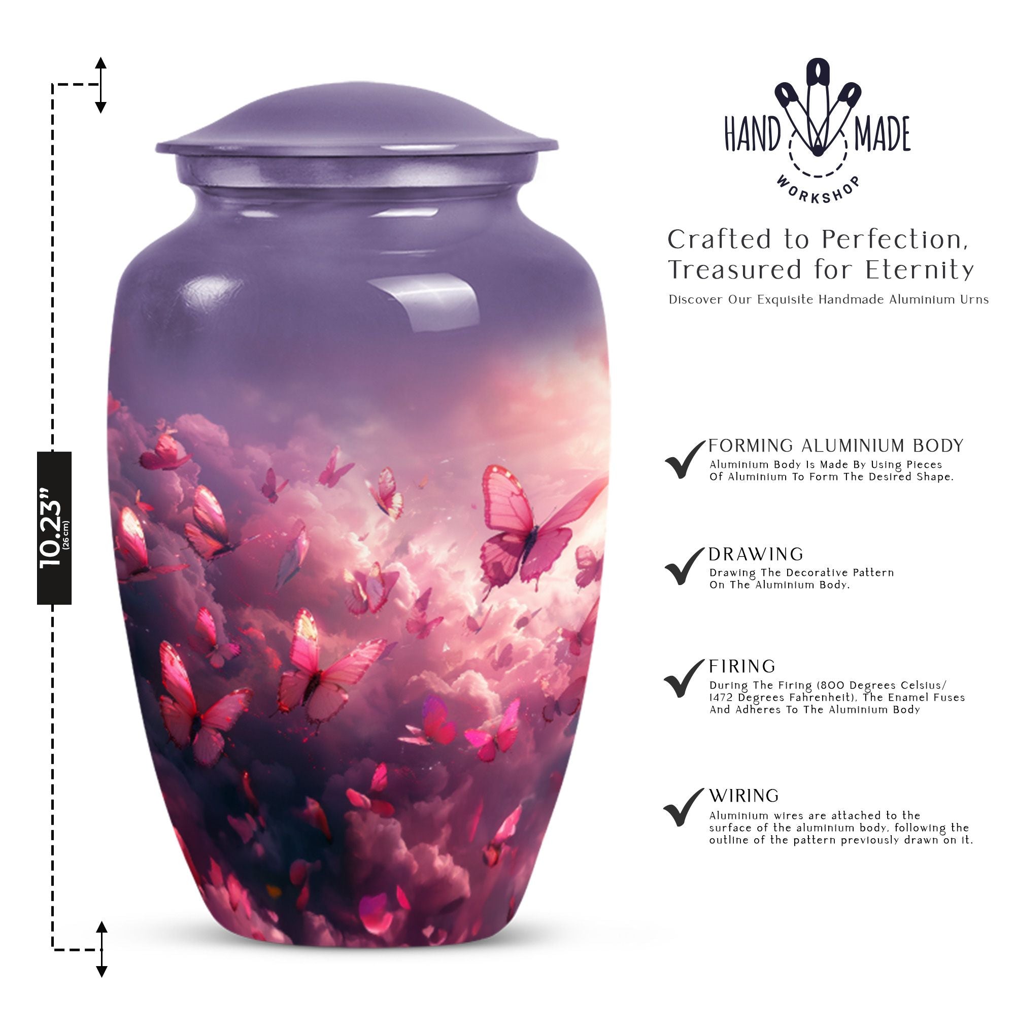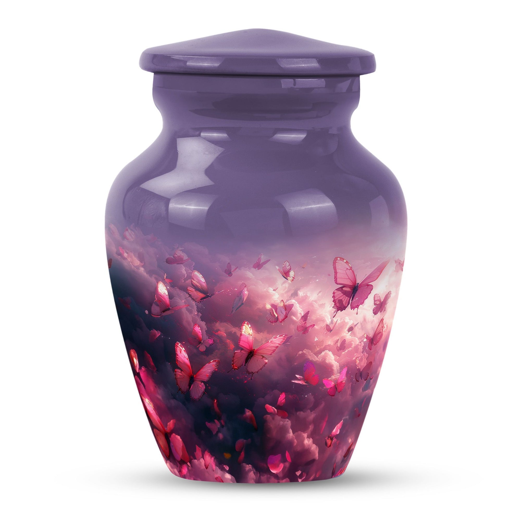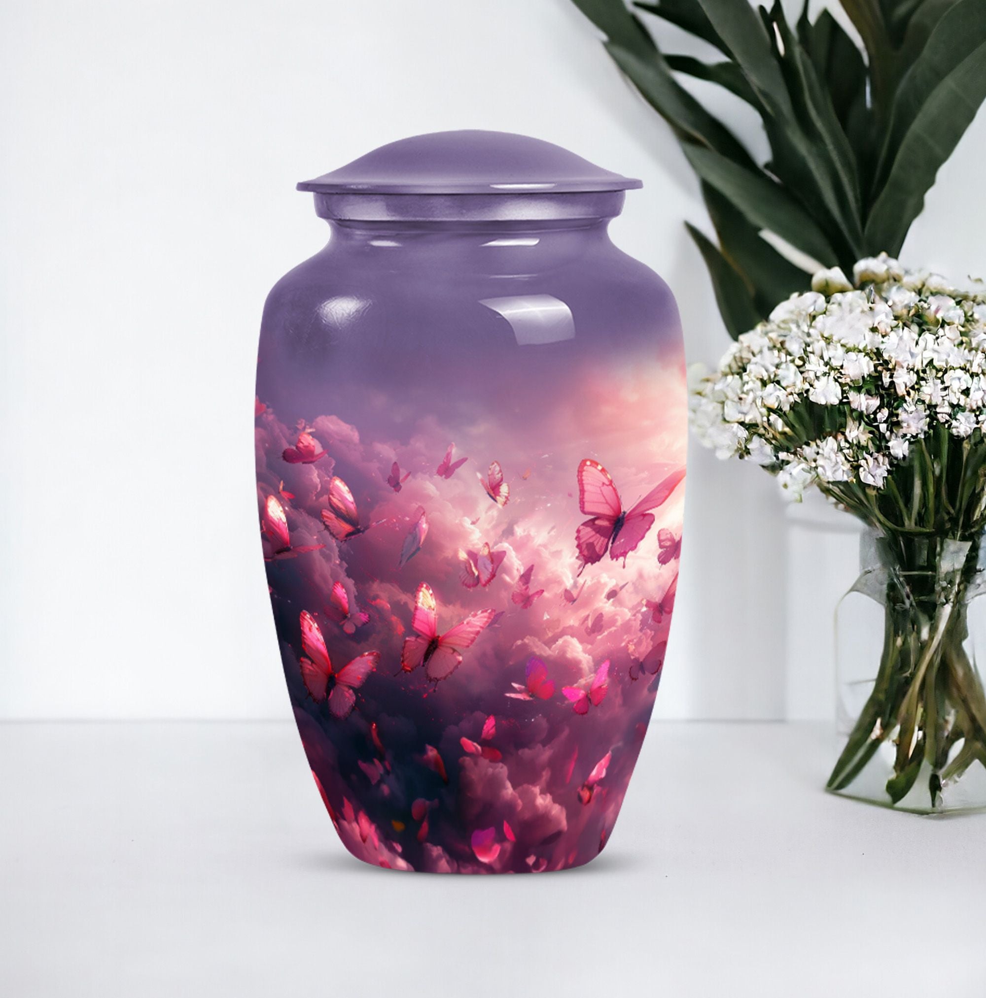 Honor your loved one’s memory with the Pink Butterfly & Clouds Urn Tribute, a beautifully designed cremation urn that symbolizes peace, transformation, and eternal love. This urn combines soft cloud artwork with delicate butterfly details, creating a serene and uplifting memorial. Families often choose this as a pink butterfly urn for ashes, a pink clouds urn, or as a meaningful butterfly memorial urn for adult ashes.