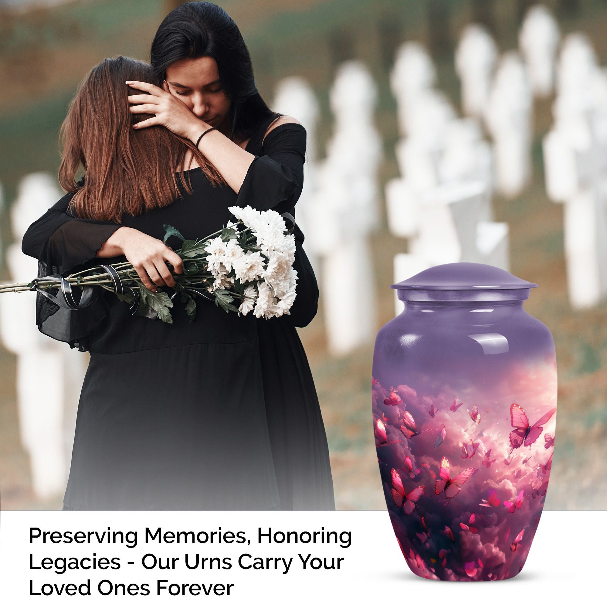 This urn is versatile enough to be displayed at home, placed in a columbarium, or used as burial urns ashes. Families may also use it alongside small funeral urns or within a cremation ashes urns combo for shared remembrance. Its timeless design makes it suitable as an urn for ashes for men & women, reflecting love beyond boundaries.