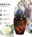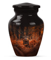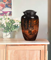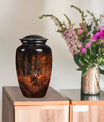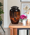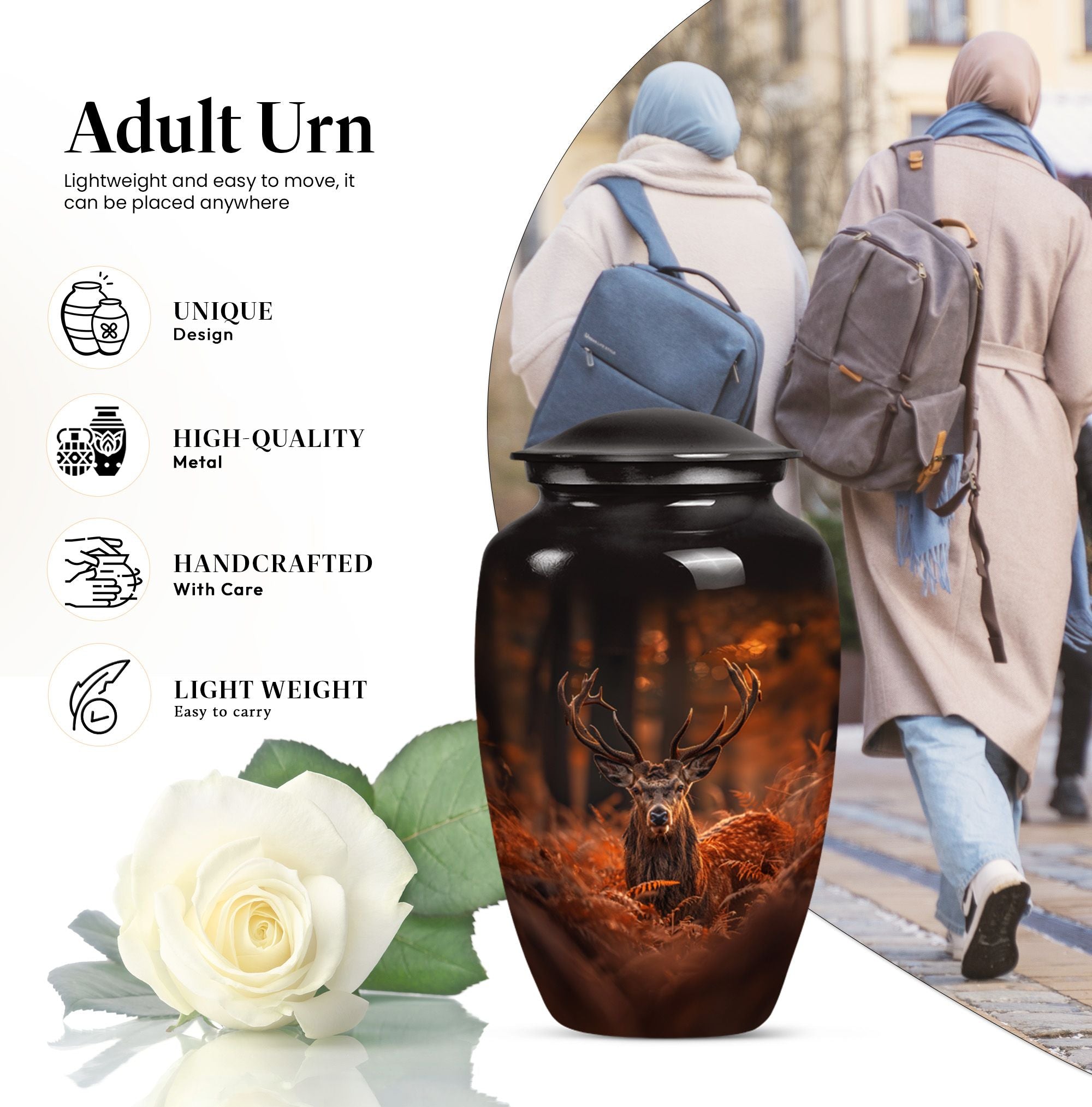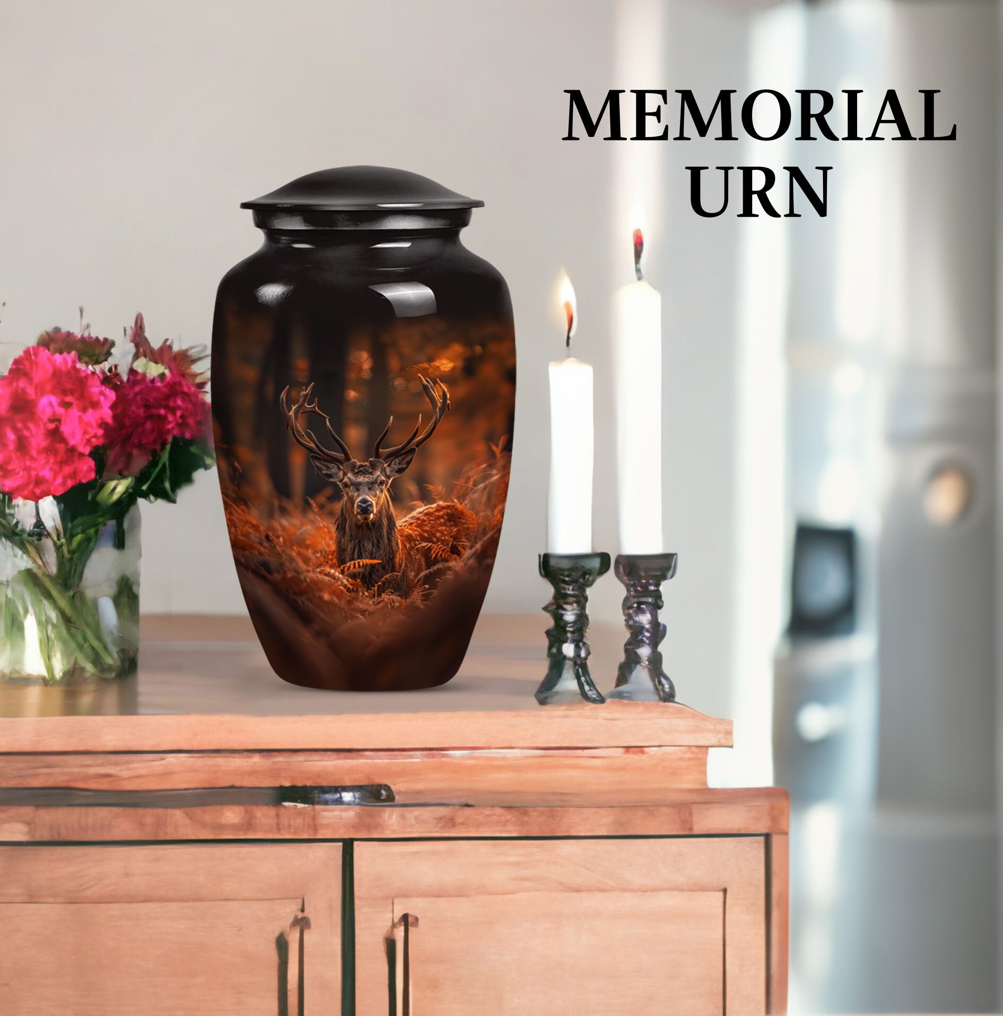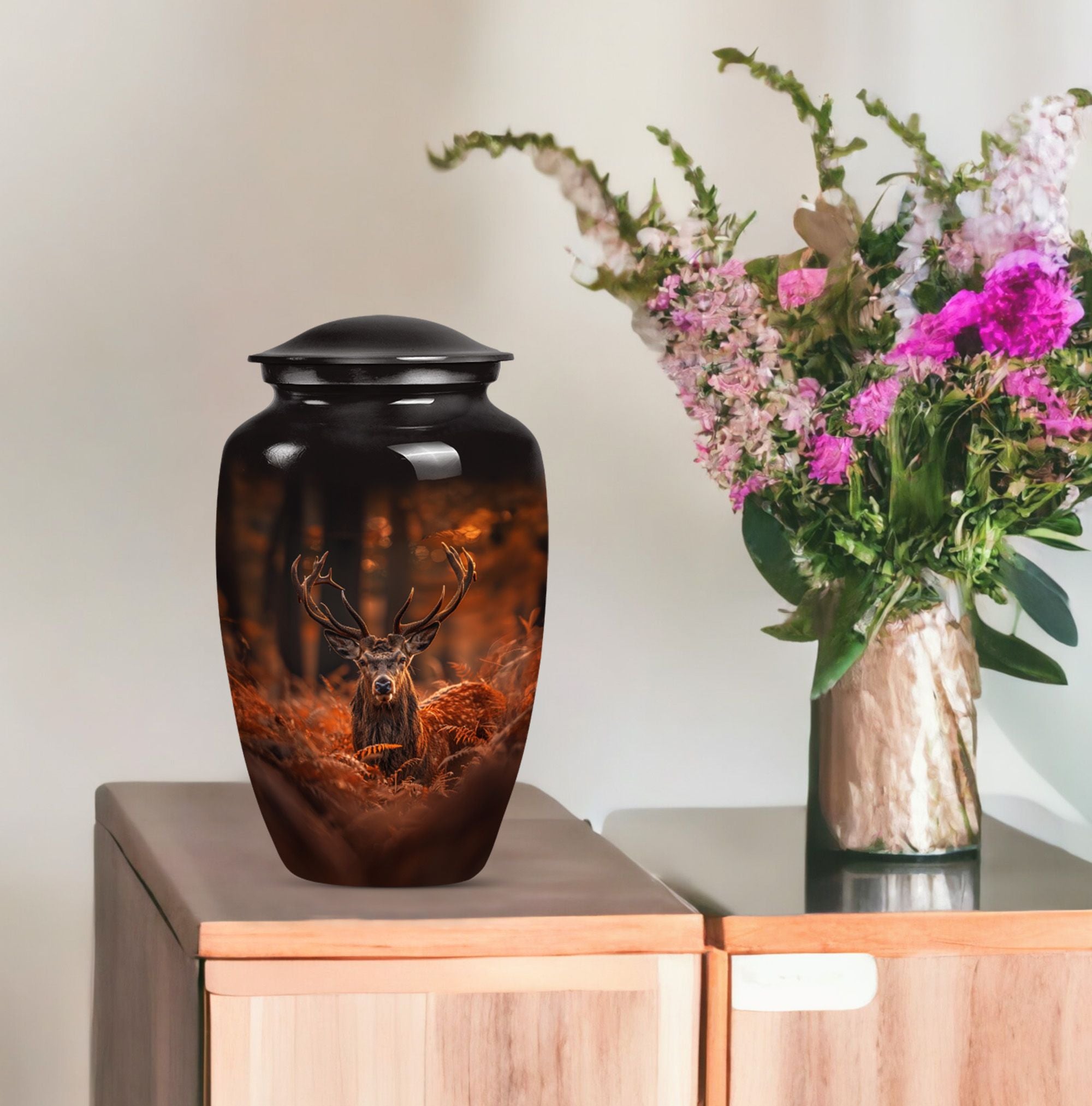 Our unique 'Gramophone' theme Large Urn offers a unique tribute to your loved one's passing. It is a robust and beautifully crafted cremation urn made from high-quality aluminium that stands 10 inches in size and weighs a substantial 3.3 pounds. The larger dimension allows a generous capacity of 200 cubic inches, ideal for adult-sized burial cremation urns. Typical urns can sometimes be cold, but our Classic Urn adds warmth and dignity to a challenging event. Customization is available, allowing personalization with engraved names. Included in your purchase is a plush velvet pouch for dignified containment and storage of ashes. Whether you are seeking Deer Urn or funeral urns for adult ashes, our product merges solemnity with elegant design. Our Large Urn epitomizes a tasteful blend of style and functionality, making it the definitive choice in cremation urns for human ashes. Not just an urn, but a testament of love and affection paid to the departed soul.
