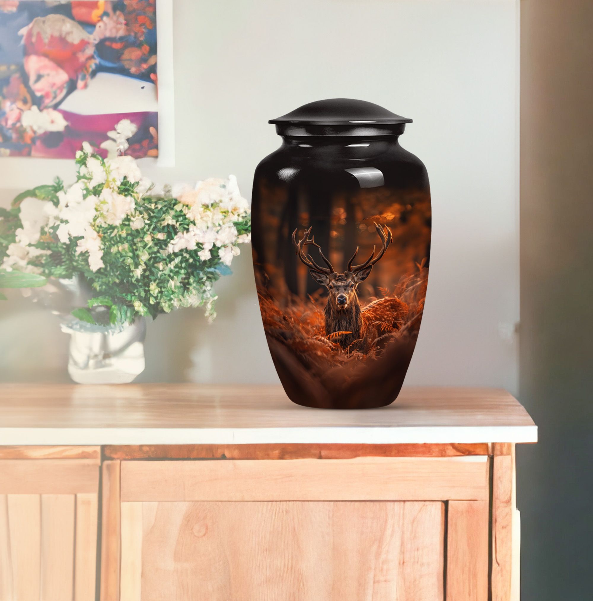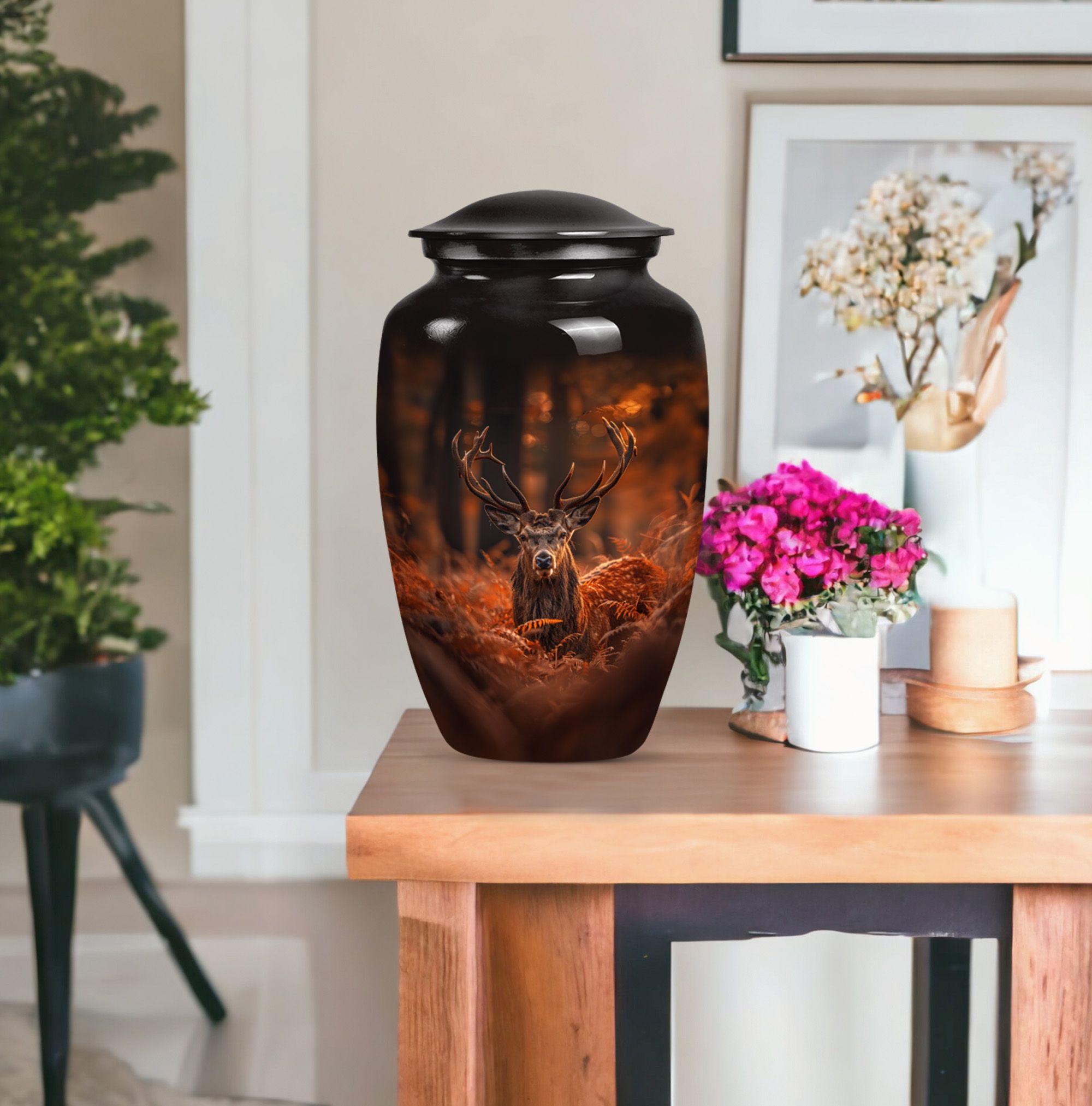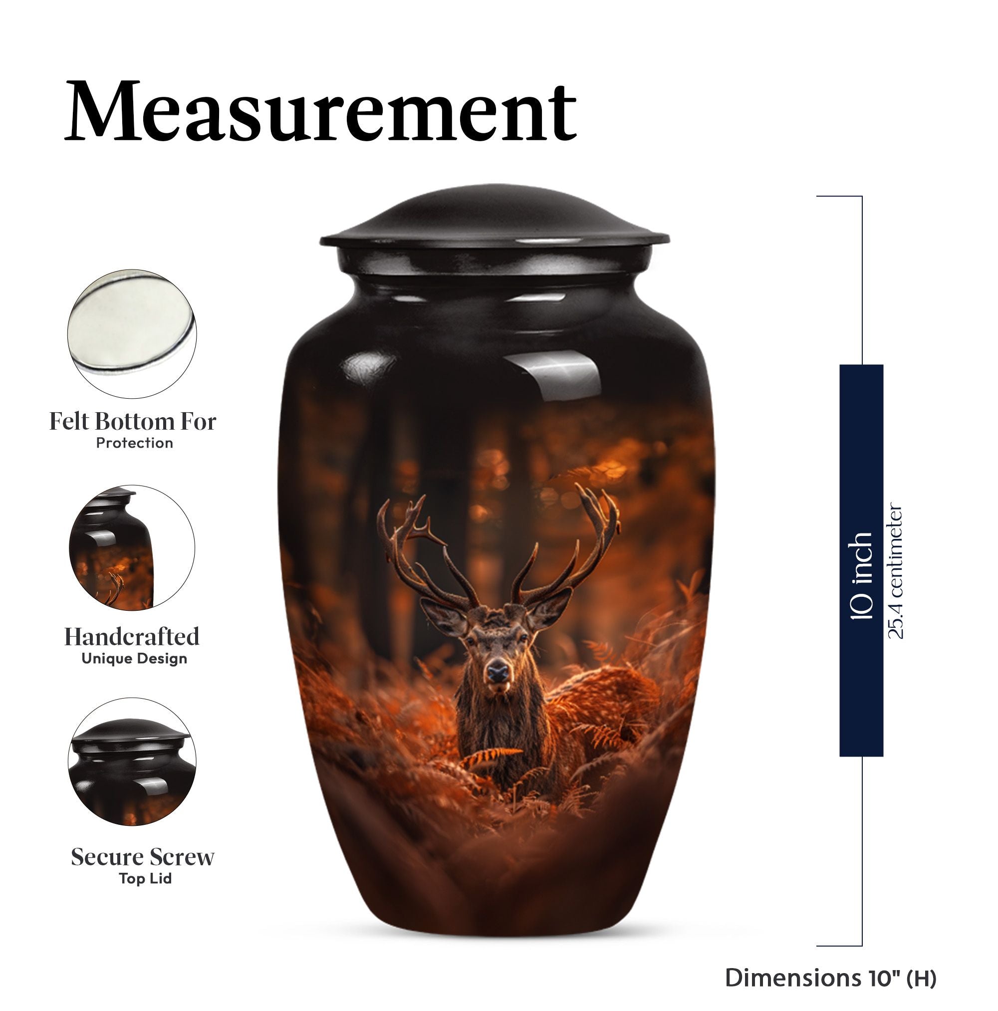Our unique 'Gramophone' theme Large Urn offers a unique tribute to your loved one's passing. It is a robust and beautifully crafted cremation urn made from high-quality aluminium that stands 10 inches in size and weighs a substantial 3.3 pounds. The larger dimension allows a generous capacity of 200 cubic inches, ideal for adult-sized burial cremation urns. Typical urns can sometimes be cold, but our Classic Urn adds warmth and dignity to a challenging event. Customization is available, allowing personalization with engraved names. Included in your purchase is a plush velvet pouch for dignified containment and storage of ashes. Whether you are seeking Deer Urn or funeral urns for adult ashes, our product merges solemnity with elegant design. Our Large Urn epitomizes a tasteful blend of style and functionality, making it the definitive choice in cremation urns for human ashes. Not just an urn, but a testament of love and affection paid to the departed soul.