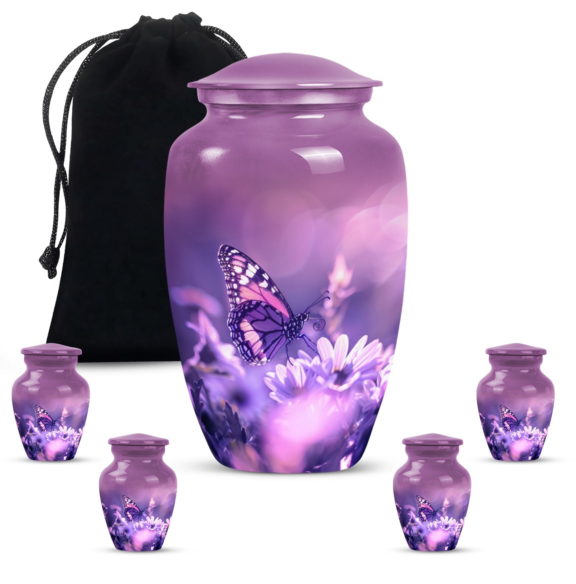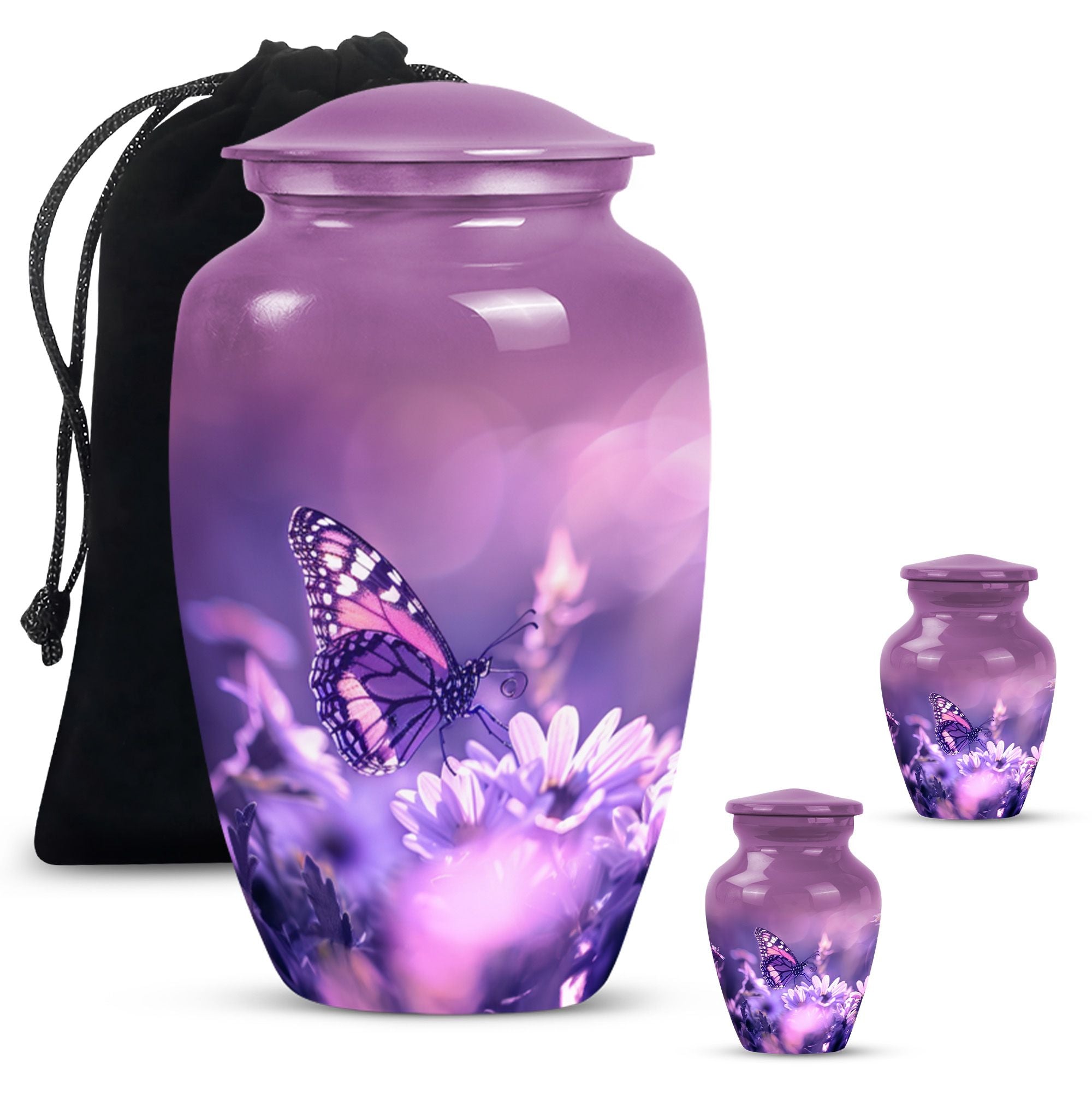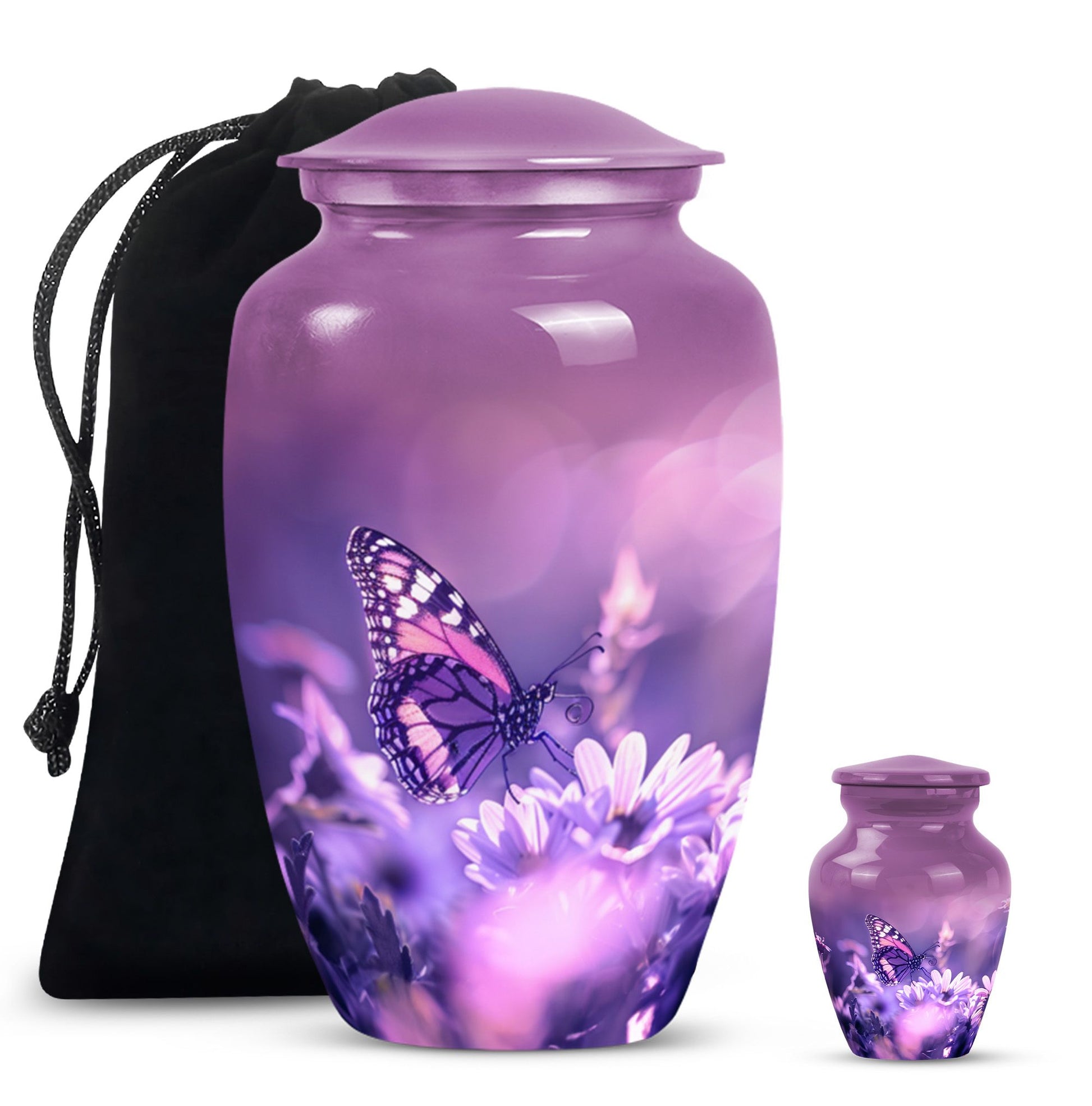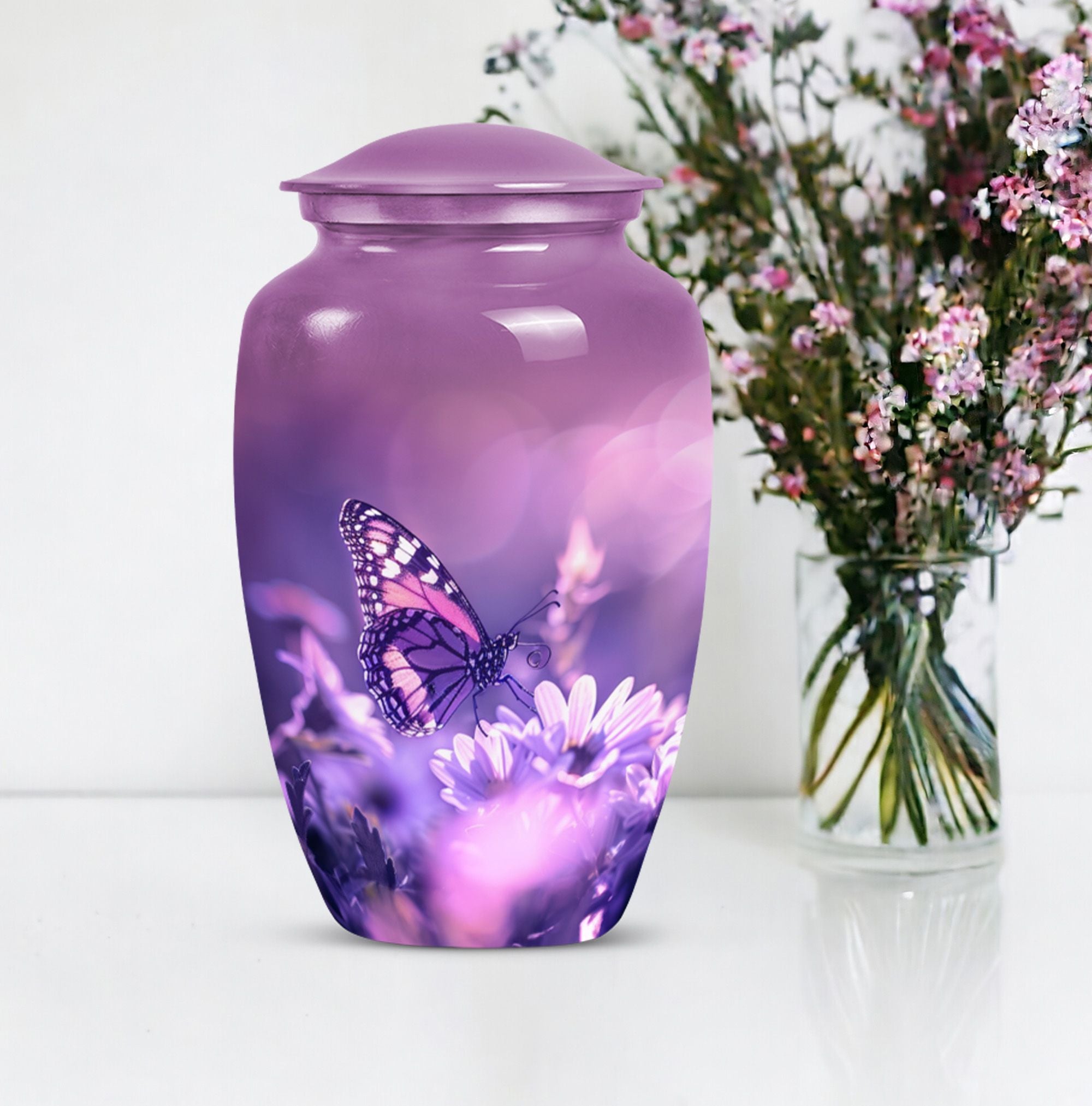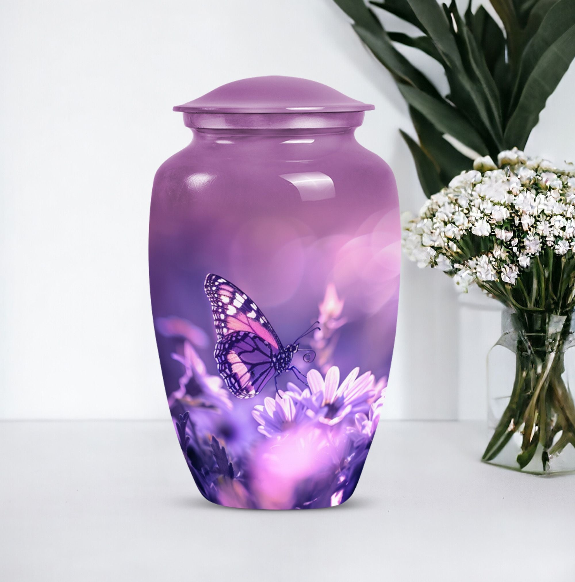 Reflect on the life of your beloved with this high-quality, meticulously crafted 10 Inch Butterfly Urn, the perfect solution to store the ashes of an adult. Tailored per your preference, this funeral urn offers personalization; carve the engrave names of your missed ones, adding a unique, personal touch. Our large urn weighing 3.3 pounds outstands with its abstract theme; its aluminum material design offers lasting durability against time. The urn boasts a capacity of 200 cubic inches, ensuring plenty of space for ashes. With each purchase comes a velvet pouch, providing an extra layer of safeguarding for containment of ashes. Whether you are searching for memorial urns or metallic urns for adult male dad or urn ash men, this product serves your needs with its unique yet classic design. Remember, every bit of this urn represents your love and memories, making it an ideal keepsake for reminiscence.