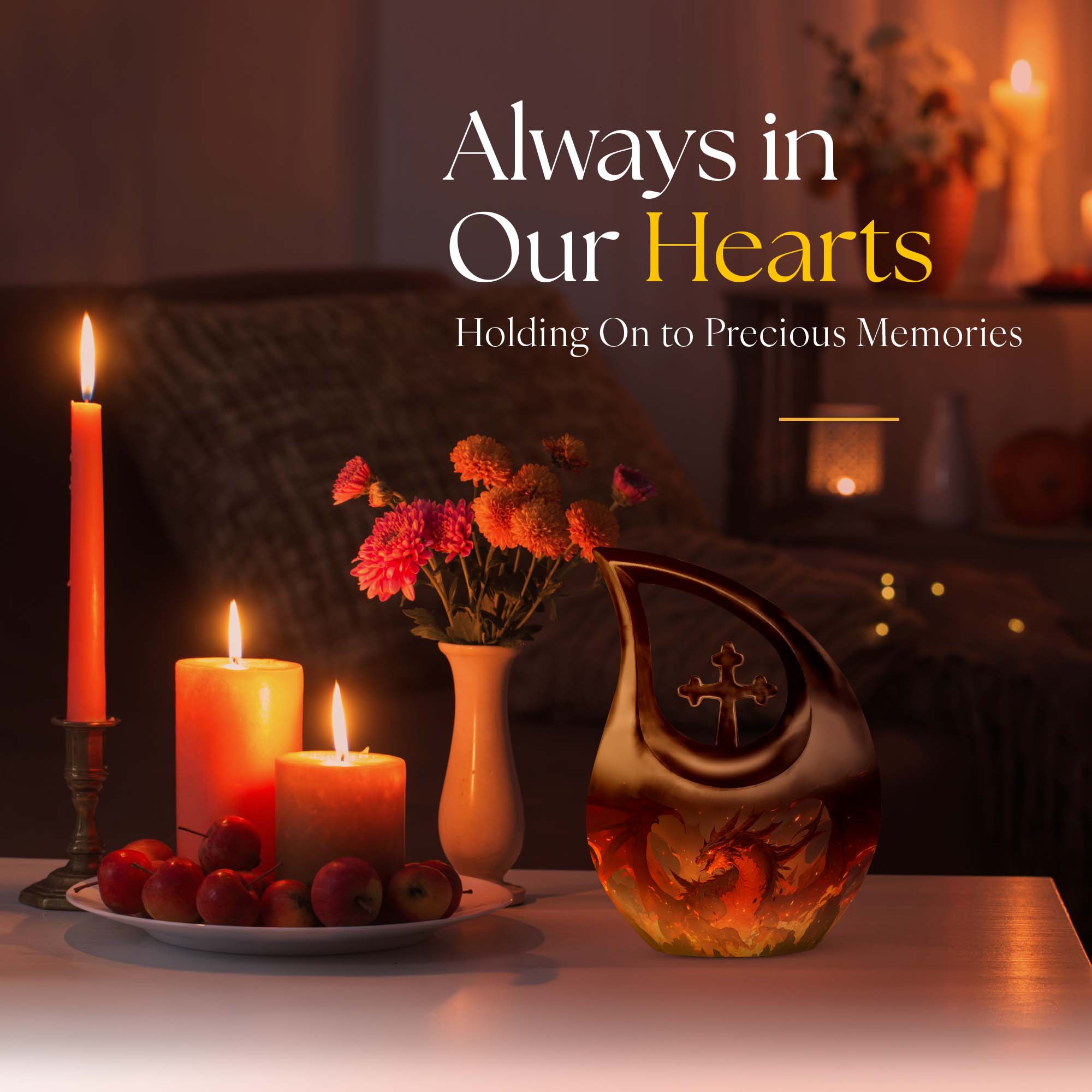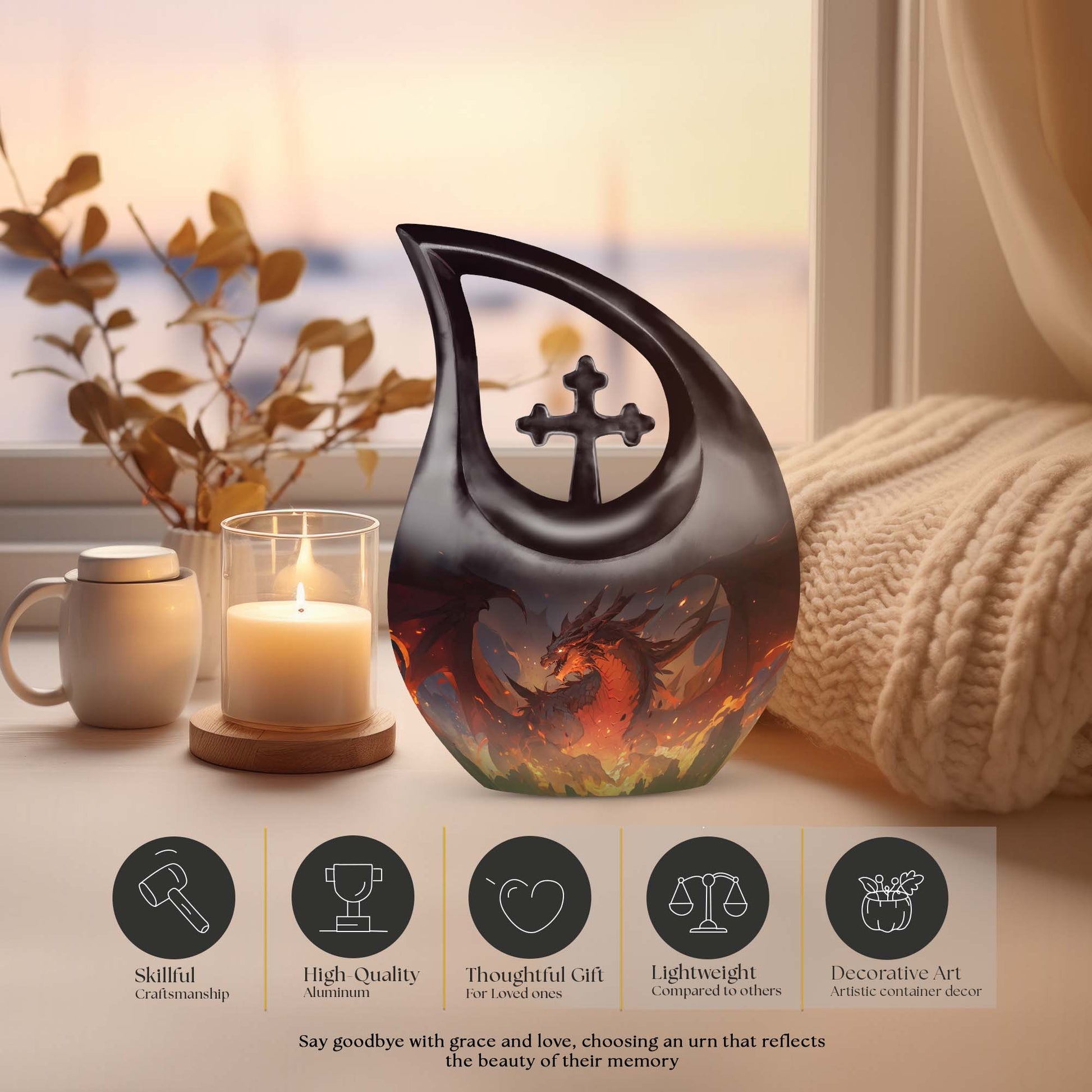 The Roaring Dragon Cremation Urn for Ashes provides a bold, symbolic tribute for honoring a cherished life. With its powerful dragon artwork representing courage, protection, and eternal guidance, this urn brings comfort to families seeking a meaningful funeral adult urn or a unique memorial suitable for both men and women.