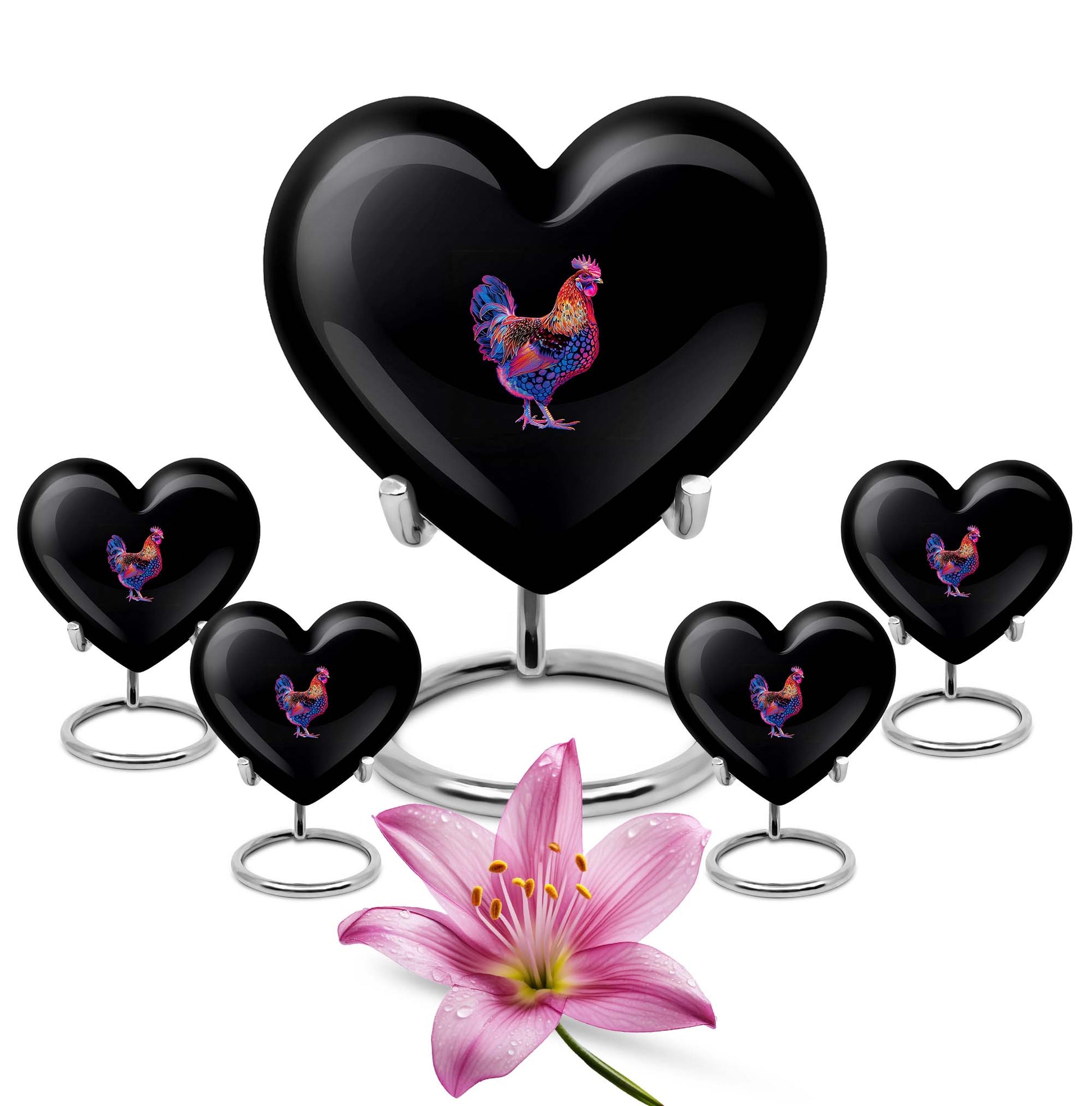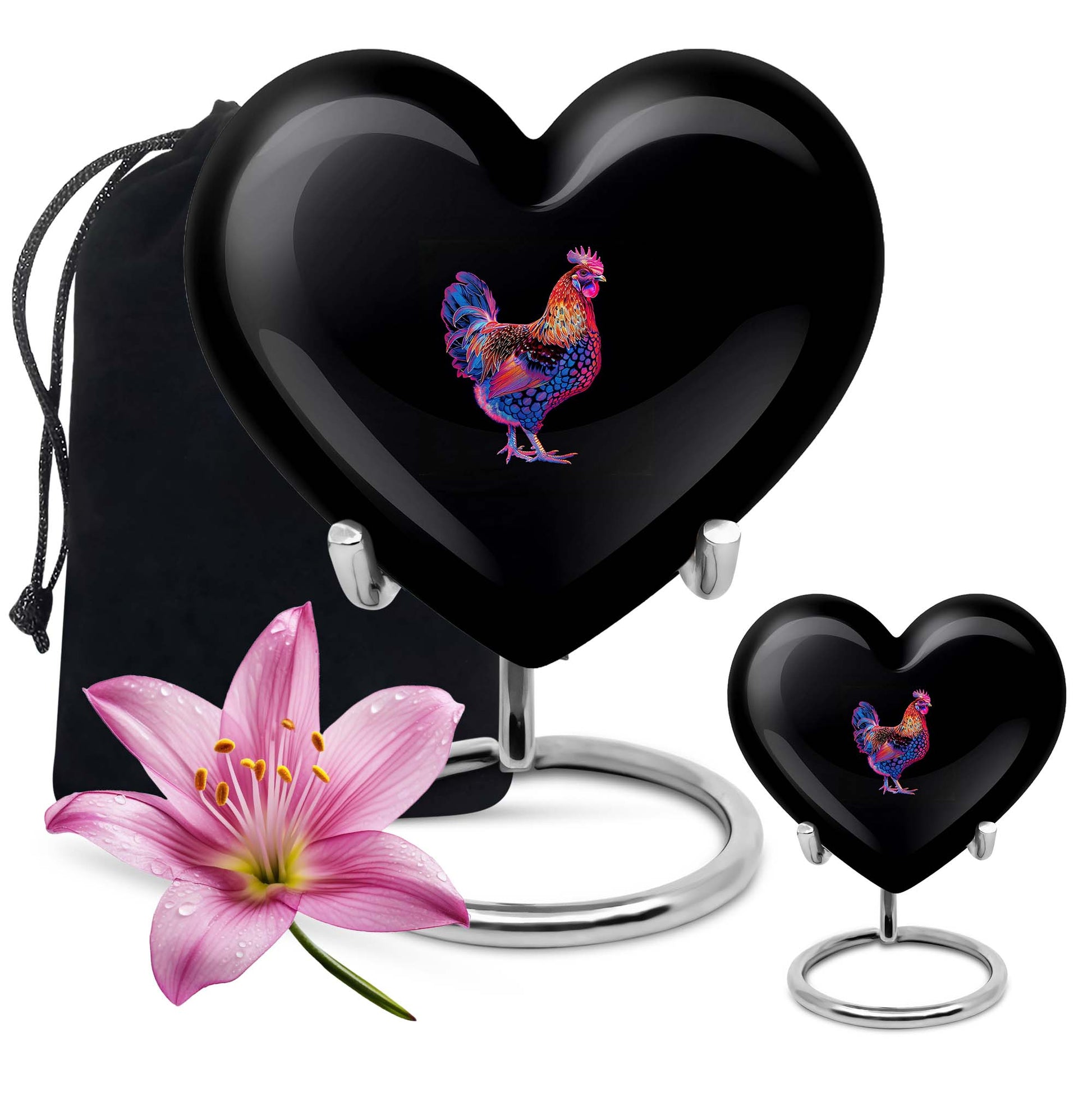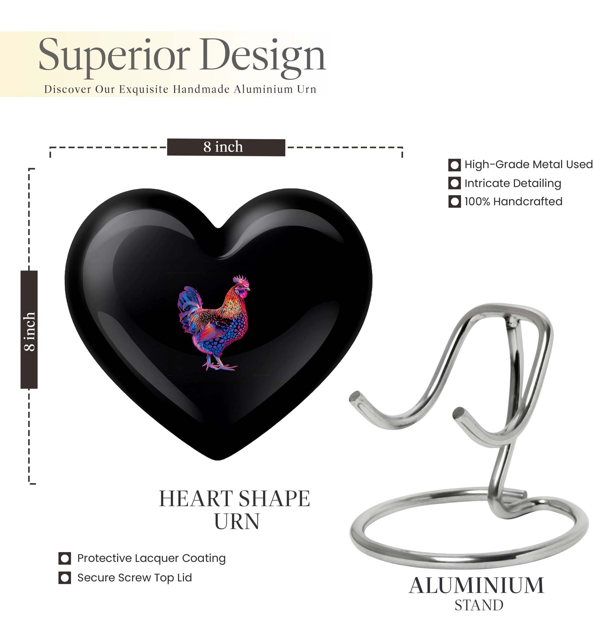 Discover a unique way to commemorate the life of a departed loved one with our high-quality, 10-inch Chicken Urn, tastefully designed in a heart shape. This large urn is not only visually appealing with its flower theme but also practical, holding up to 200 cubic inches of ashes. Weighing a sturdy 3.3 pounds and made of durable aluminium, this urn holds a lasting memorial to your loved one. The urn comes with a velvet pouch for safe containment of ashes, underscoring the care we take for your cherished memories. One of the key features is that it can be personalized with engraved names, adding a truly personal touch to the memorial. Ideal for adults and seniors, this urn is part of our unique range of memorial adult urns. We also have a wide variety of cremation urns suitable for burial in the ground. Make your search easy by using keywords like 'memorial urns' or 'adult urns for human ashes women'. Note: Don't limit yourself to the usual memorial ceremony supplies; explore our range for unique finds.