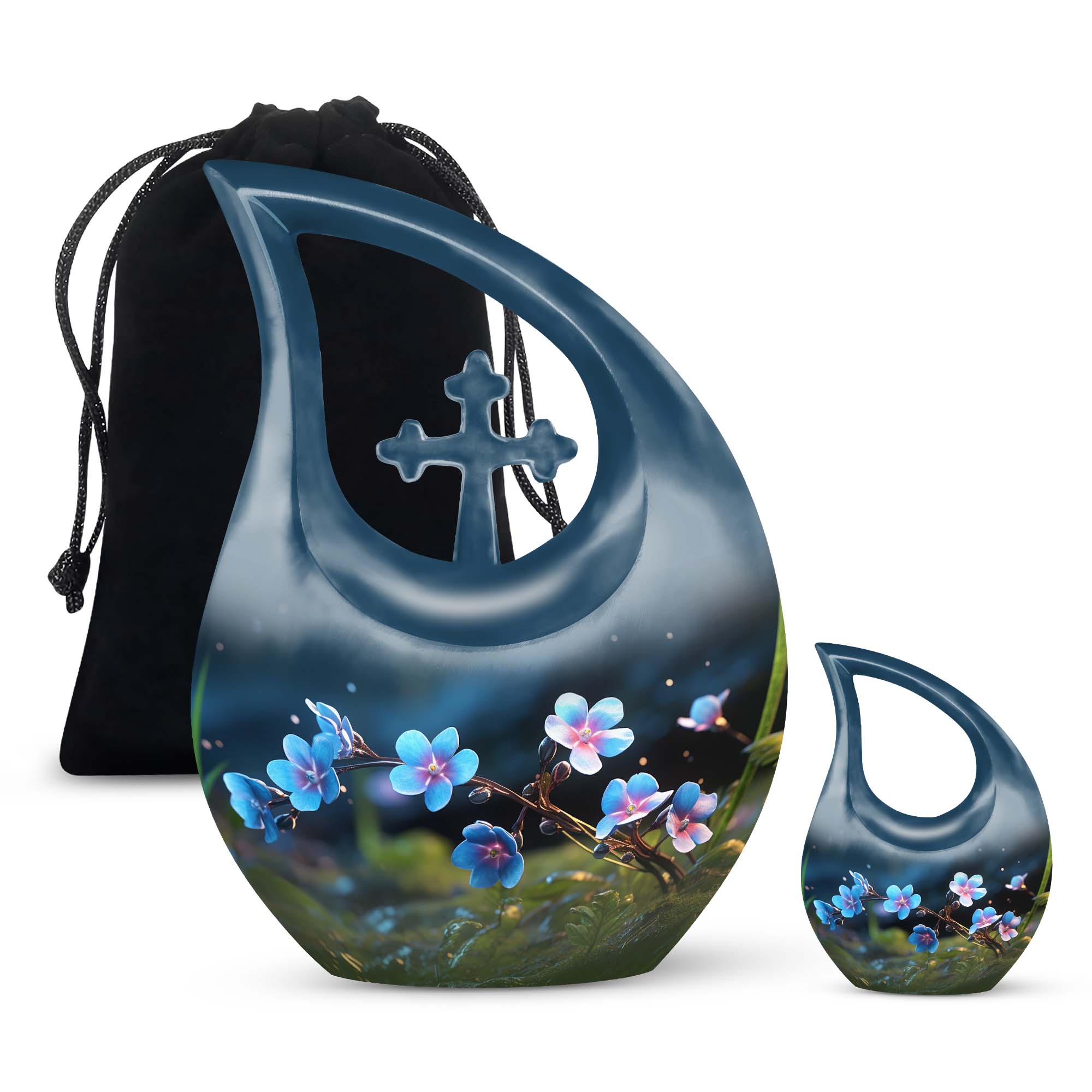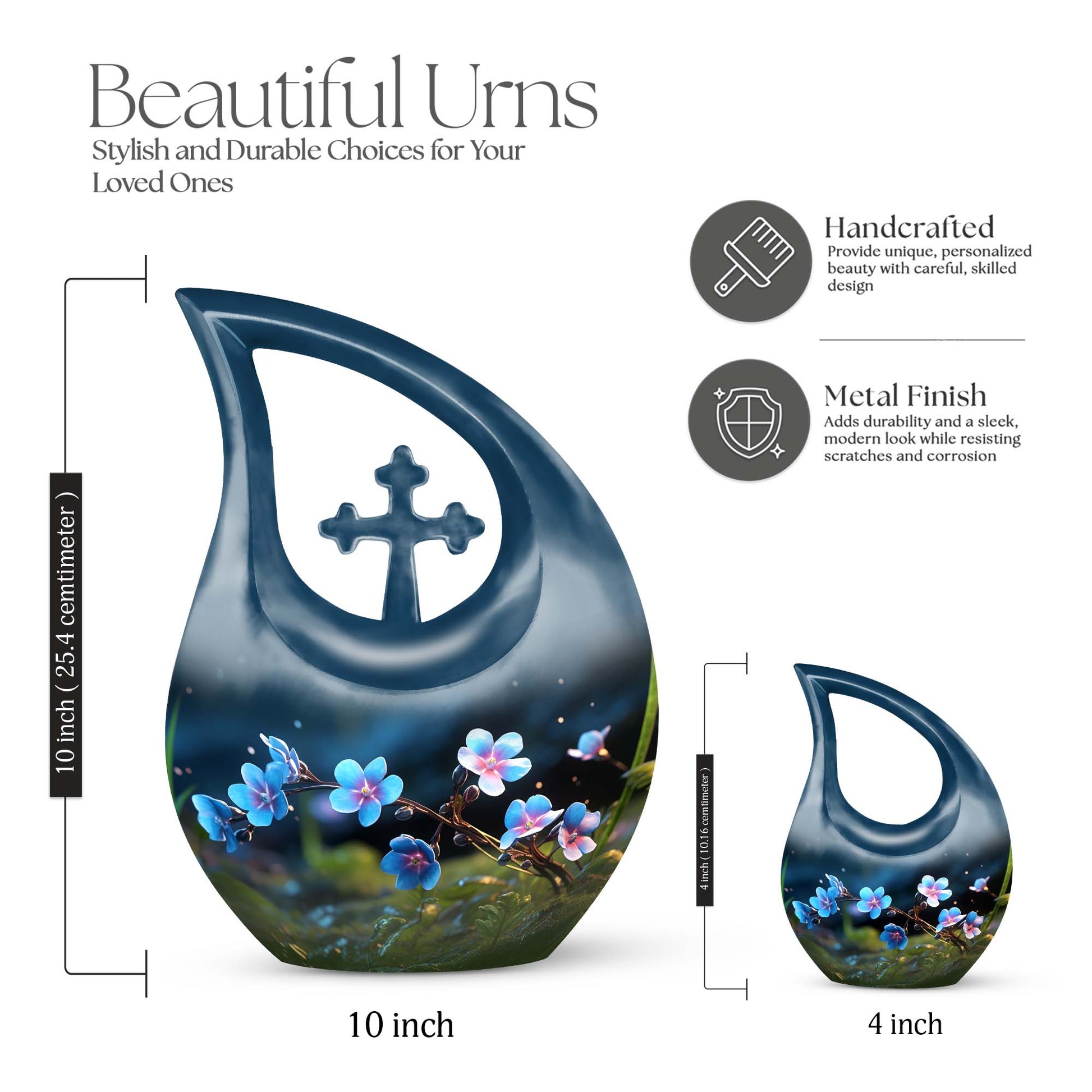 Celebrate a cherished life with this Blue Myosotis Flower Cremation Urn, a delicate floral memorial that symbolizes eternal love and remembrance. Designed with compassion and grace, this funeral cremation urn for ashes brings comfort and beauty to any memorial setting — a peaceful tribute for those who will forever be remembered.