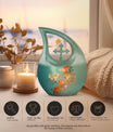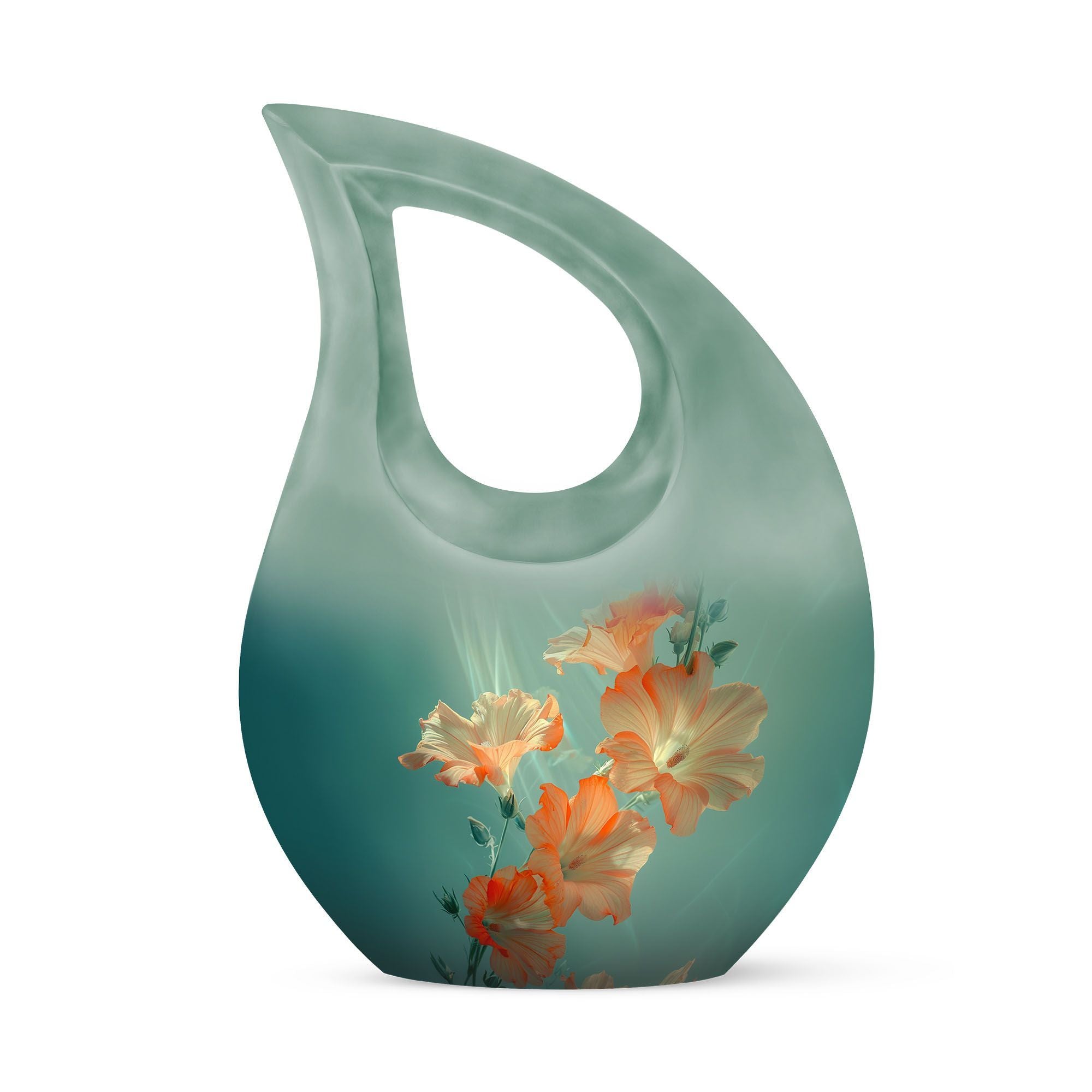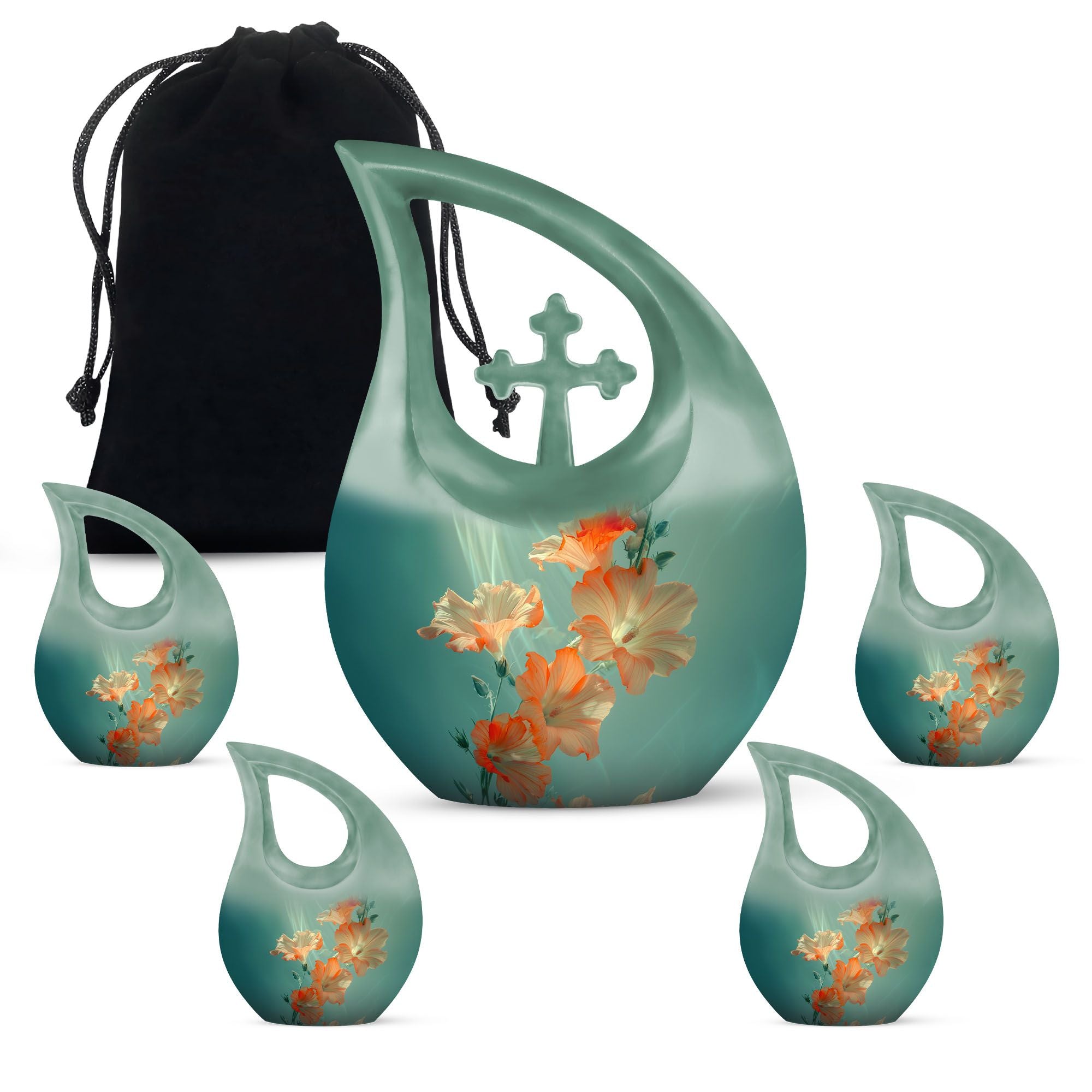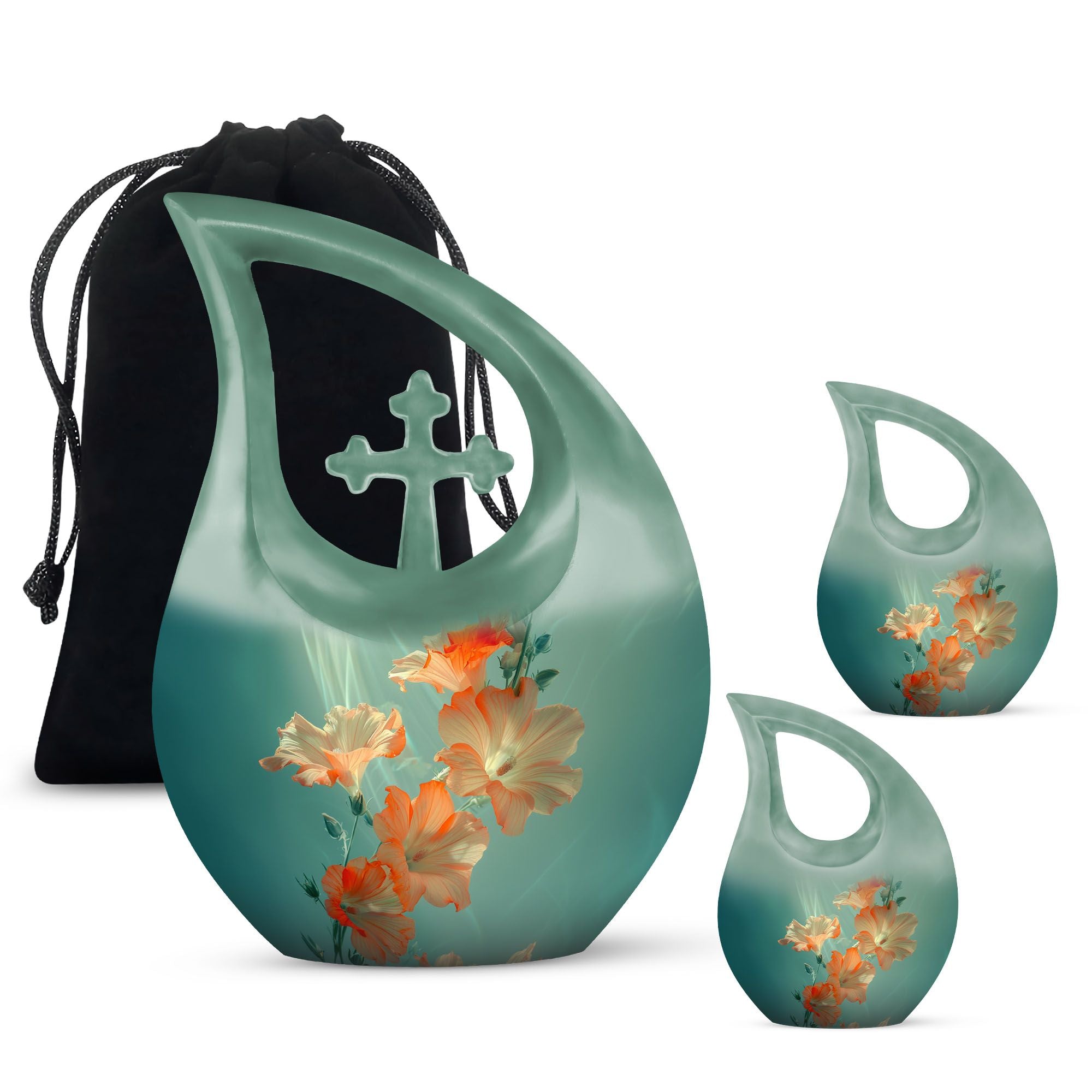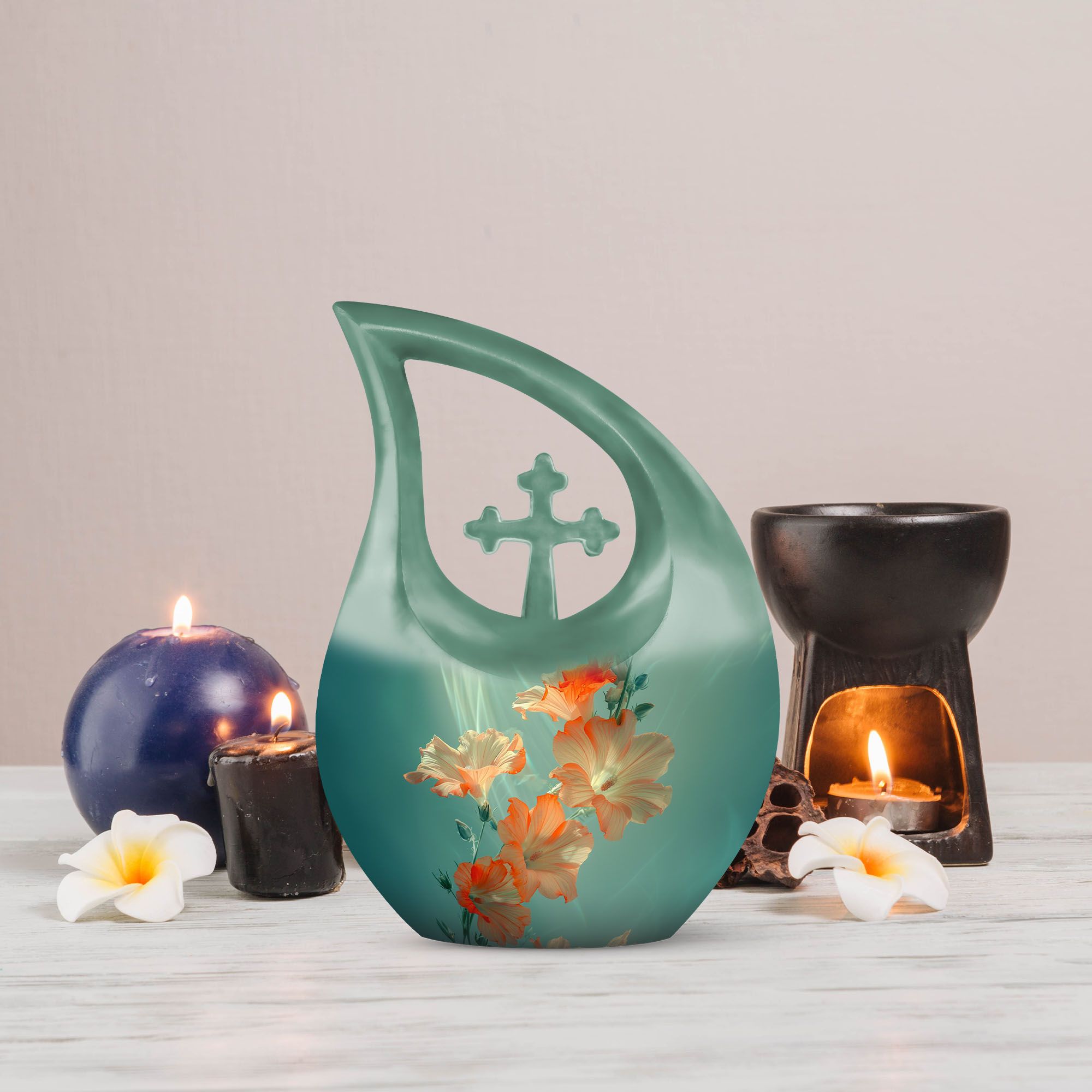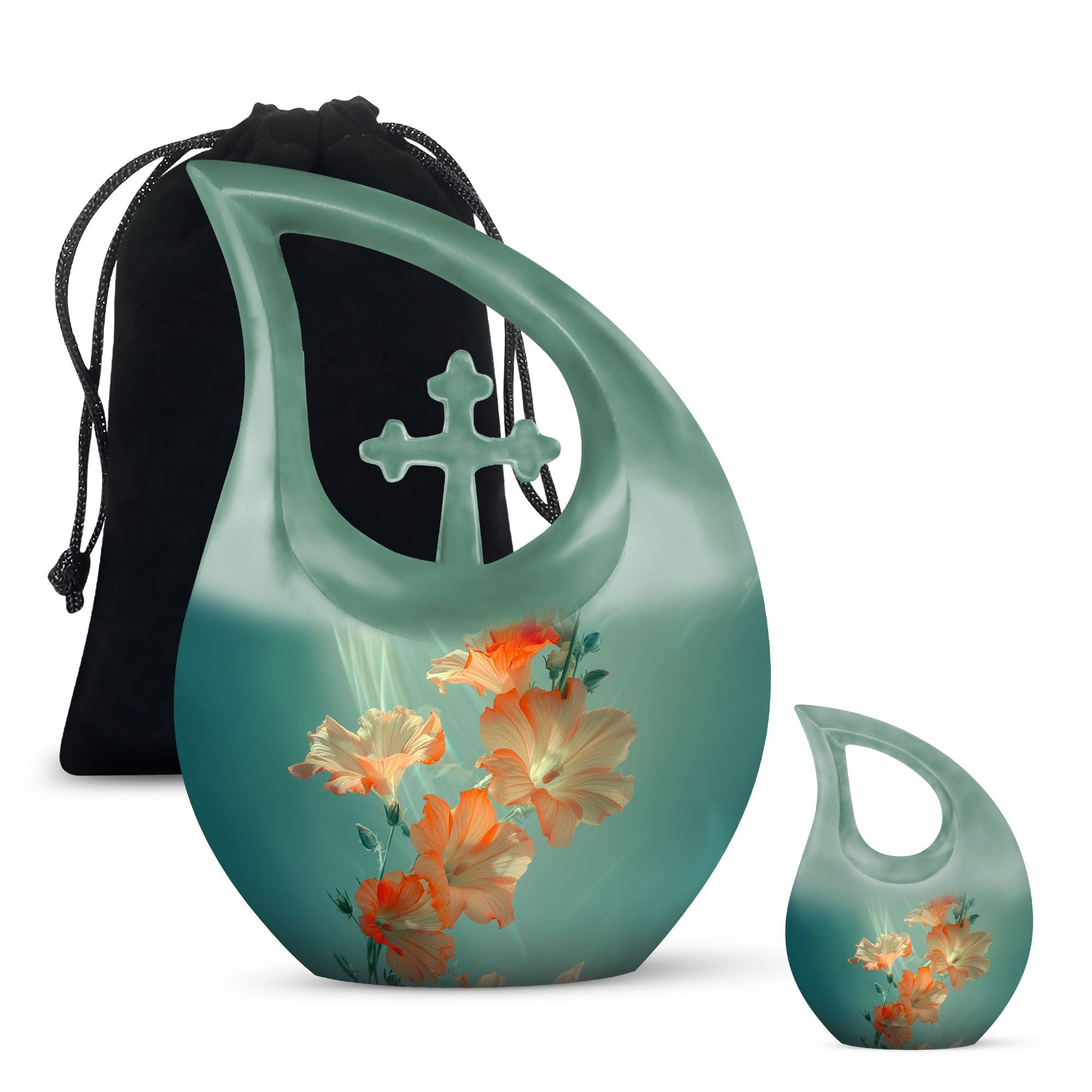 Honor a loved one and express your unending affection with our 10-inch Flower Urn from the All Faith Funeral Urn collection. Expertly crafted from durable aluminium, this memorial urn showcases a distinctive 'Cross Drop' theme, seamlessly incorporating elements of faith and reflection into its design. Weighing 3.3 pounds with dimensions of 10 inches in height, it elegantly serves as a lasting tribute with a capacity of 200 cubic inches. Easily safeguard precious remains with the inclusion of a velvet pouch for containment of ashes. For an even more heartfelt tribute, personalize this Large Urn by engraving the name of your loved one. Our urns are not just paraphernalia but convey the enduring love and respect we hold for those who are no more in a unique yet meaningful way. Ideal for adults and seniors searching for 'Flower Urn' or 'memorial urns' or alternatives such as 'Small Urn', 'Miniature Urns', 'Custom Cremation Urns', or 'Funeral Urns For Adults', this urn offers a touching gesture of remembrance.