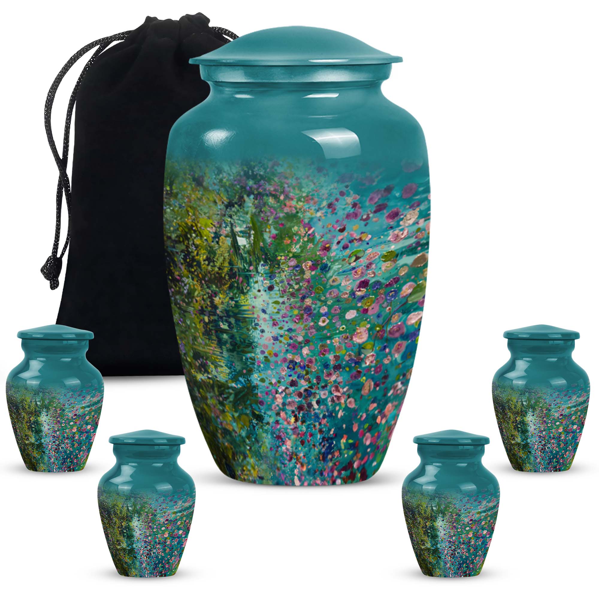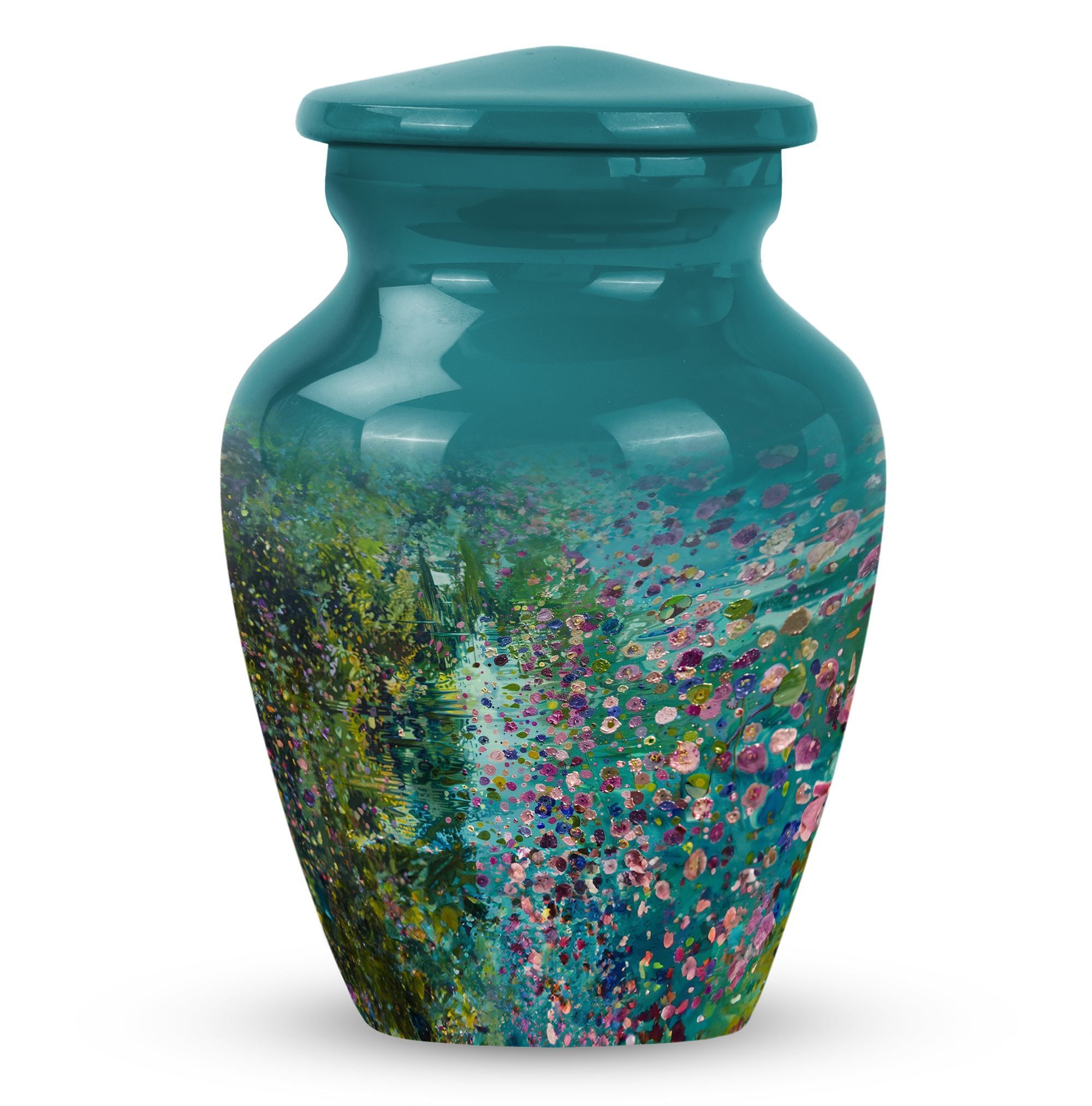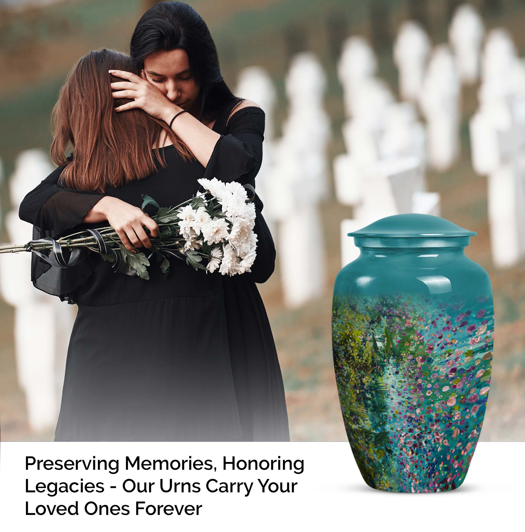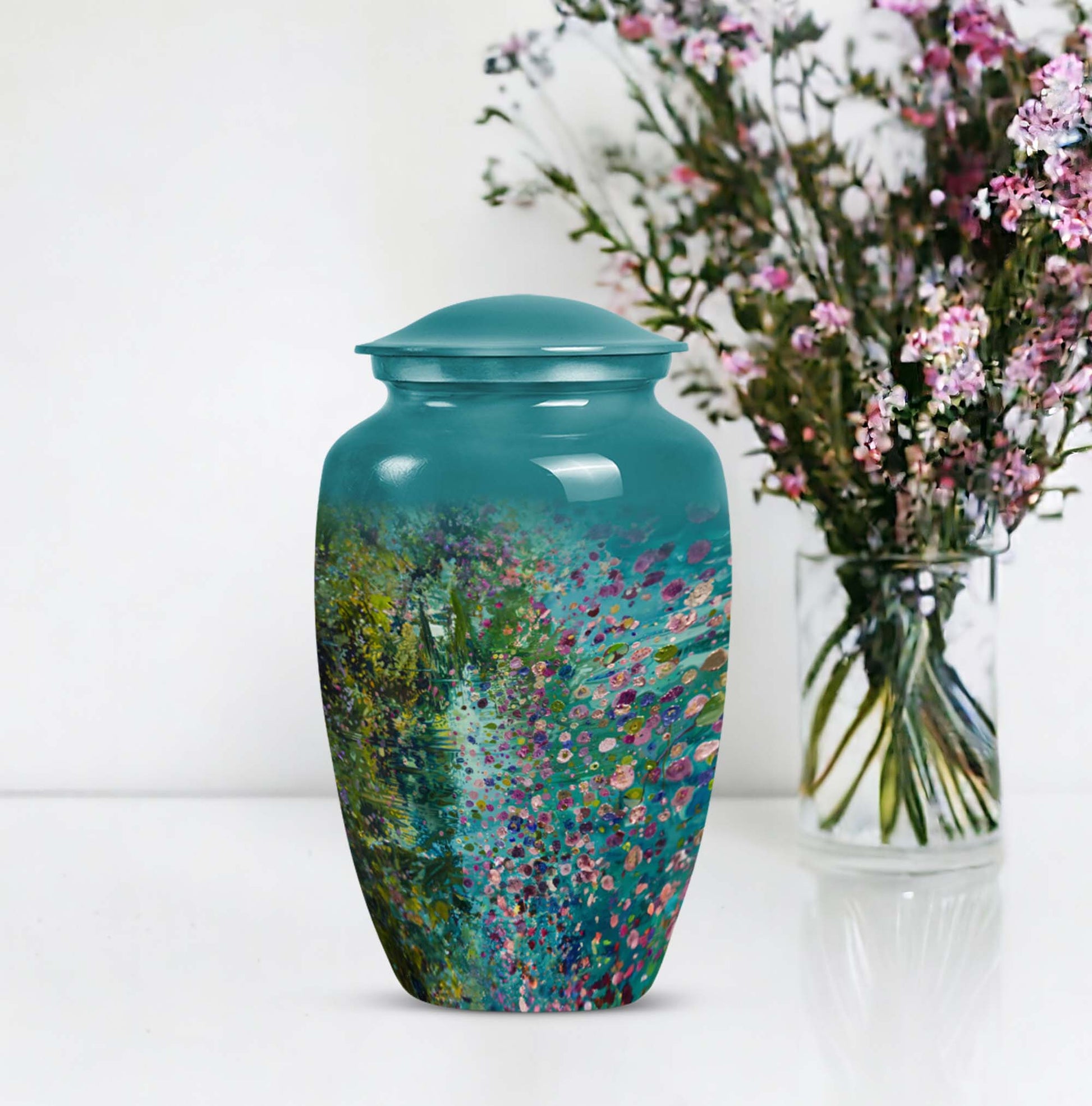Flaunting an exemplary combination of spirituality, strength, and style, the FLOWERS Urn delicately crafts an aura of solemn beauty and remembrance, making it a top choice for funeral adult urns for human ashes. Handcrafted with premium-grade Aluminium, this Large Urn stands at a notable height of 10 inches and weighs 3.3 pounds, providing a sturdy and calming presence. Its capacity of 200 cubic inches ensures a fitting and respectful containment of your cherished one's ashes. This cremation urn brings a gentle charm with its floral theme, each bloom thoughtfully symbolising the cyclicality of life. Included is a plush velvet pouch for the compassionate containment of ashes, a discreet and touching tribute. For a more personal feel, seize the opportunity to engrave names on this classic urn design, further cementing your precious memories. Whether you're searching for 'memorial forever urns,' 'urn human women,' or 'urns for mom', FLOWERS Urn offers a unique amalgamation of elegance, durability, and sentiment.