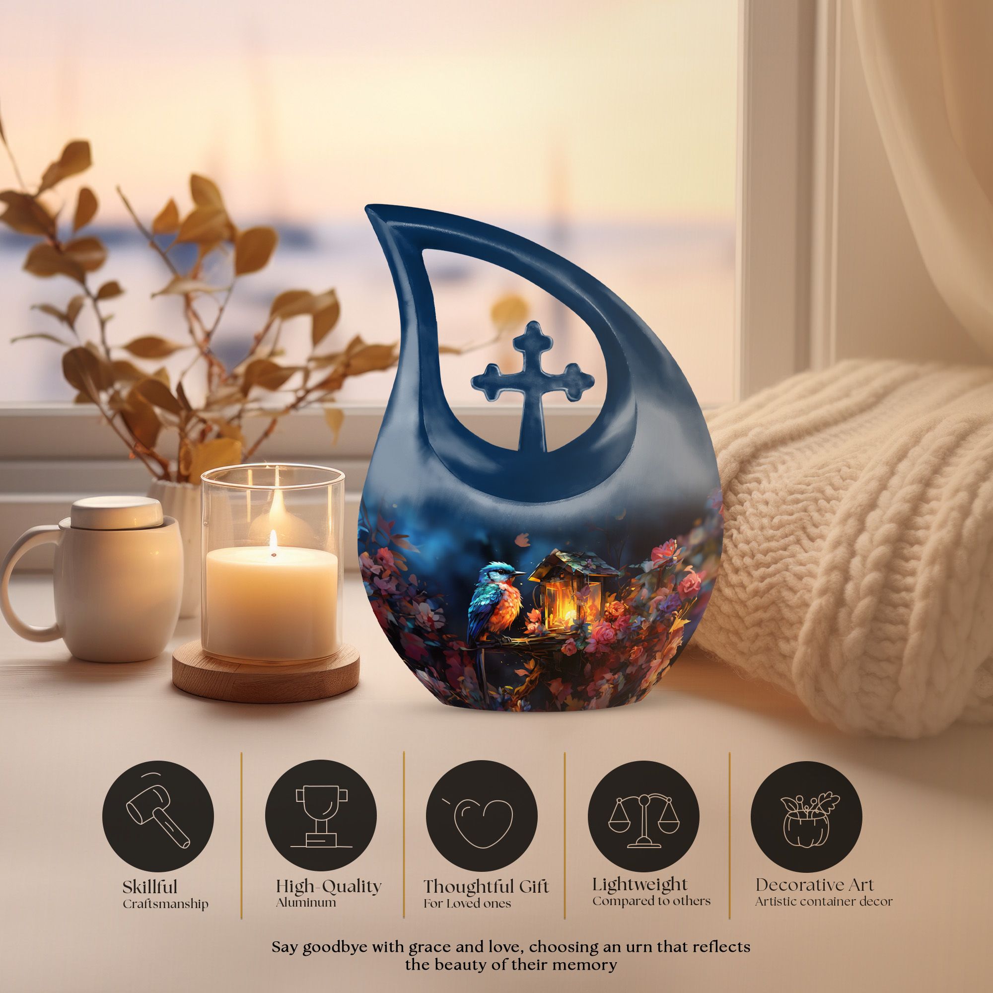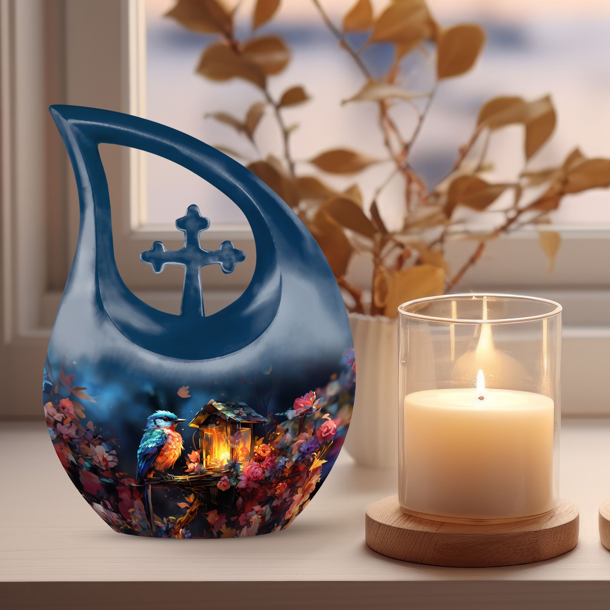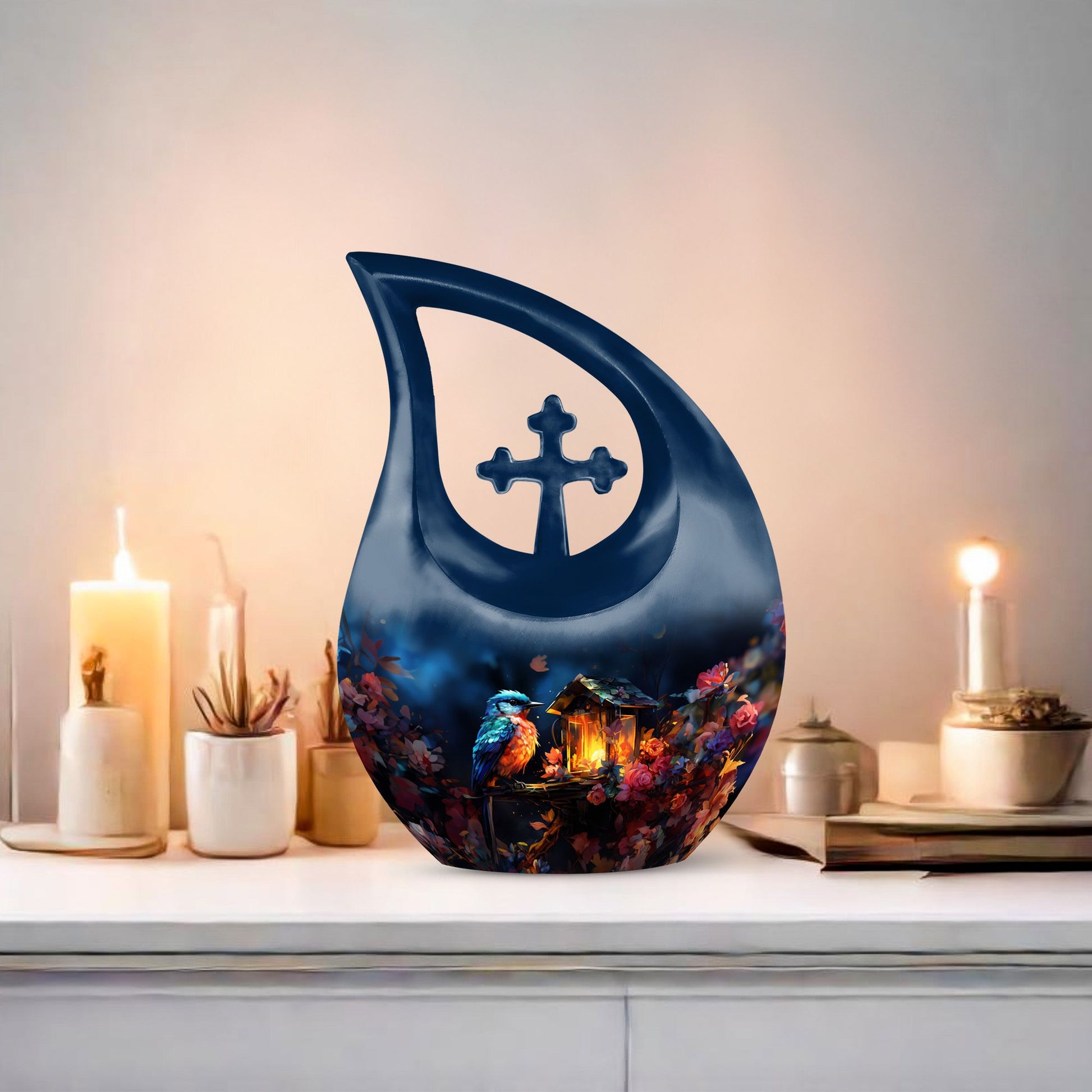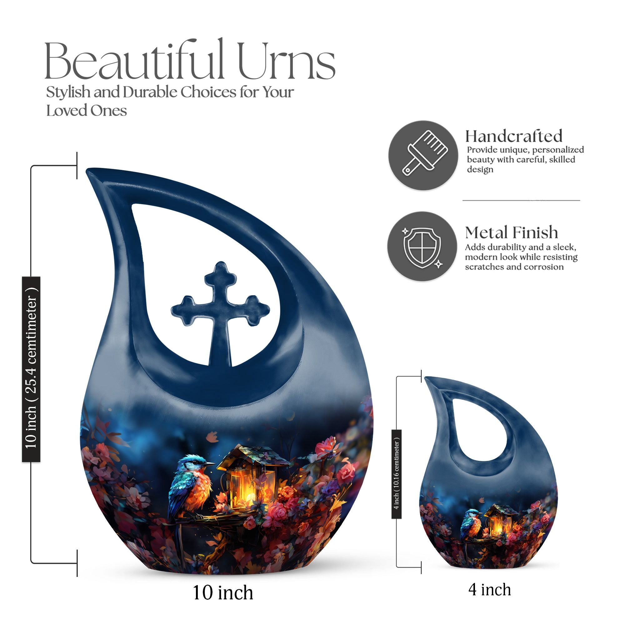 Crafted from durable aluminium, this 10 inch urn blends artistry with strength. The soft floral artwork and protective nest theme symbolize love, care, and eternal belonging. Perfect for those looking for large cremation urns, large urn for ashes adult male, or elegant large urns for human ashes adult female designs, it includes a secure screw-top lid to keep ashes safe. Its smooth finish and natural-themed illustration make it suitable for home memorials or burial settings. Families searching for urns for ashes large or urns for ashes adult male large will find this style to be both versatile and heartfelt.